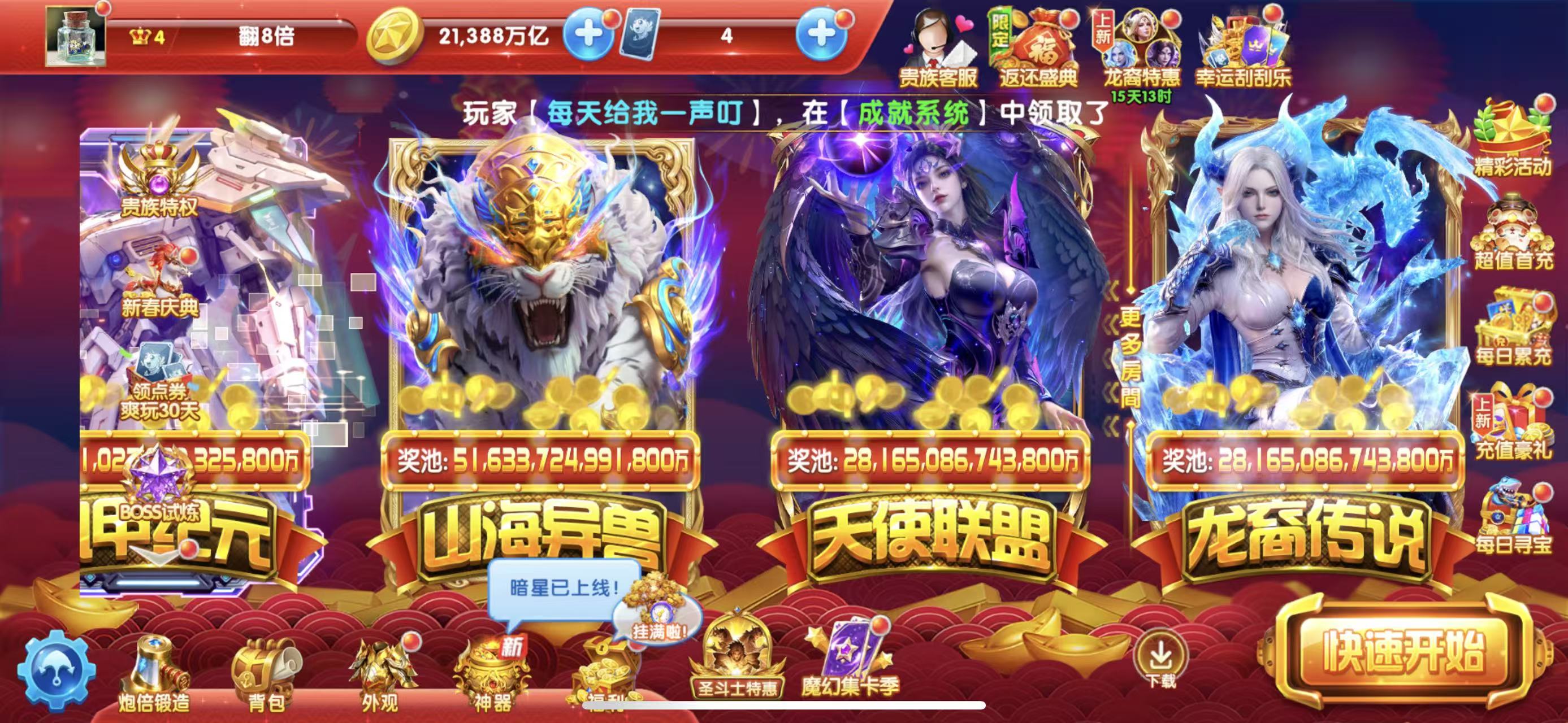 捕鱼大作战出租 21388万亿5000亿炮巅峰7,账号密码登陆只出分打完为止。