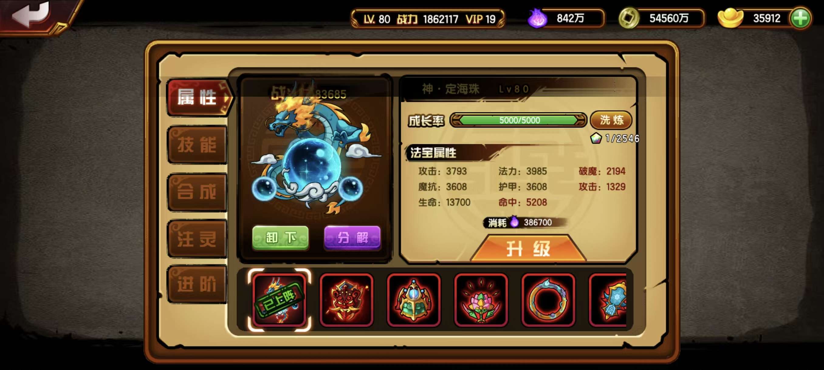 准200w神龙 五红氪金经文满级幽冥双氪阵法 珠子和盾都有双氪法宝玩的爽翅膀红毛毕业仓库有36片龙马