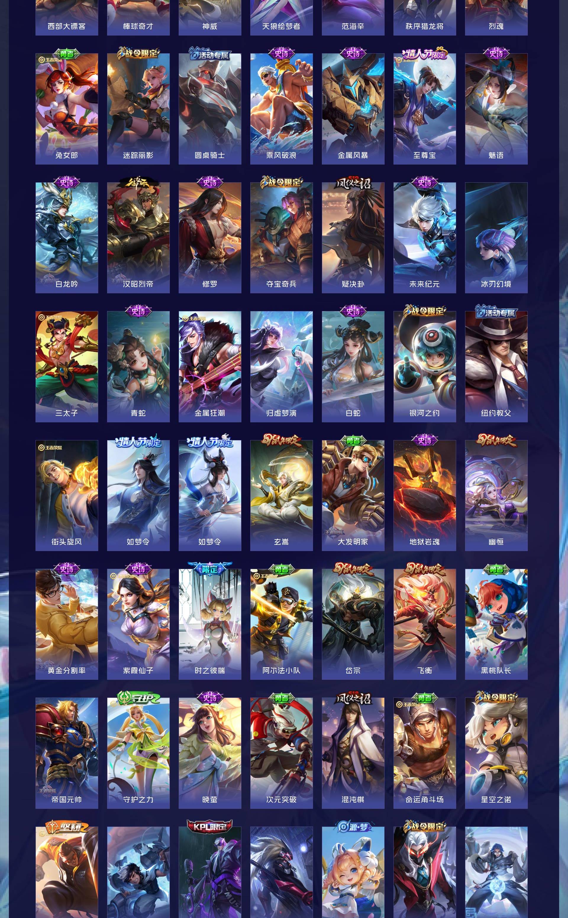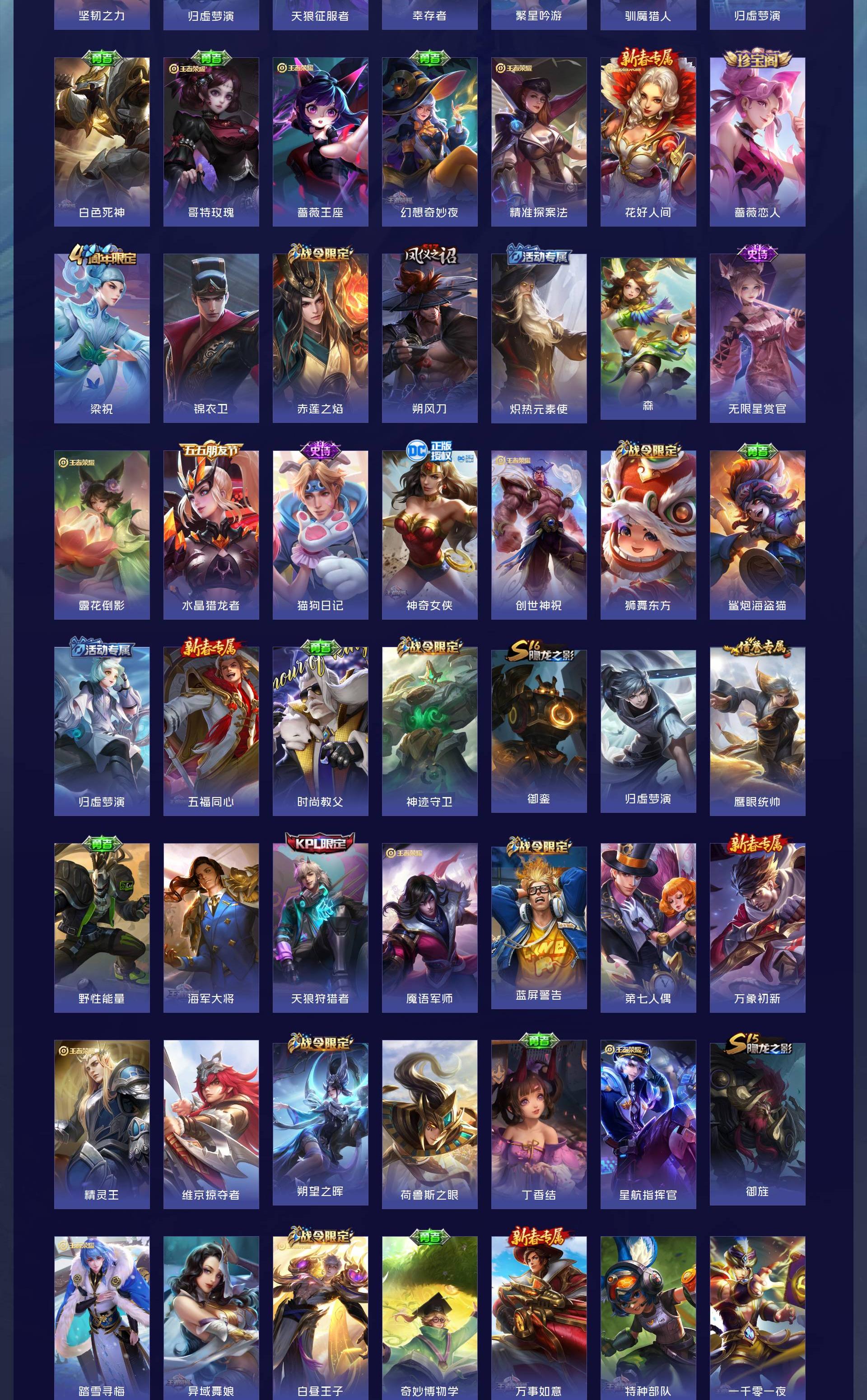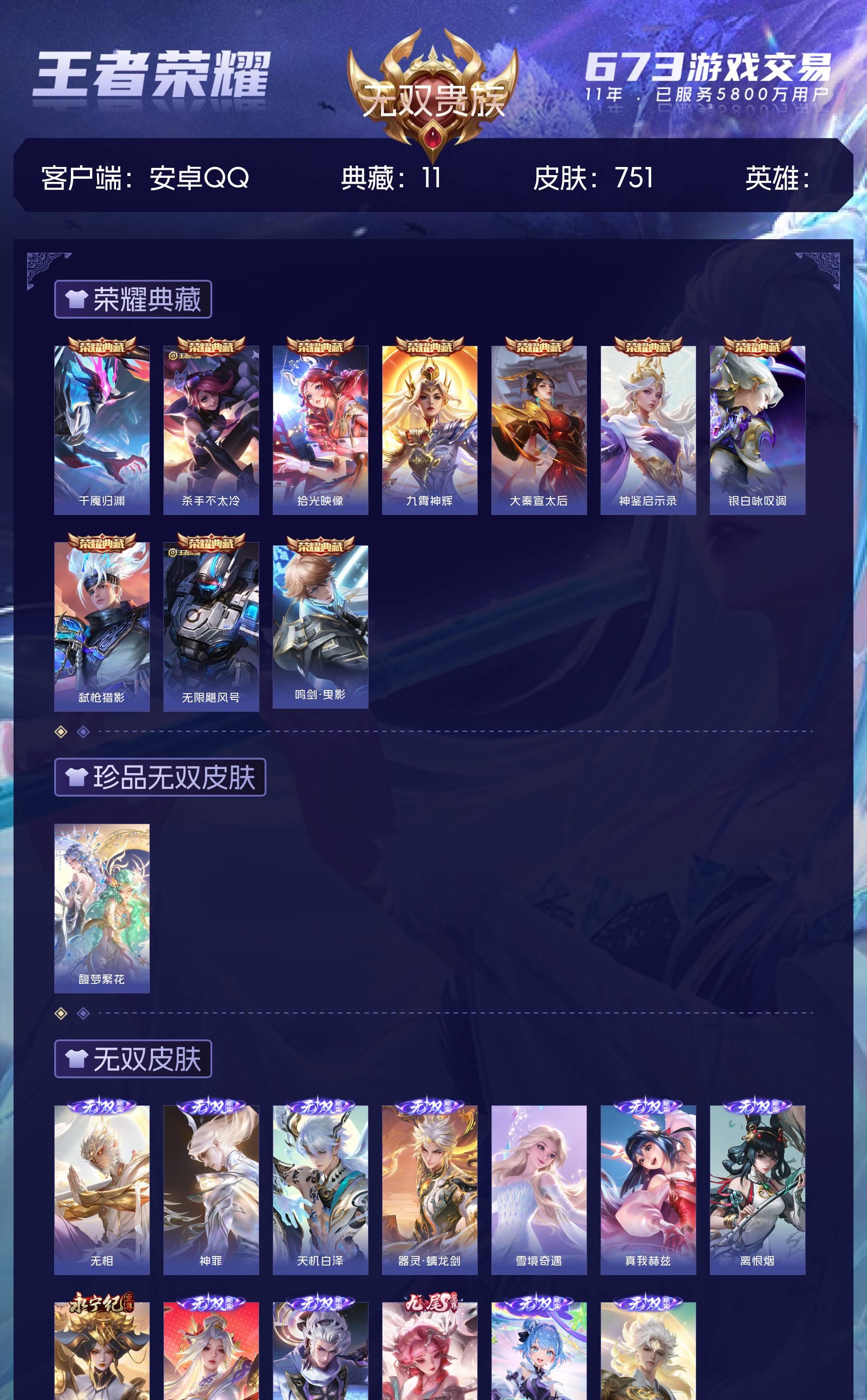 无双贵族 皮肤751 荣耀王者 荣耀典藏11 珍品无双1 无双皮肤13 珍品传说9 传说131 其他皮肤575
