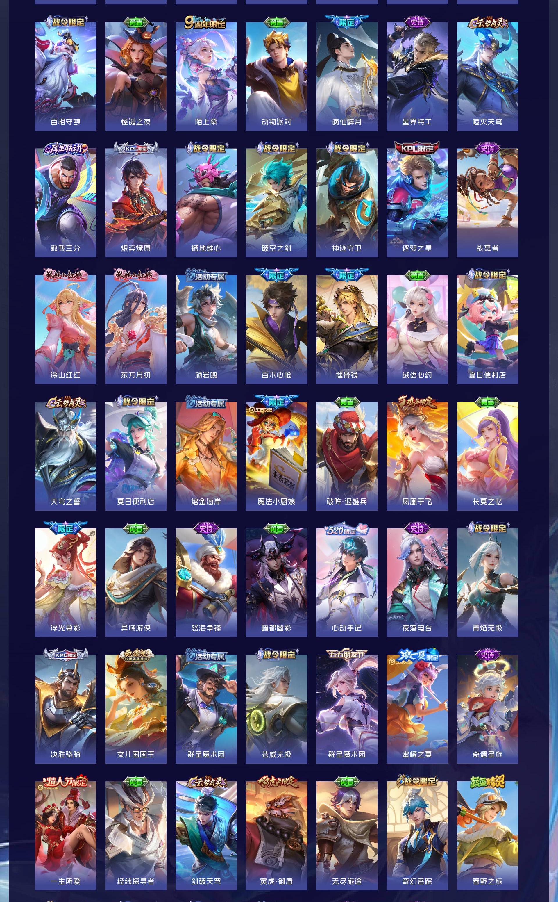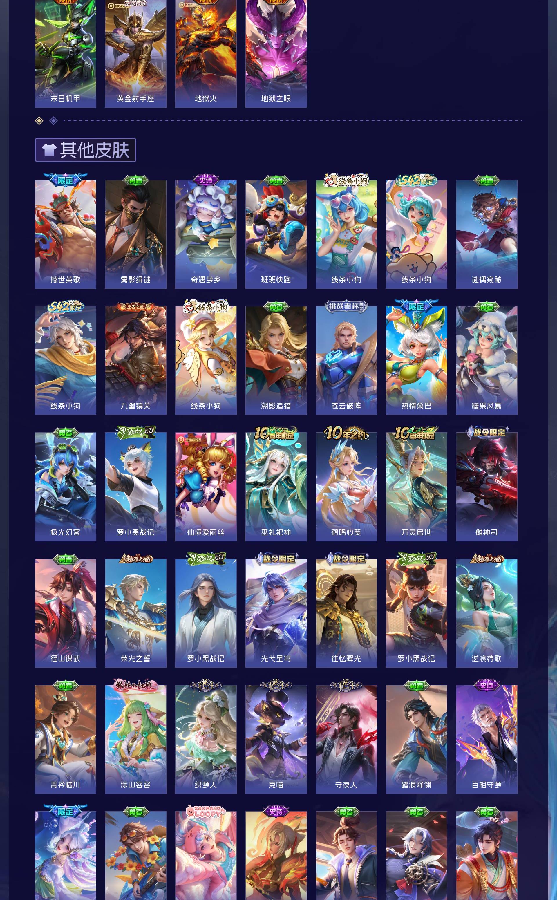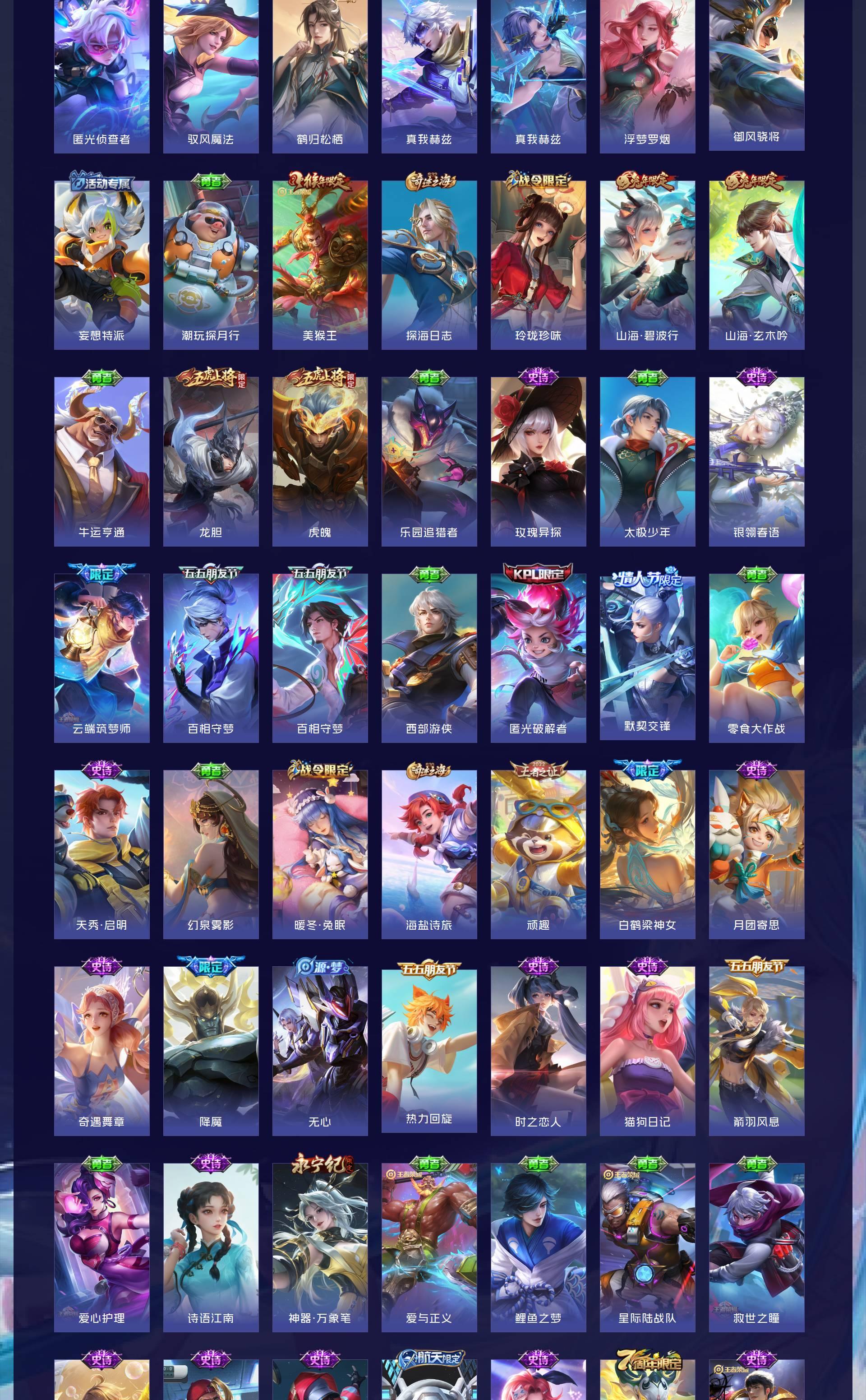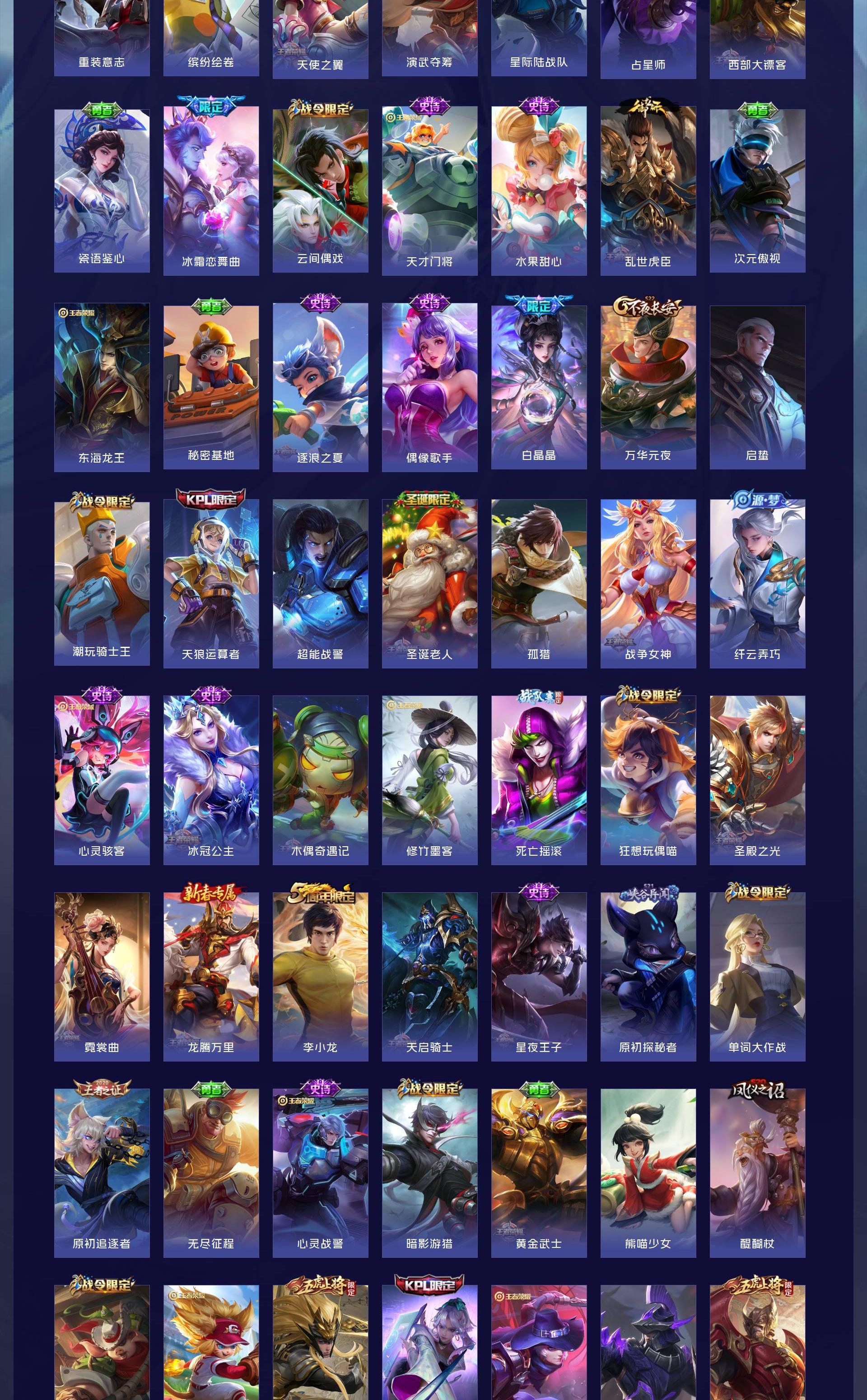 无双贵族 皮肤751 荣耀王者 荣耀典藏11 珍品无双1 无双皮肤13 珍品传说9 传说131 其他皮肤575