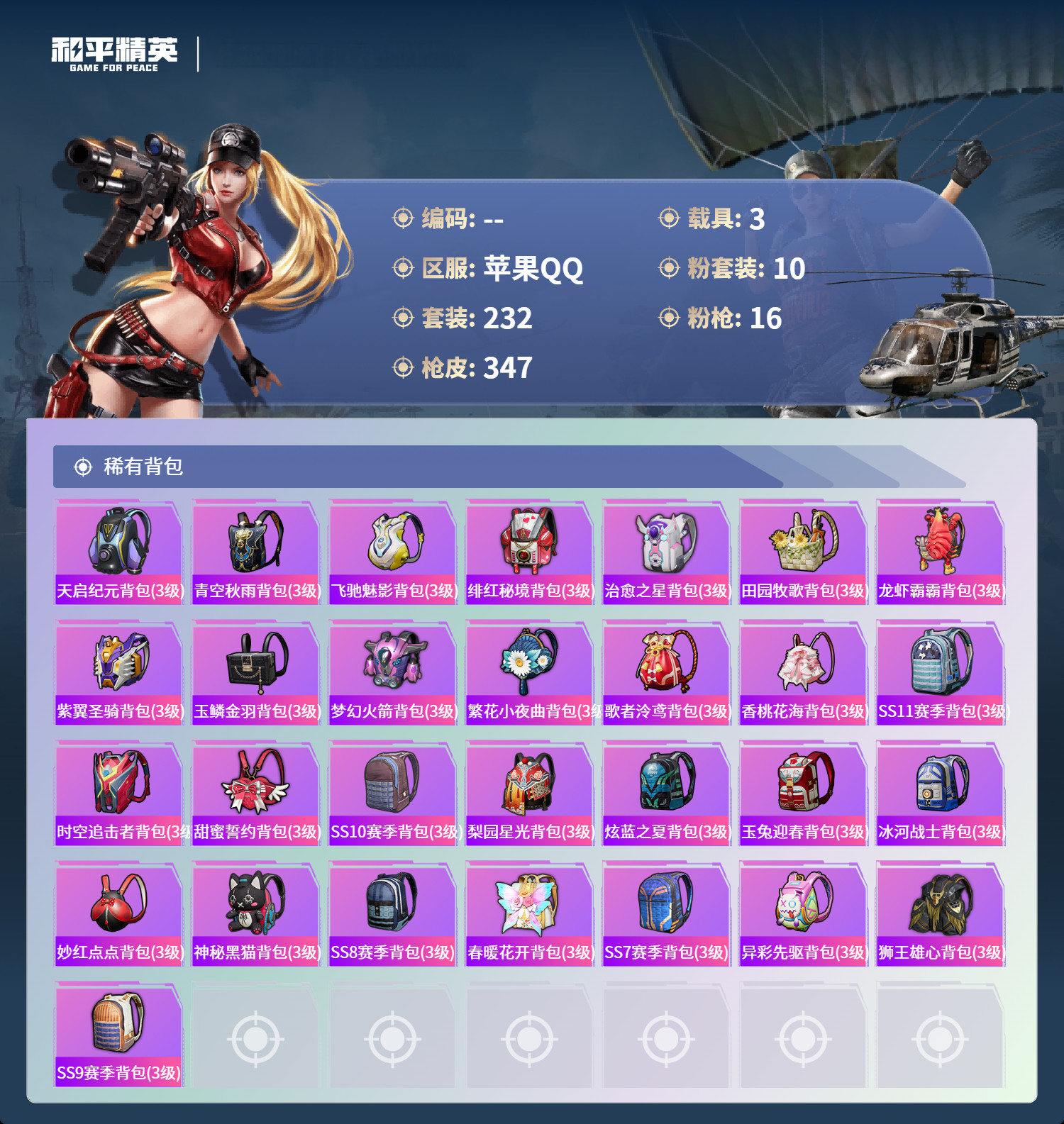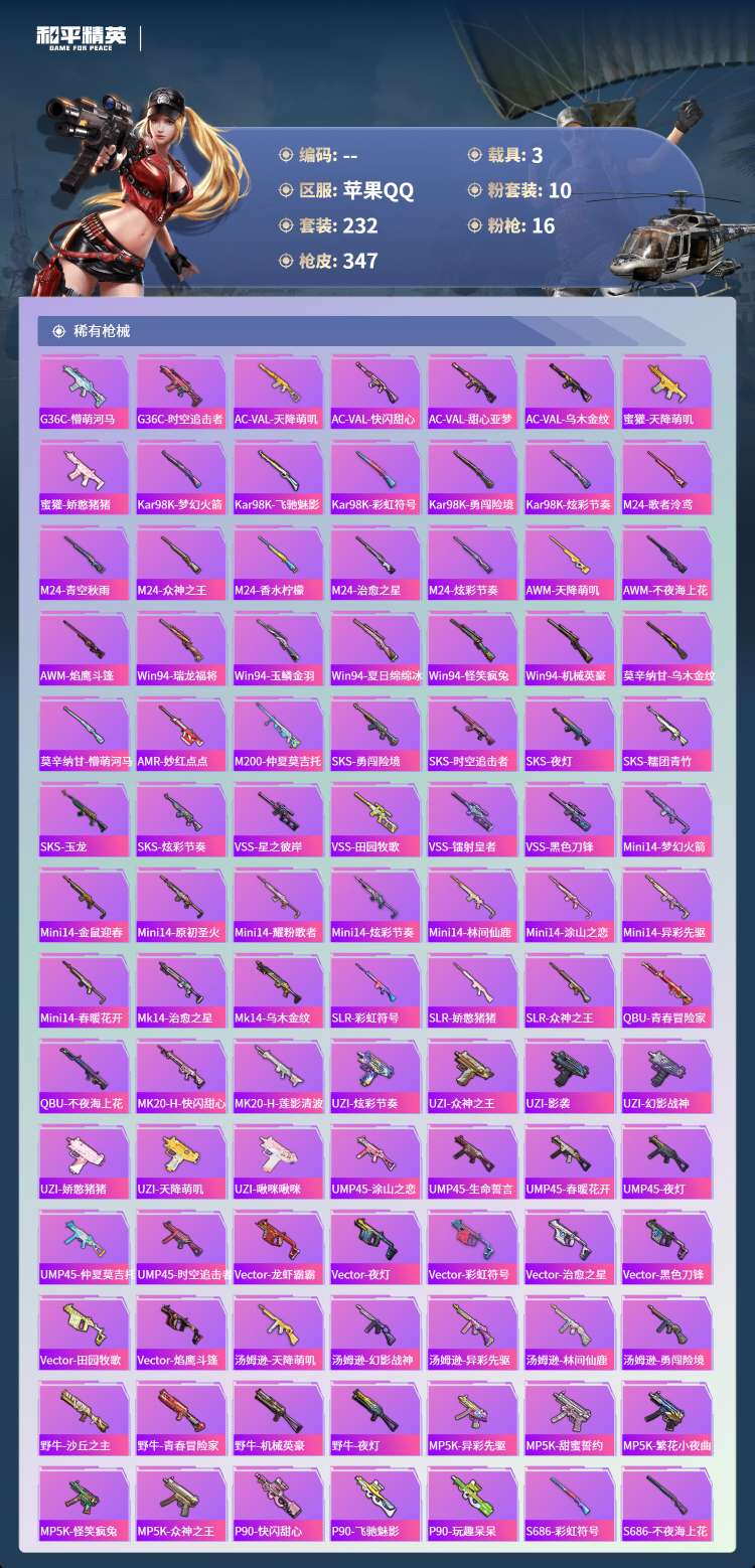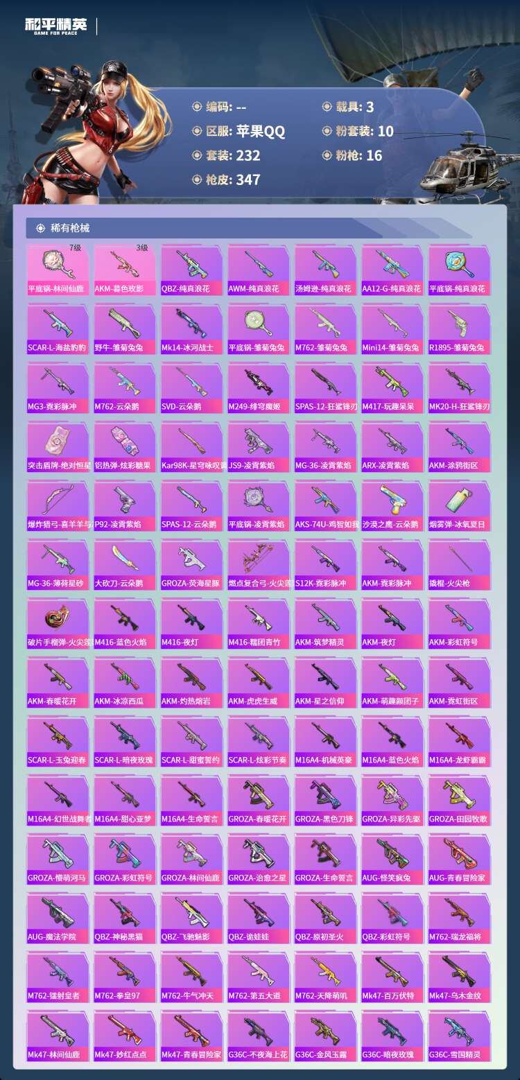 hs62163苹果手Q-32王牌印记-有战神框-1红装-10粉装-16特效枪-3载具-122672热