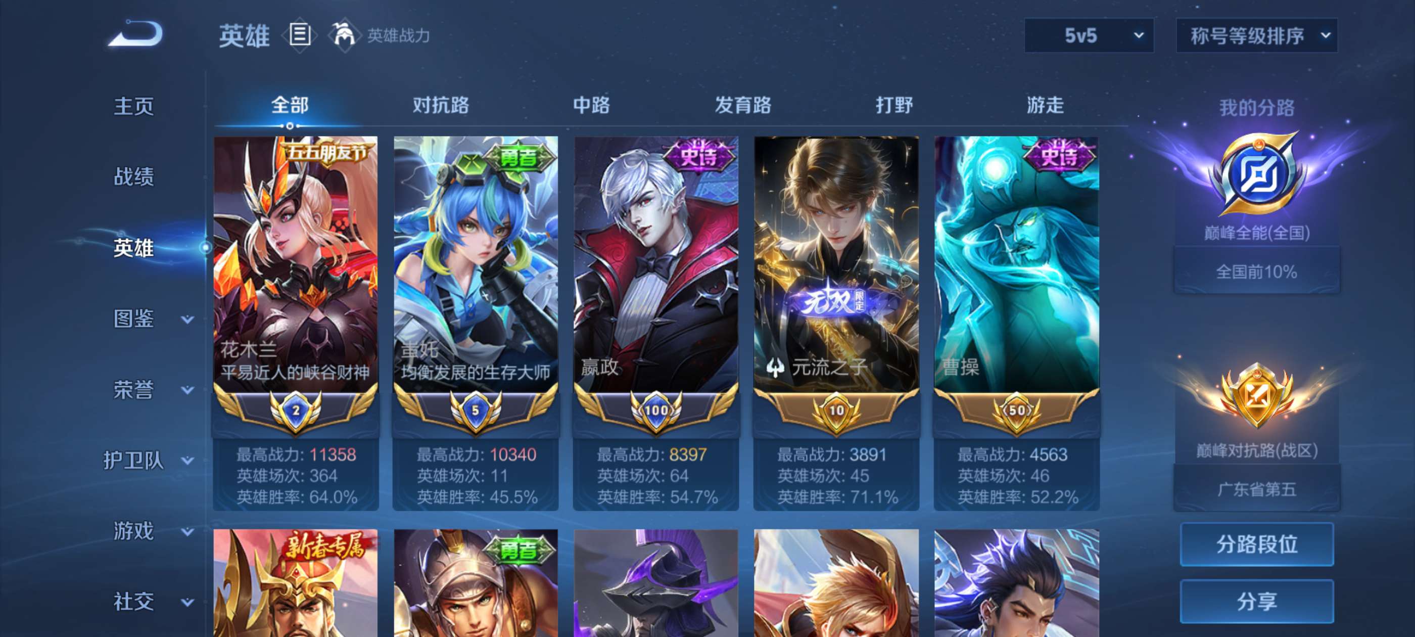 国2木兰,国5叱咤,小国嬴政,省标一堆