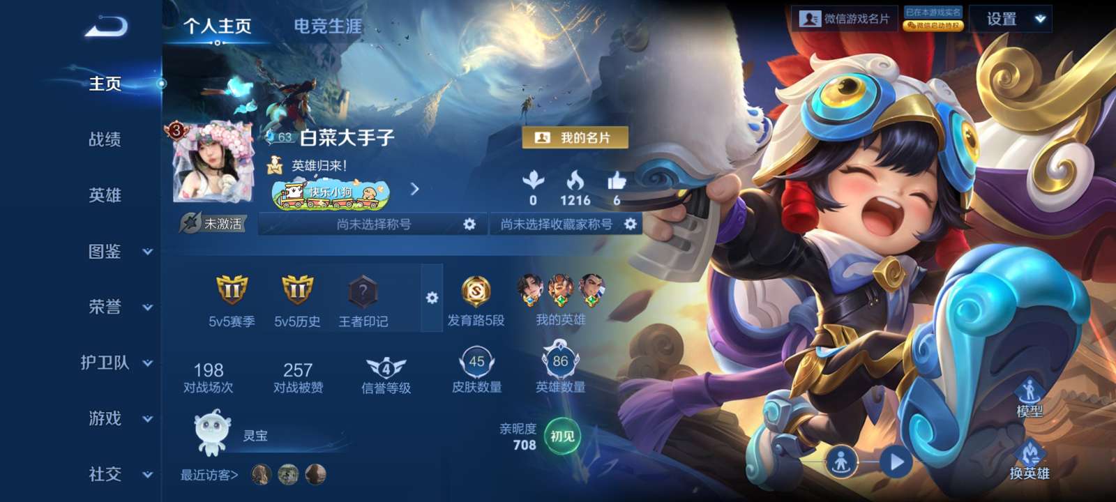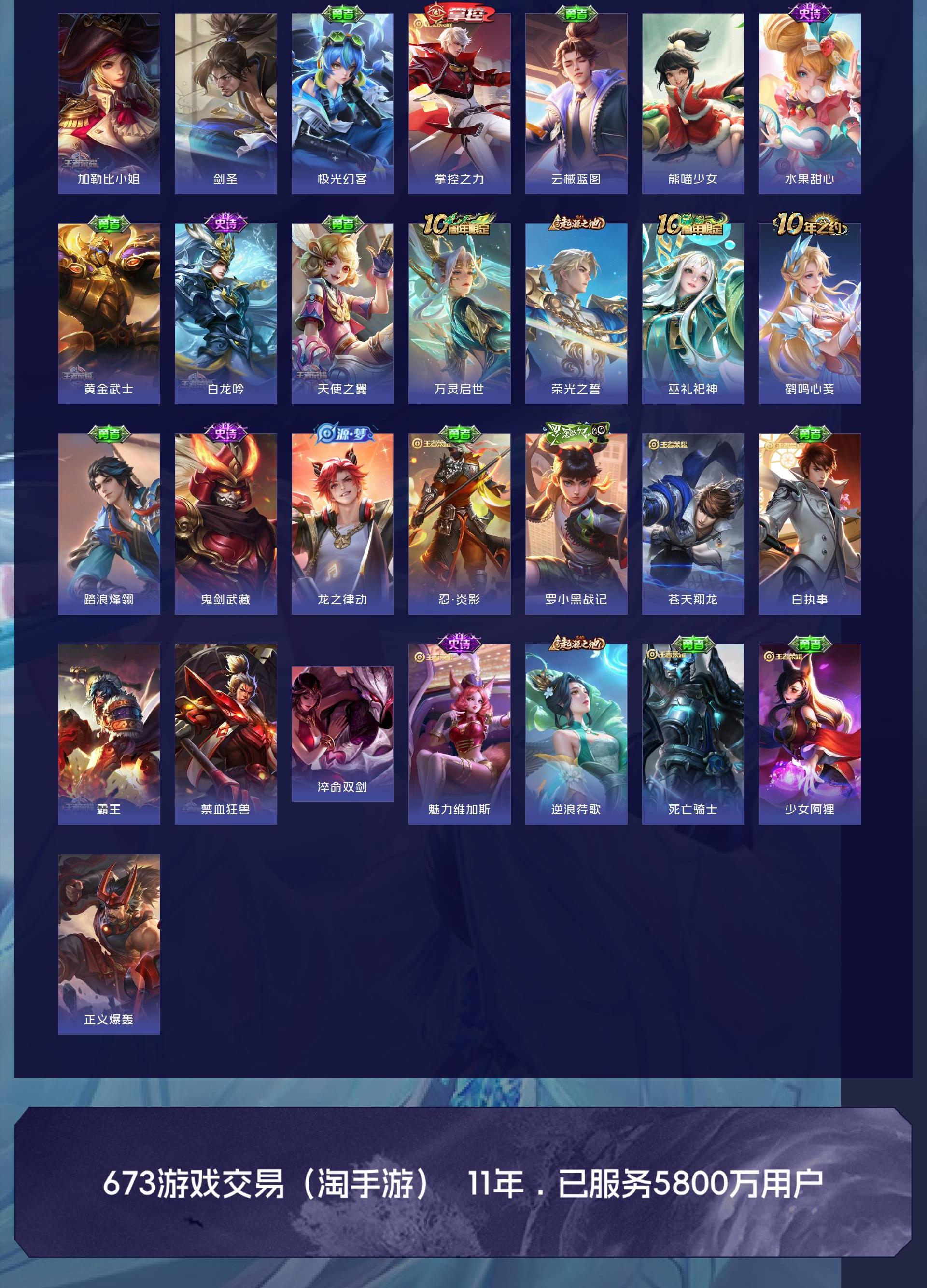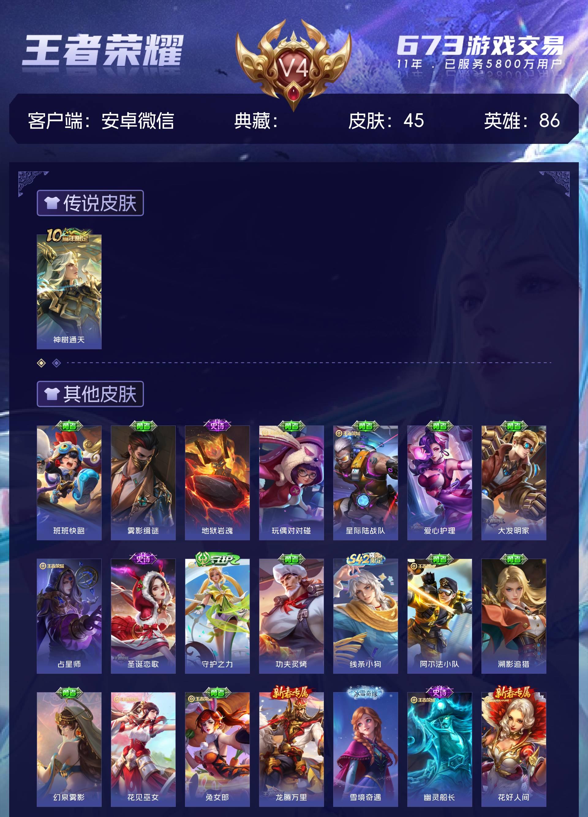 V4 皮肤45 英雄86 至尊星耀 传说1 其他皮肤50