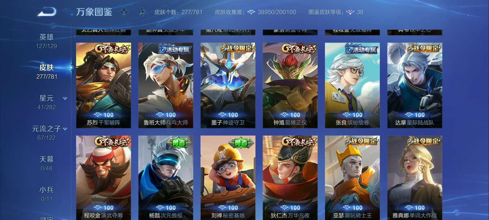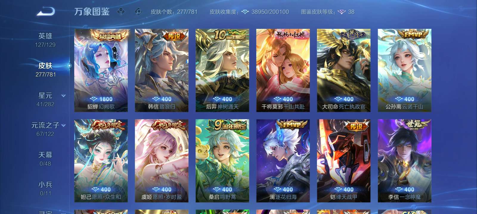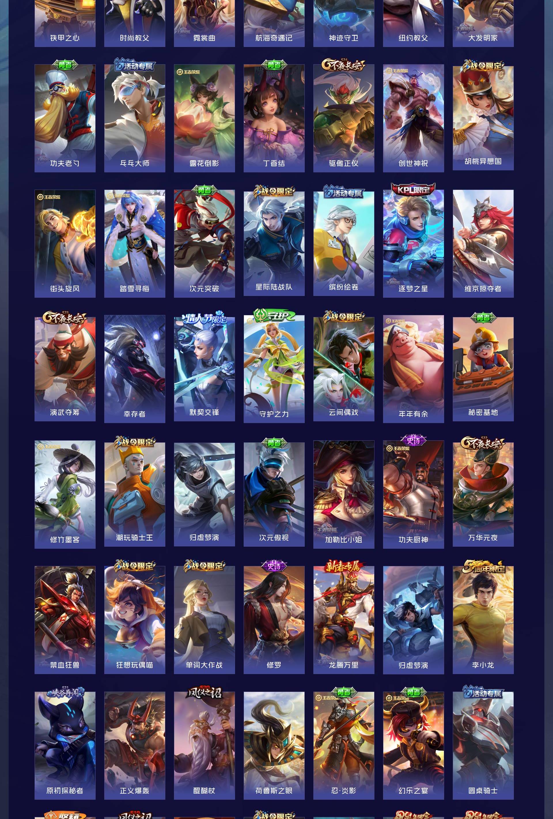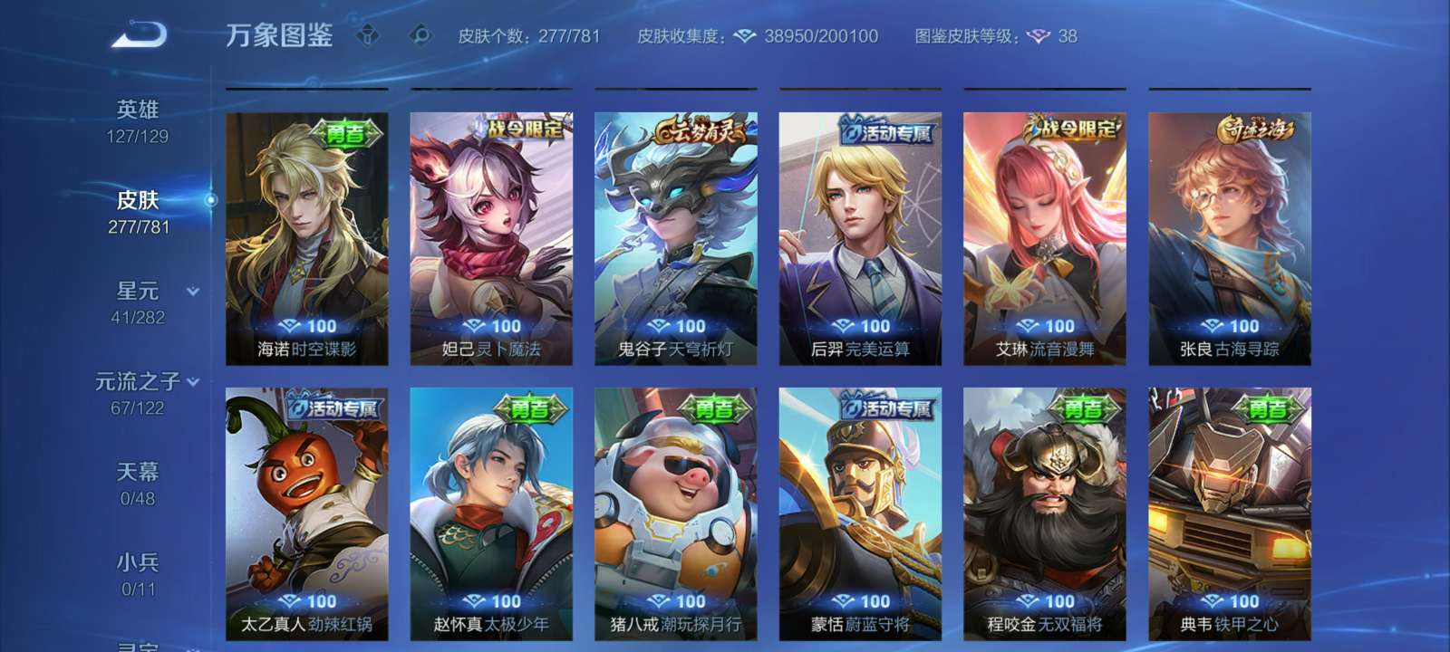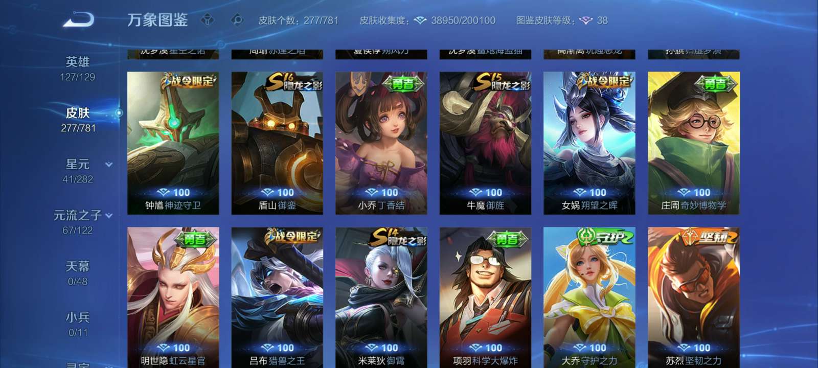 V7 皮肤277 英雄127 至尊星耀 荣耀典藏1 星传说2 传说15 其他皮肤265