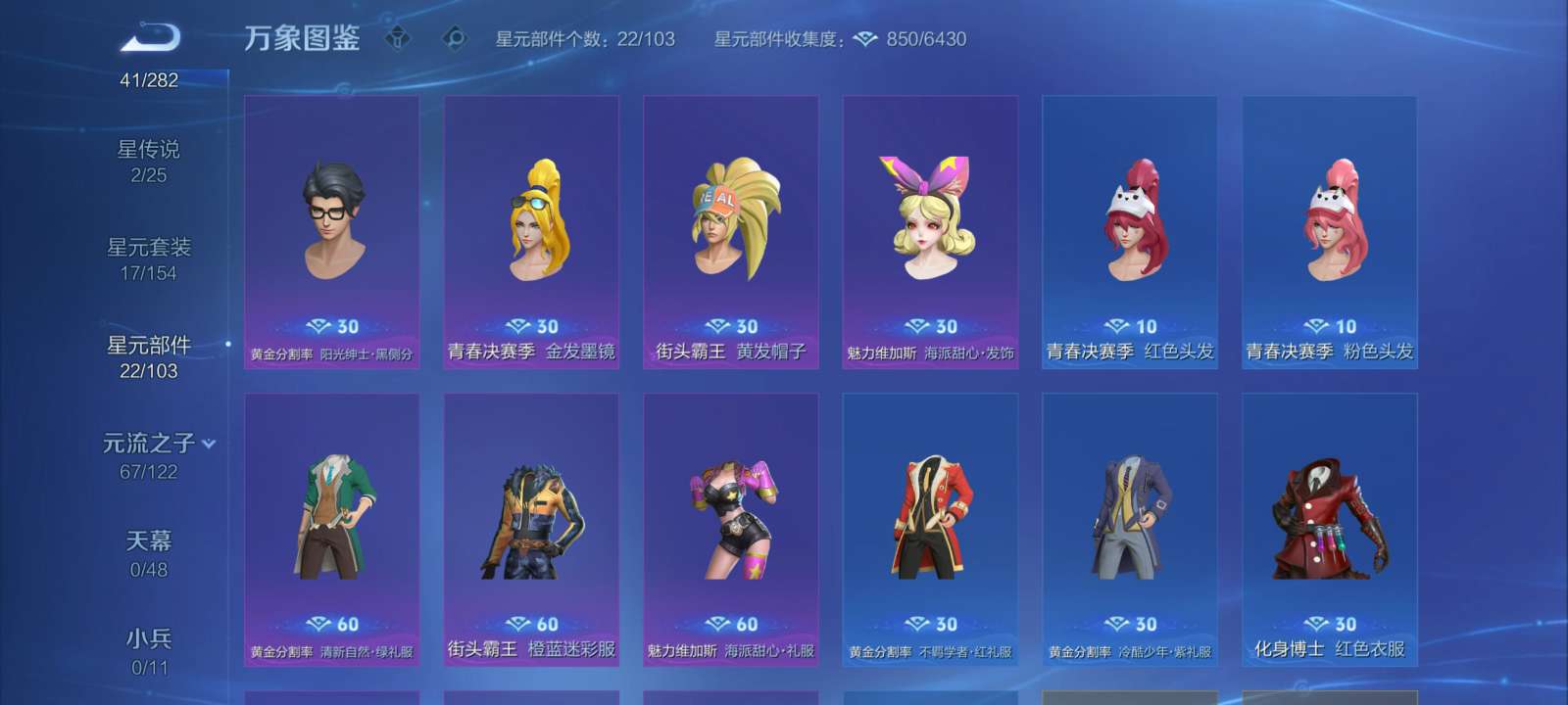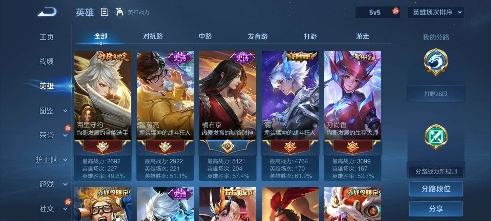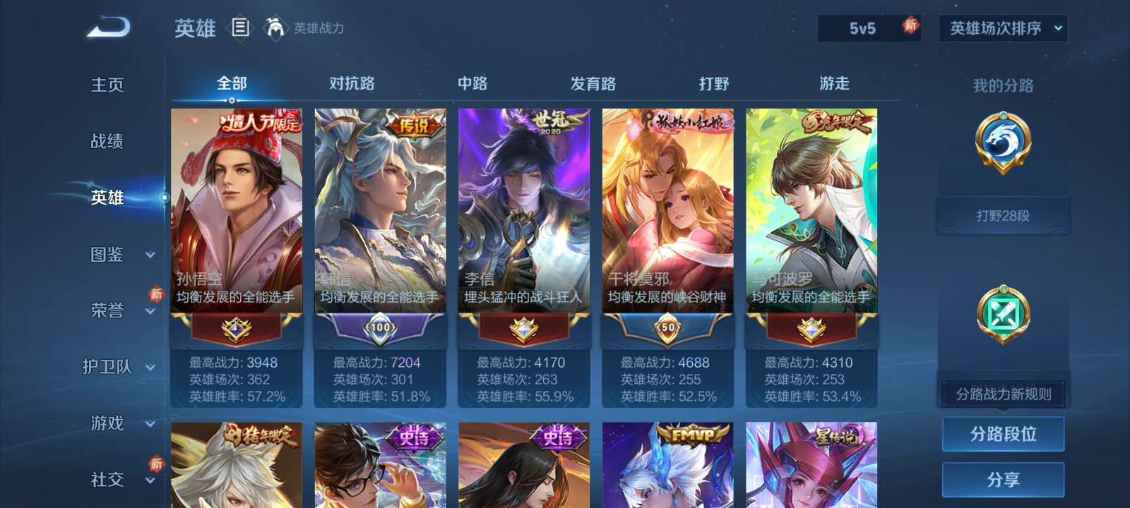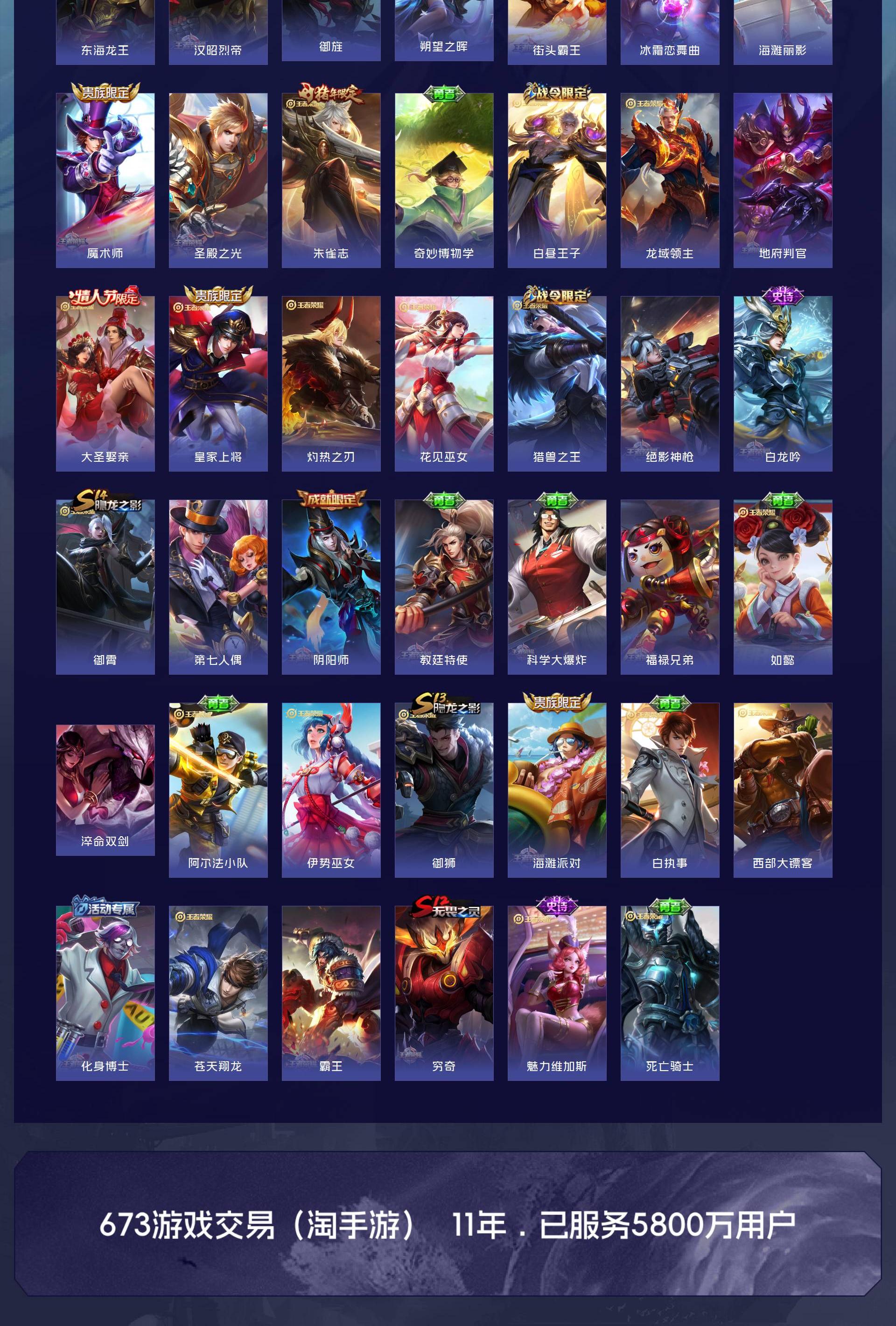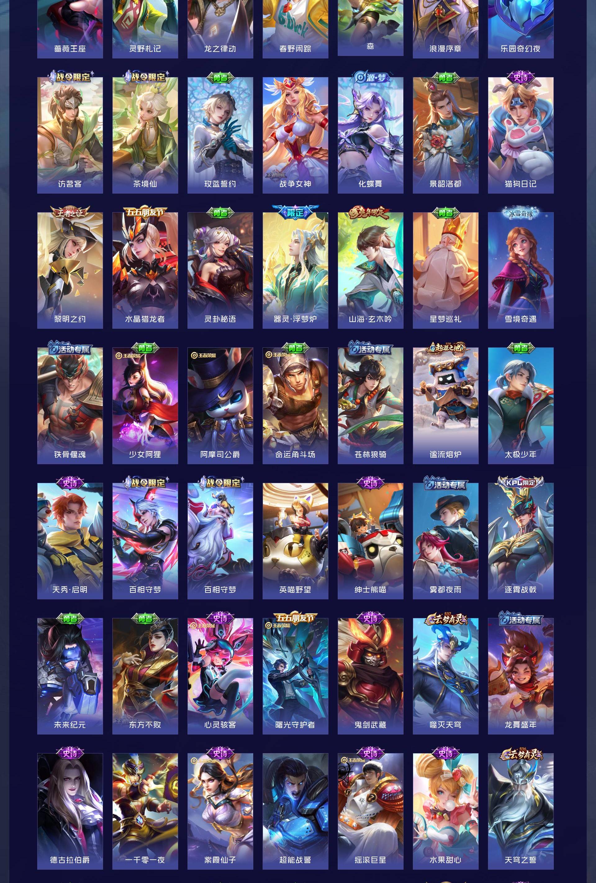 V7 皮肤277 英雄127 至尊星耀 荣耀典藏1 星传说2 传说15 其他皮肤265
