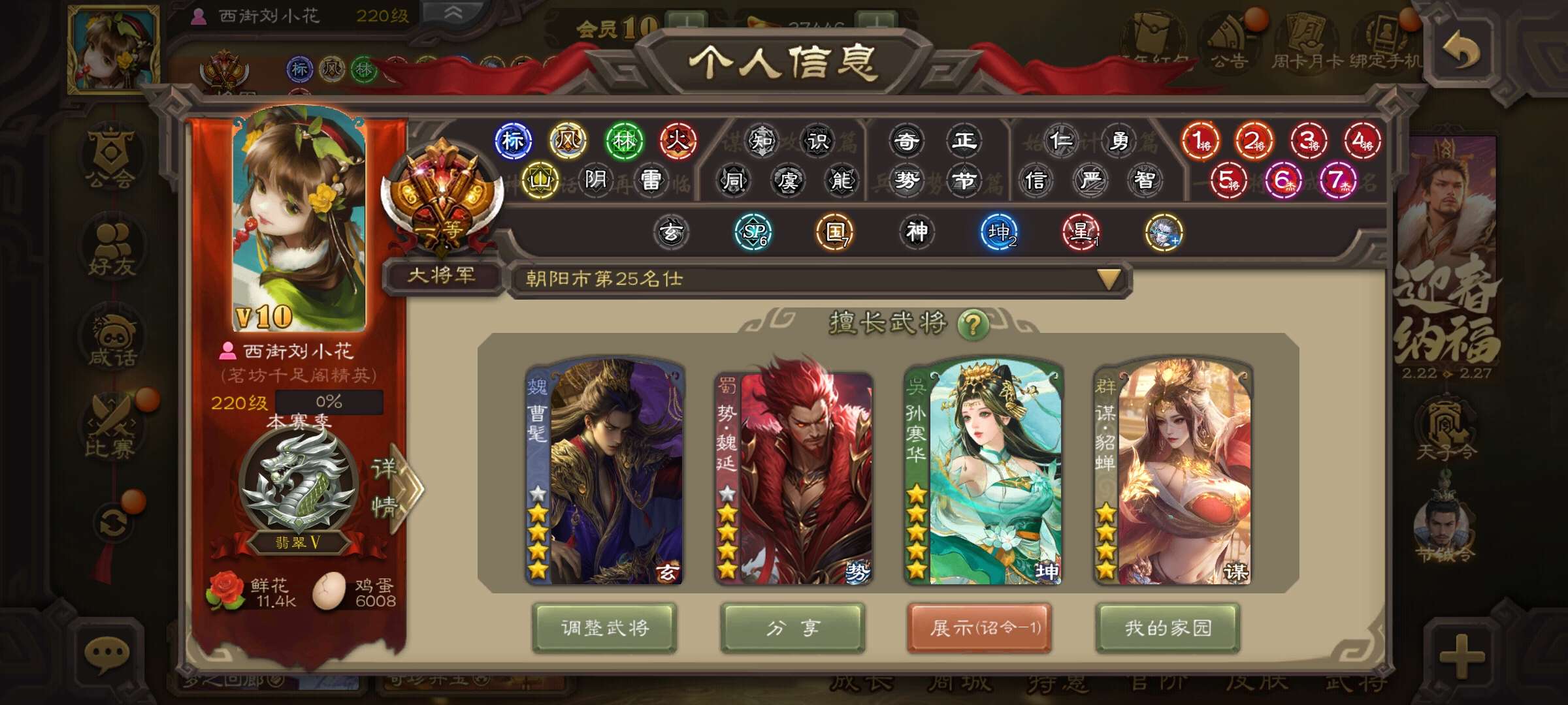 v10一等大将军,还有105宝珠,三卡充足,有年卡