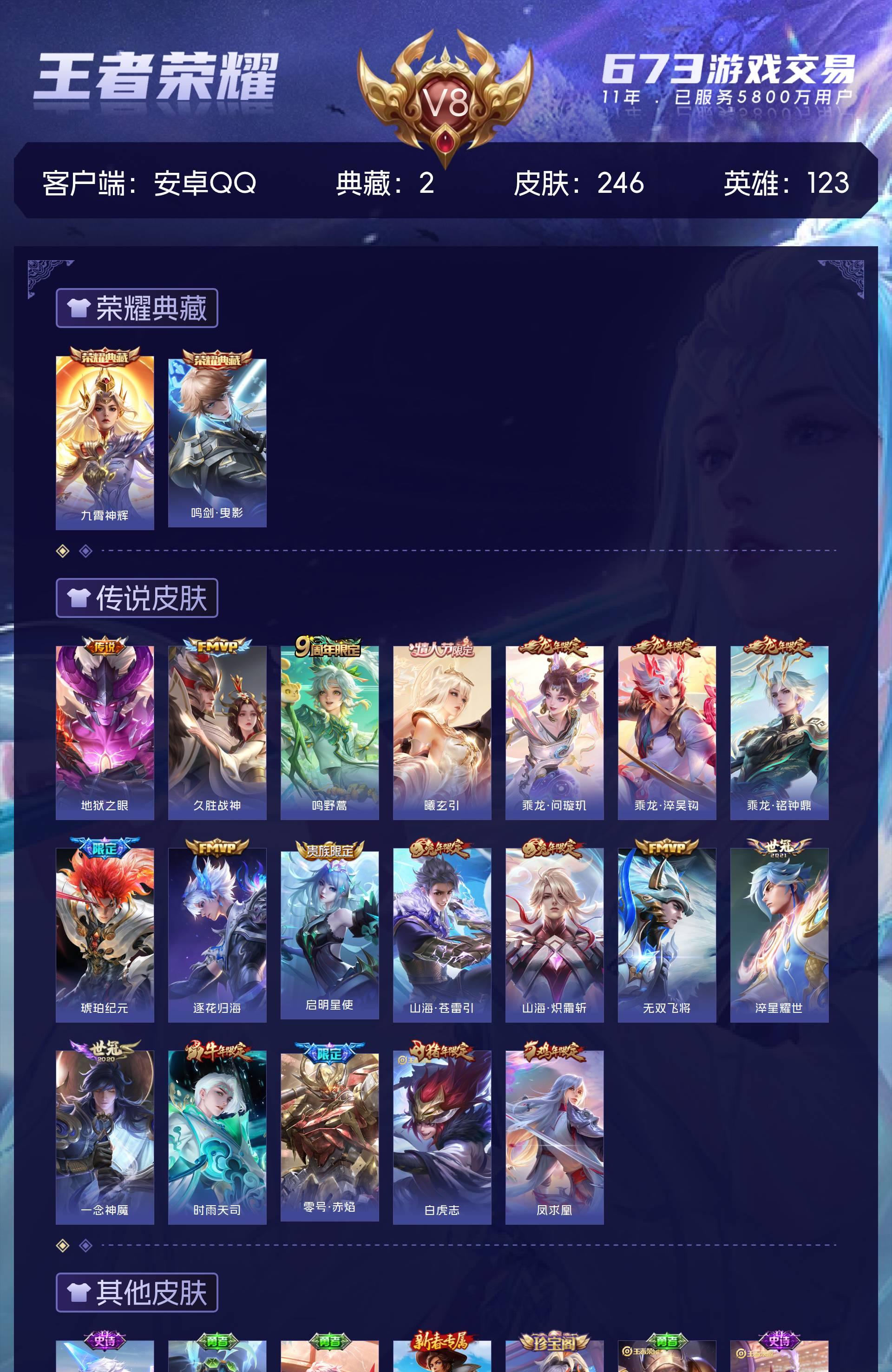 V8 皮肤246 英雄123 非凡王者 荣耀典藏2 传说19 其他皮肤230