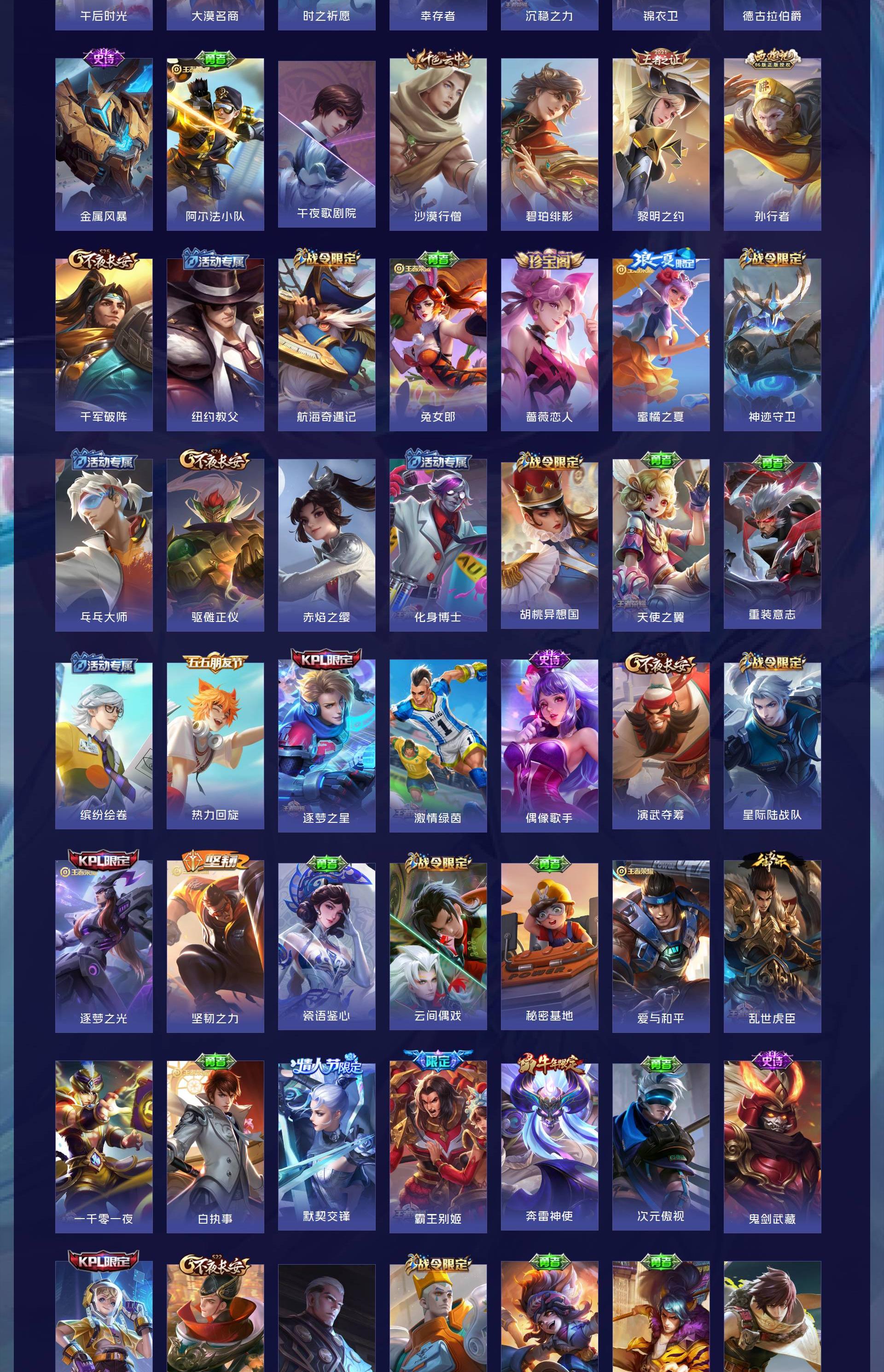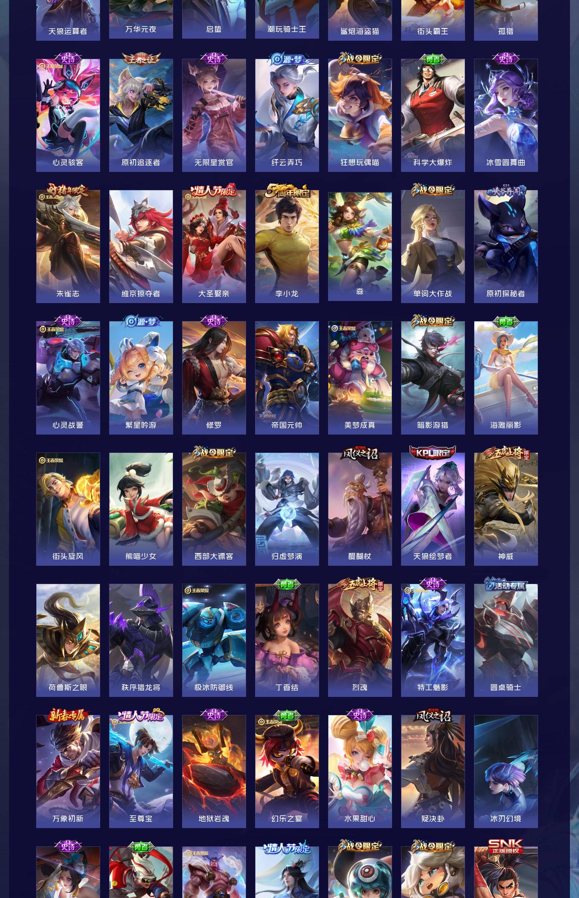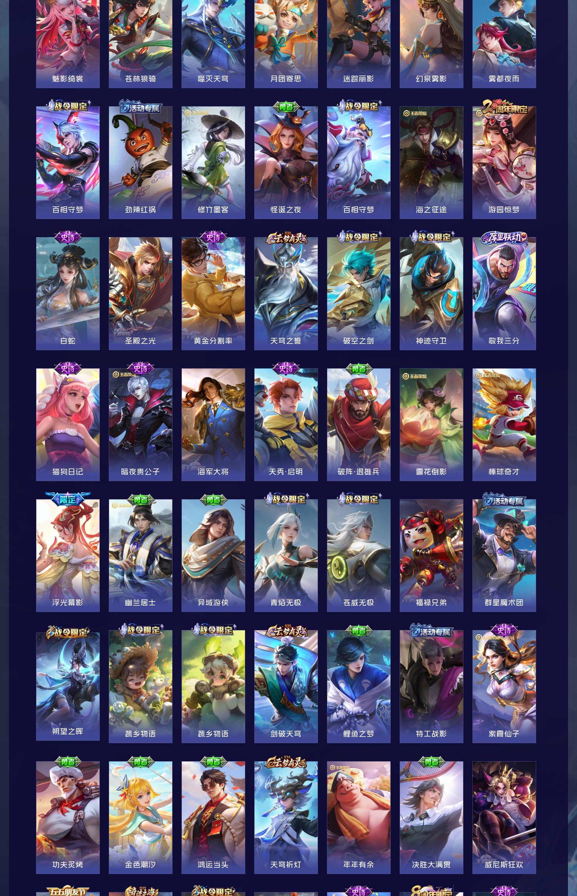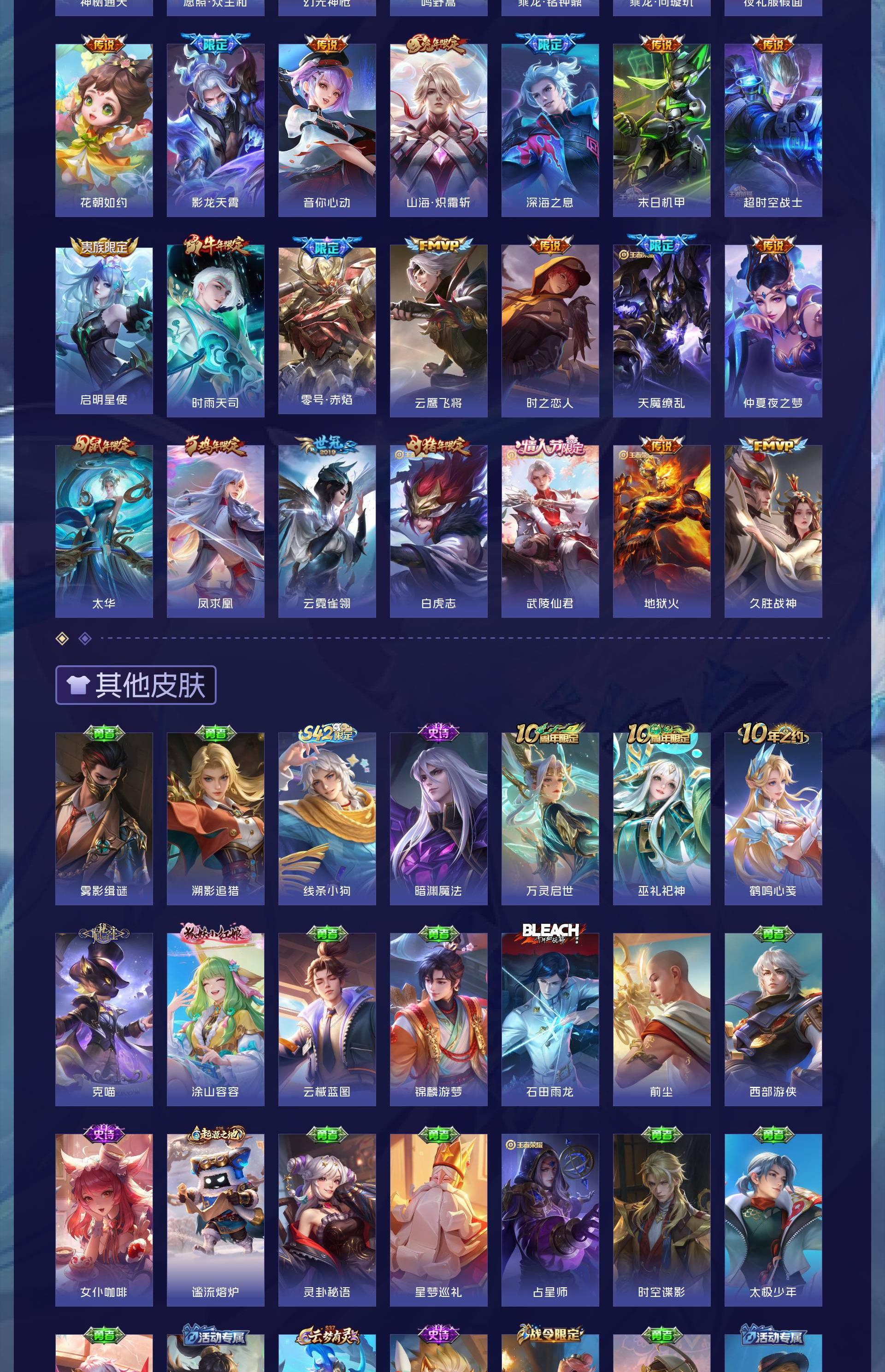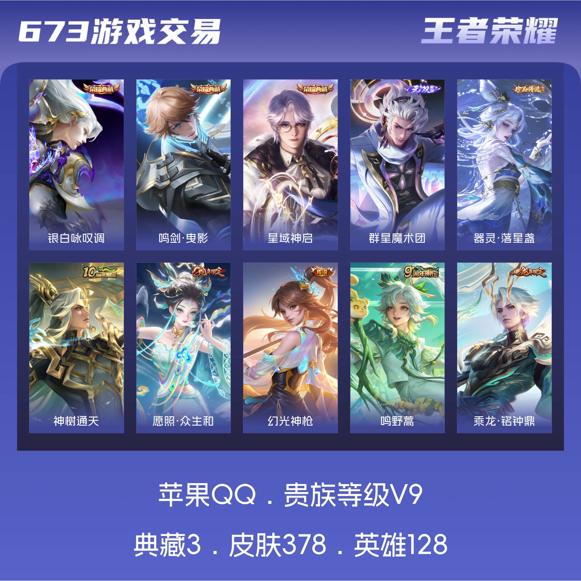 V9 皮肤378 英雄128 荣耀黄金 荣耀典藏3 无双皮肤1 珍品传说1 传说29 其他皮肤349