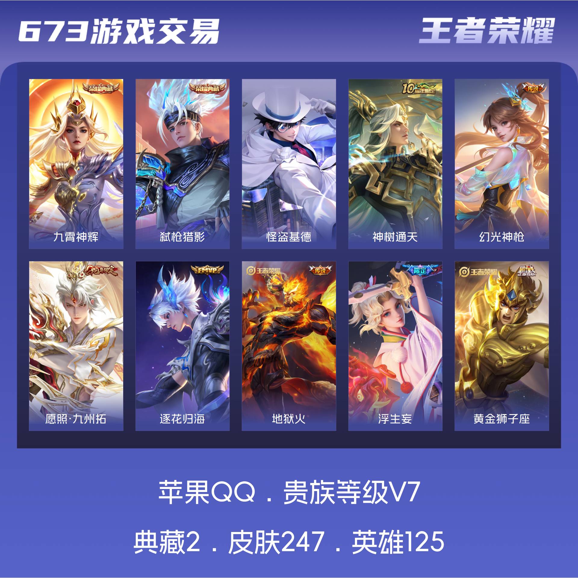 苹果QQ/永恒钻石/247皮肤/125英雄/2典藏/0珍品无双/0无双/1珍品传说/13传说/64史