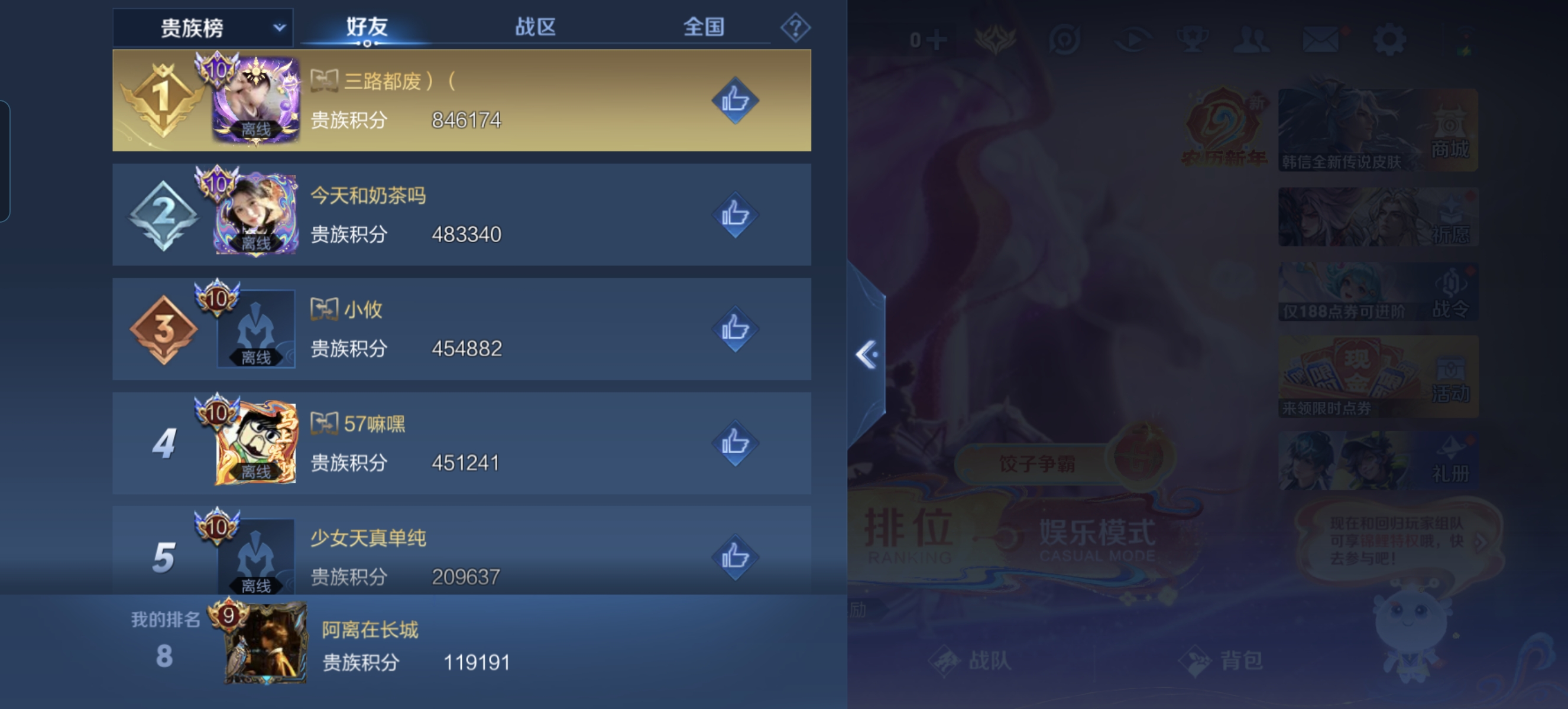 【王者荣耀】用户273*****e