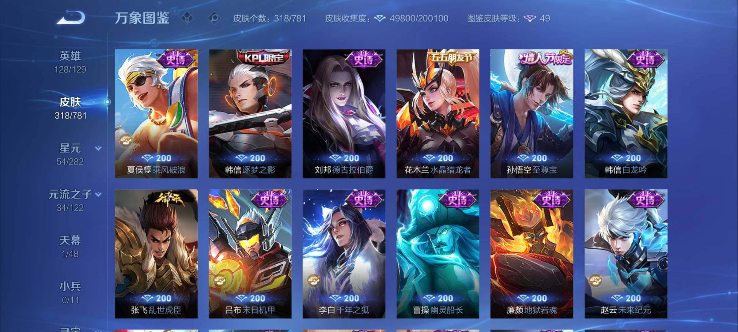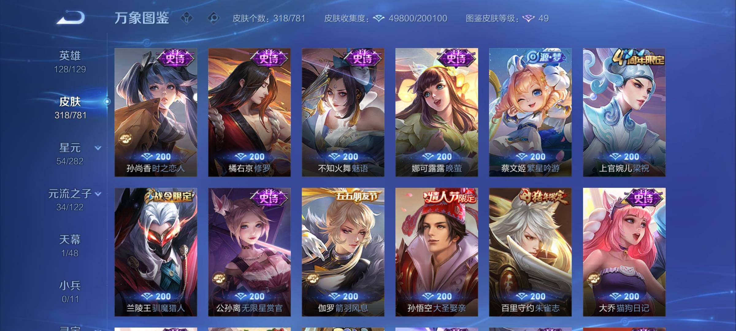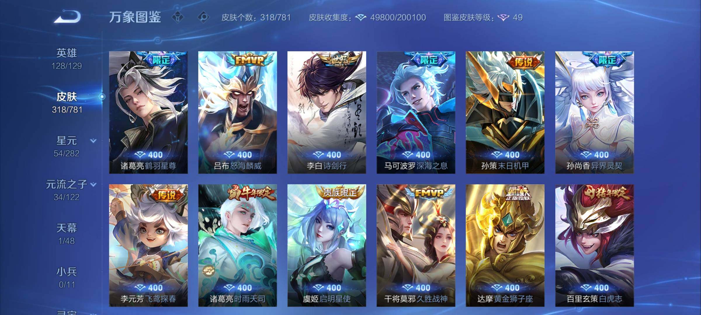 可换绑【新珍品·新传说·捡漏精品号·甄姬无双·李白典藏·伽罗嫦娥珍品·马年狄仁杰·花木兰情人节·龙年孙策赵云·马超琥珀纪元·白虎志·鹤羽星尊·凤求凰·多传说限定号】2星传说 10按键 21王者印记 满级铭文 可二次CD17524 安卓Q-V8-318皮肤-1典藏皮肤-1无双-2珍品传说-24传说-98史诗【英雄全皮】:孙权全皮,猪八戒全皮,敖隐全皮,影全皮【荣耀典藏