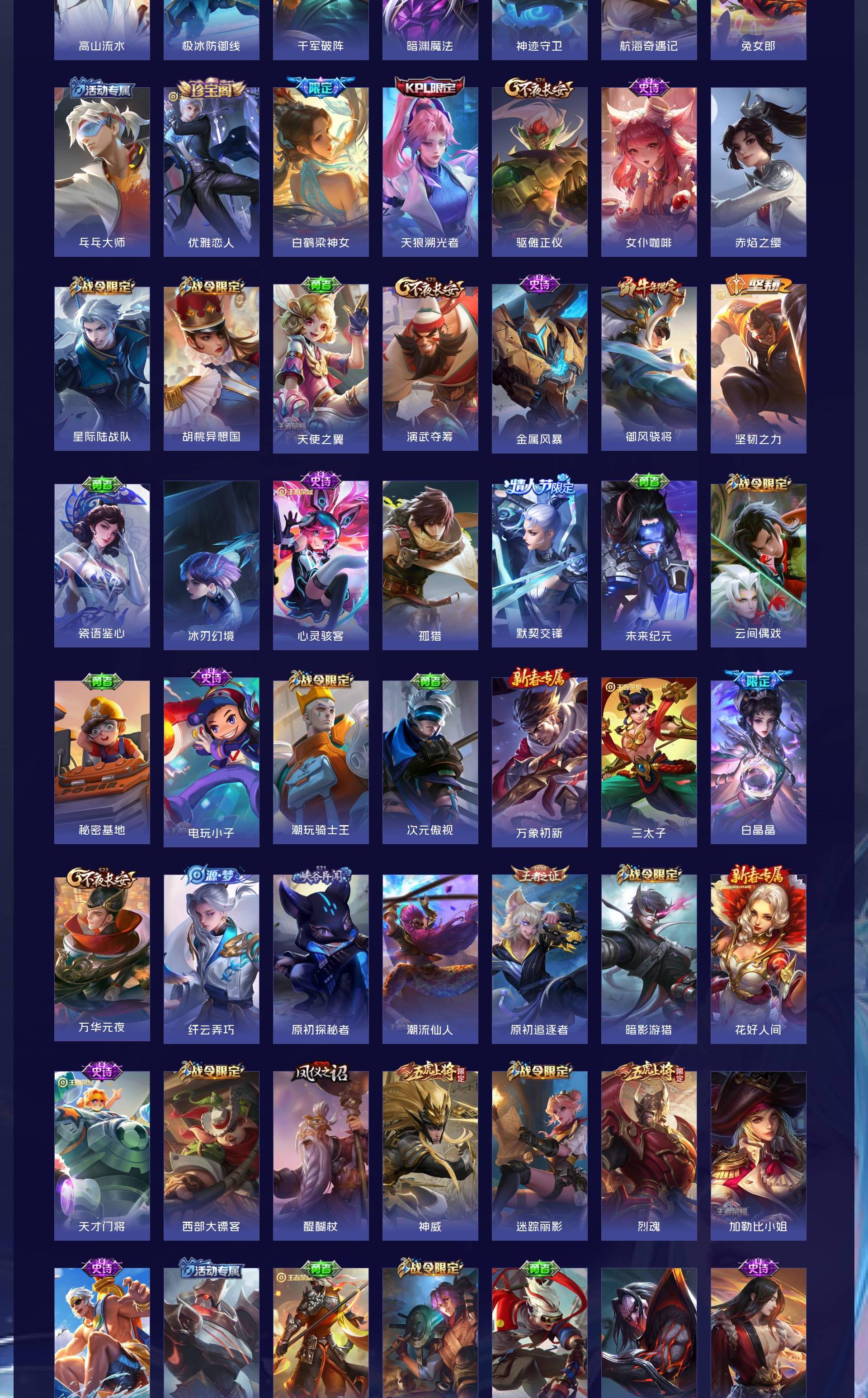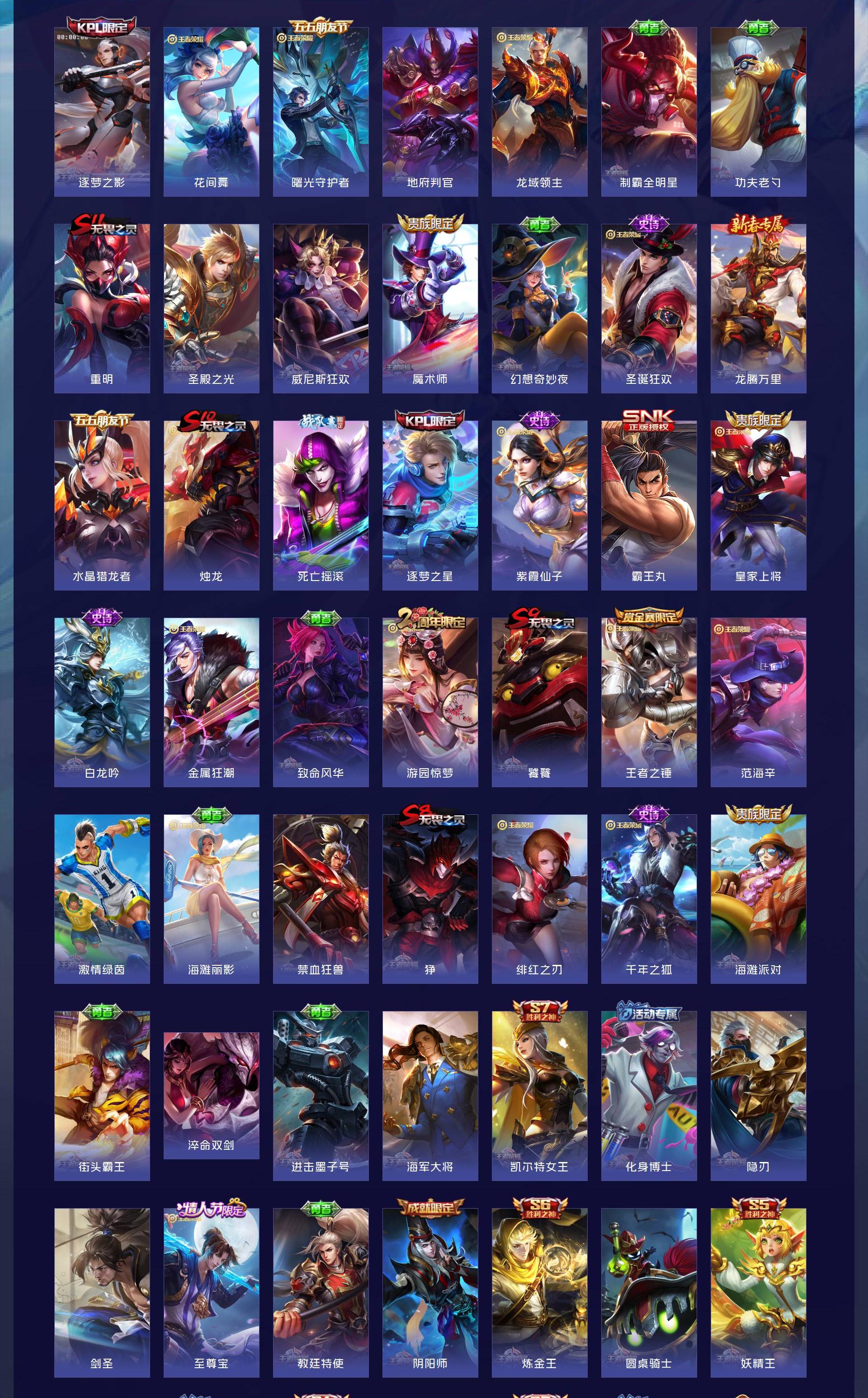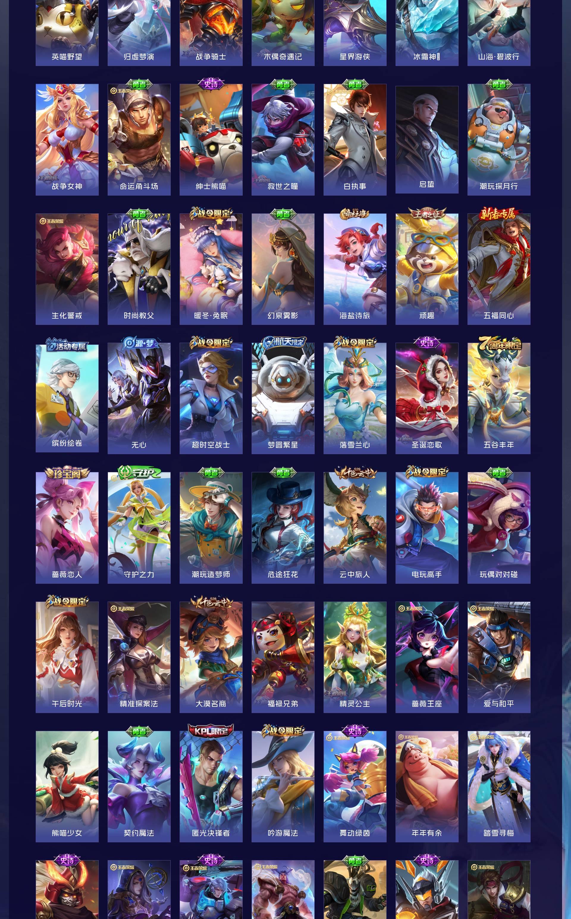 V10 皮肤497 英雄128 最强王者 荣耀典藏4 无双皮肤1 传说52 其他皮肤445