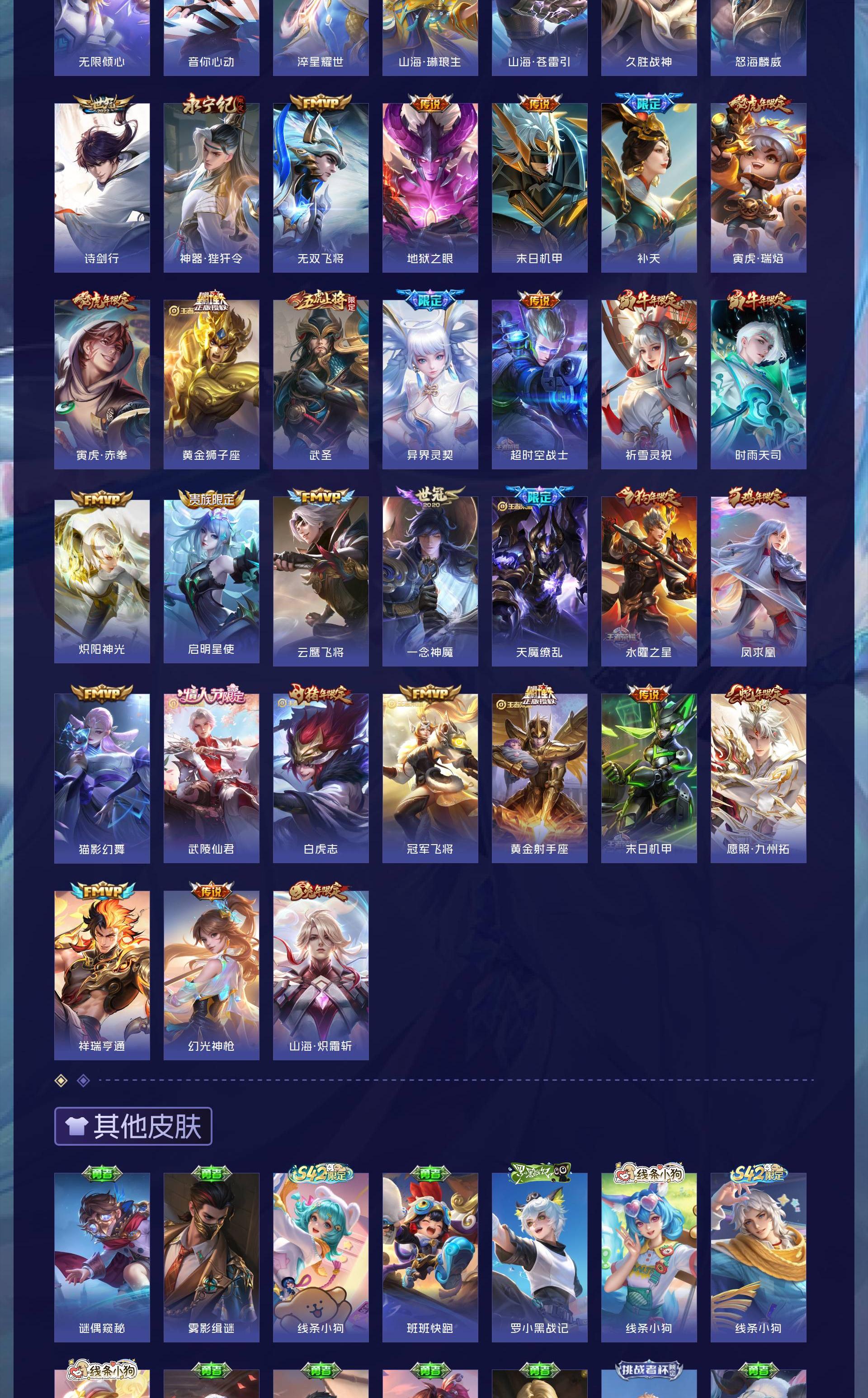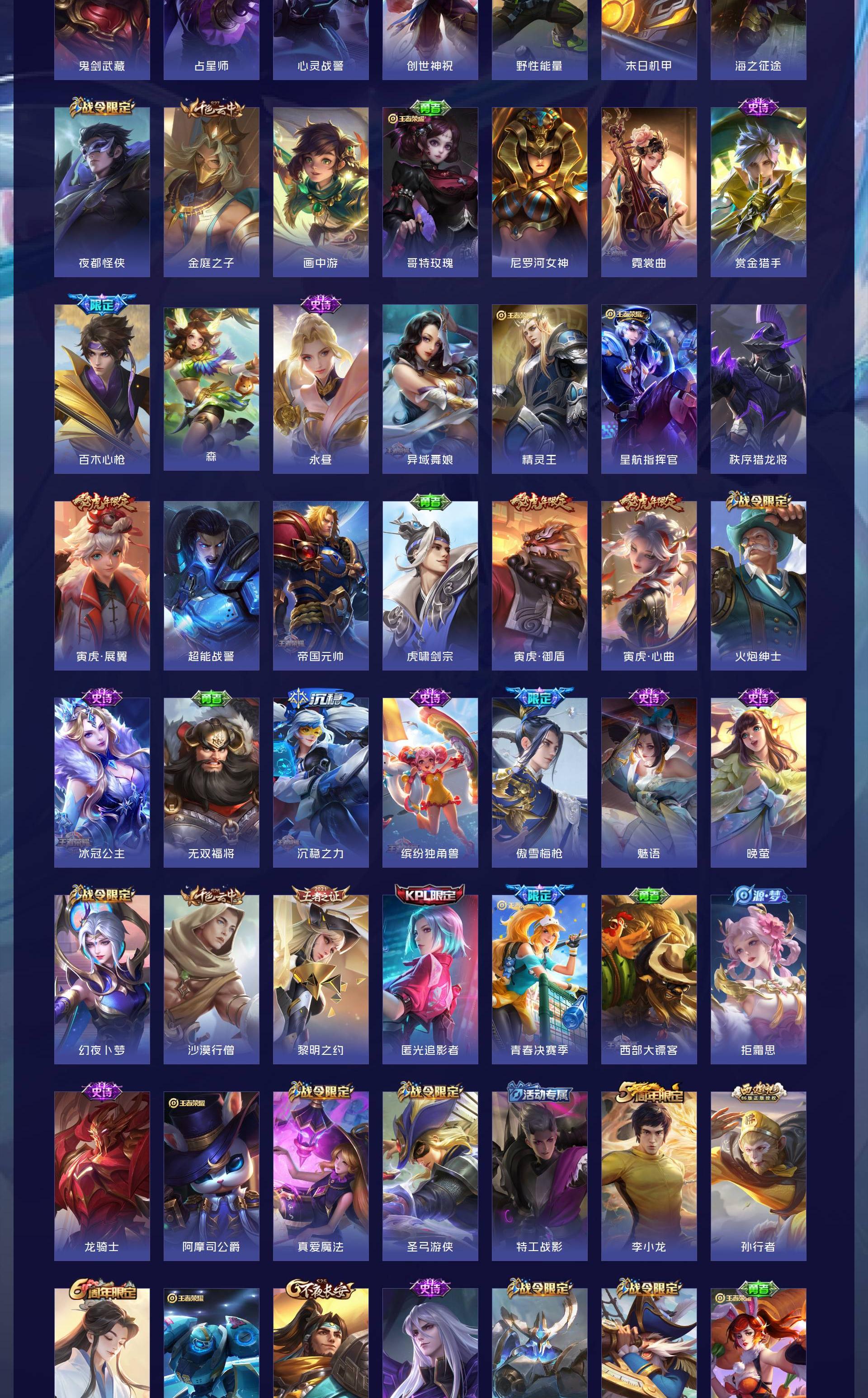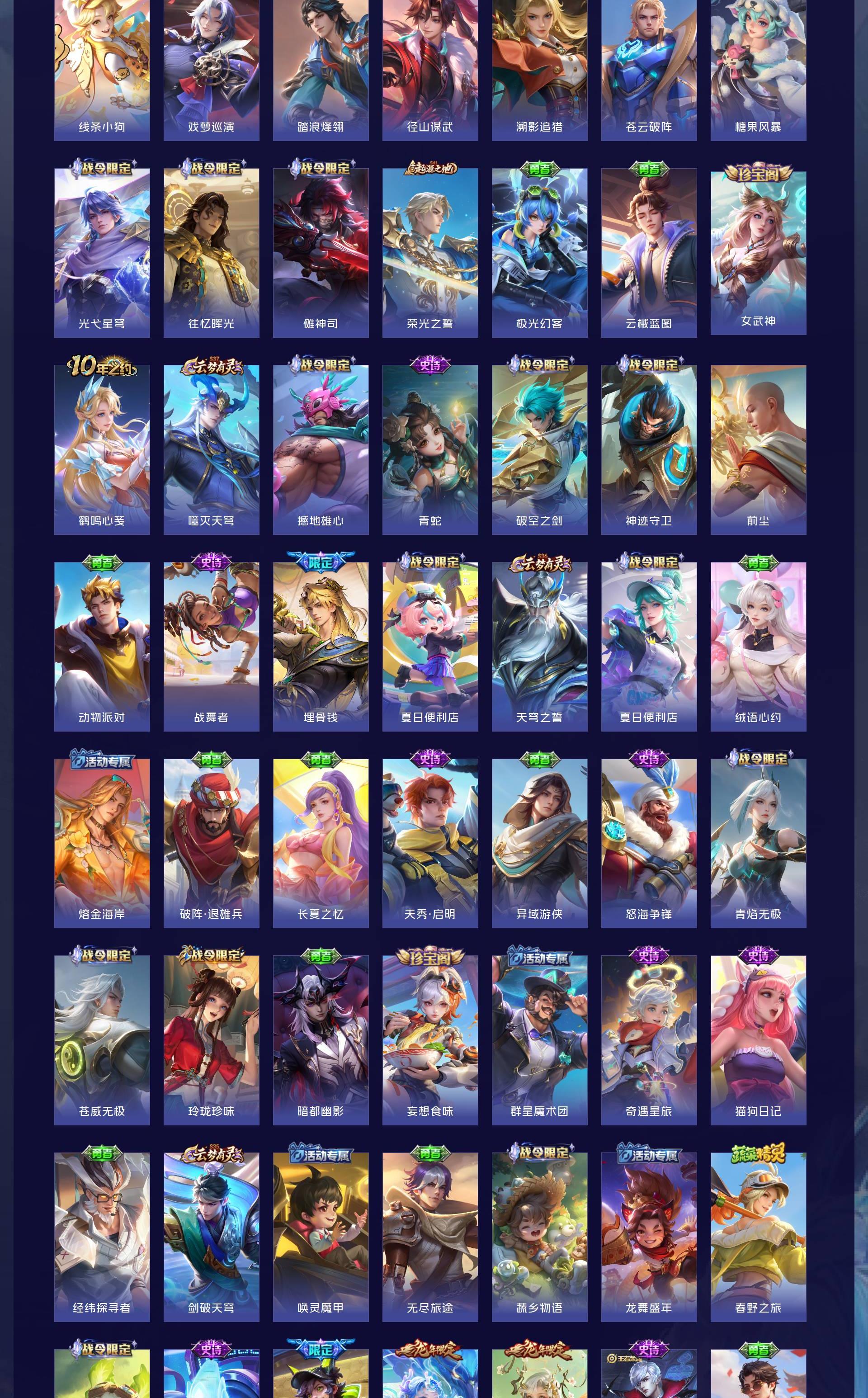 V10 皮肤497 英雄128 最强王者 荣耀典藏4 无双皮肤1 传说52 其他皮肤445
