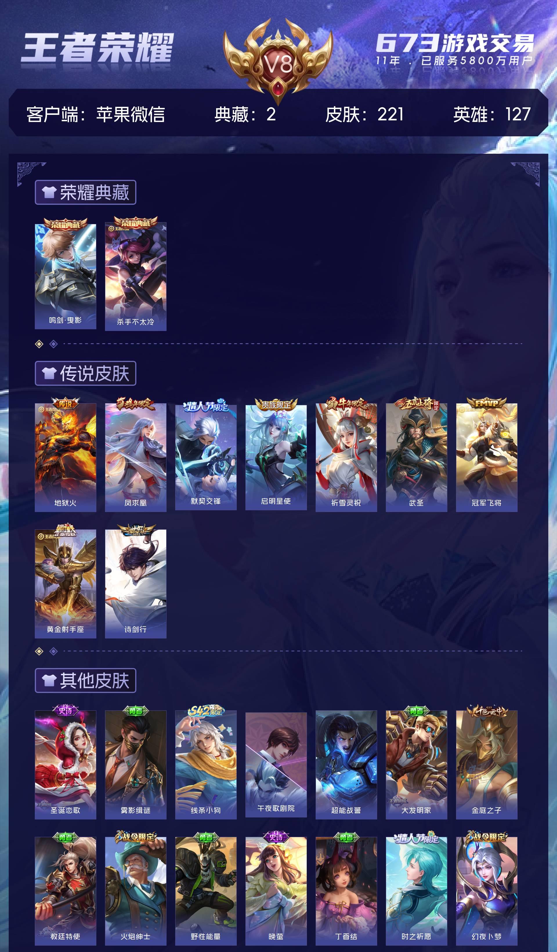 V8 皮肤221 英雄127 至尊星耀 荣耀典藏2 传说9 其他皮肤214