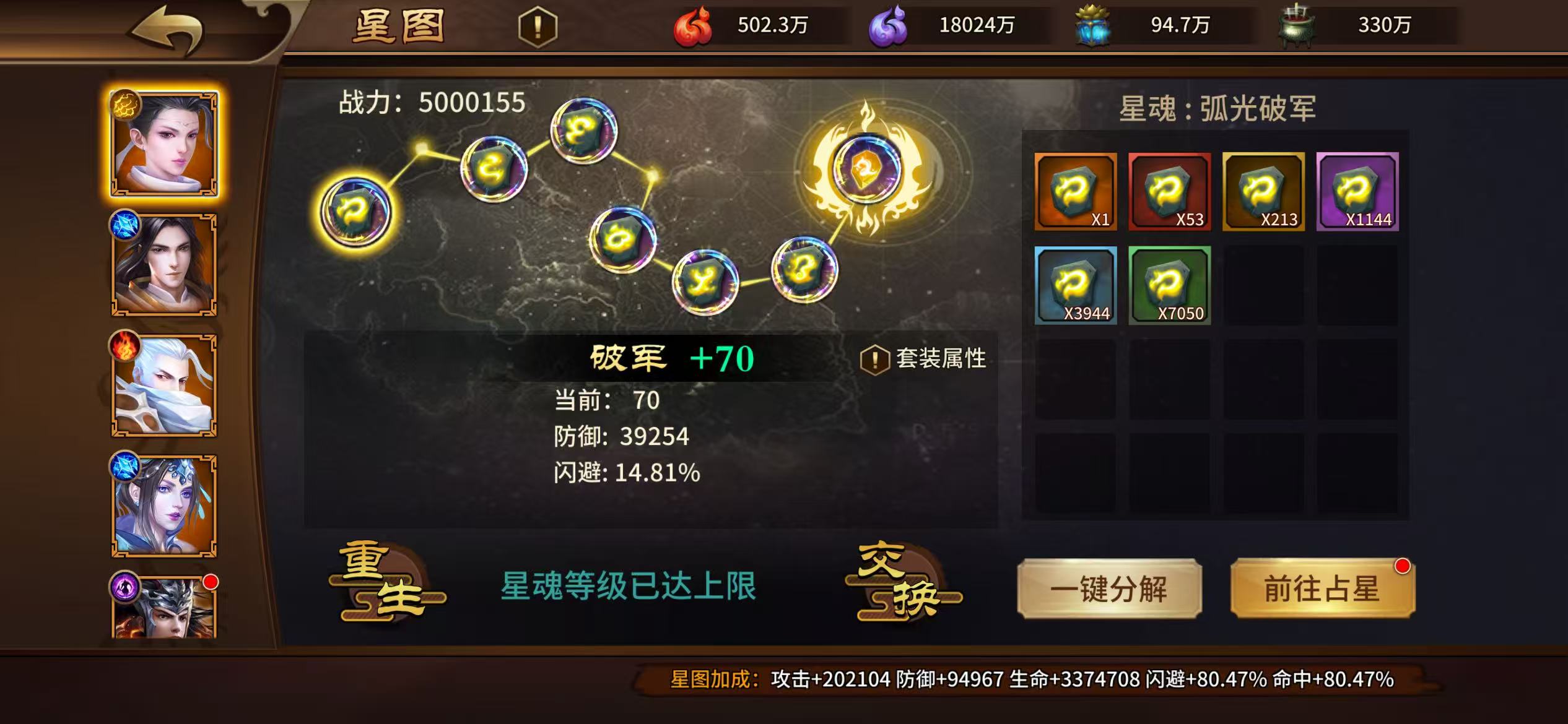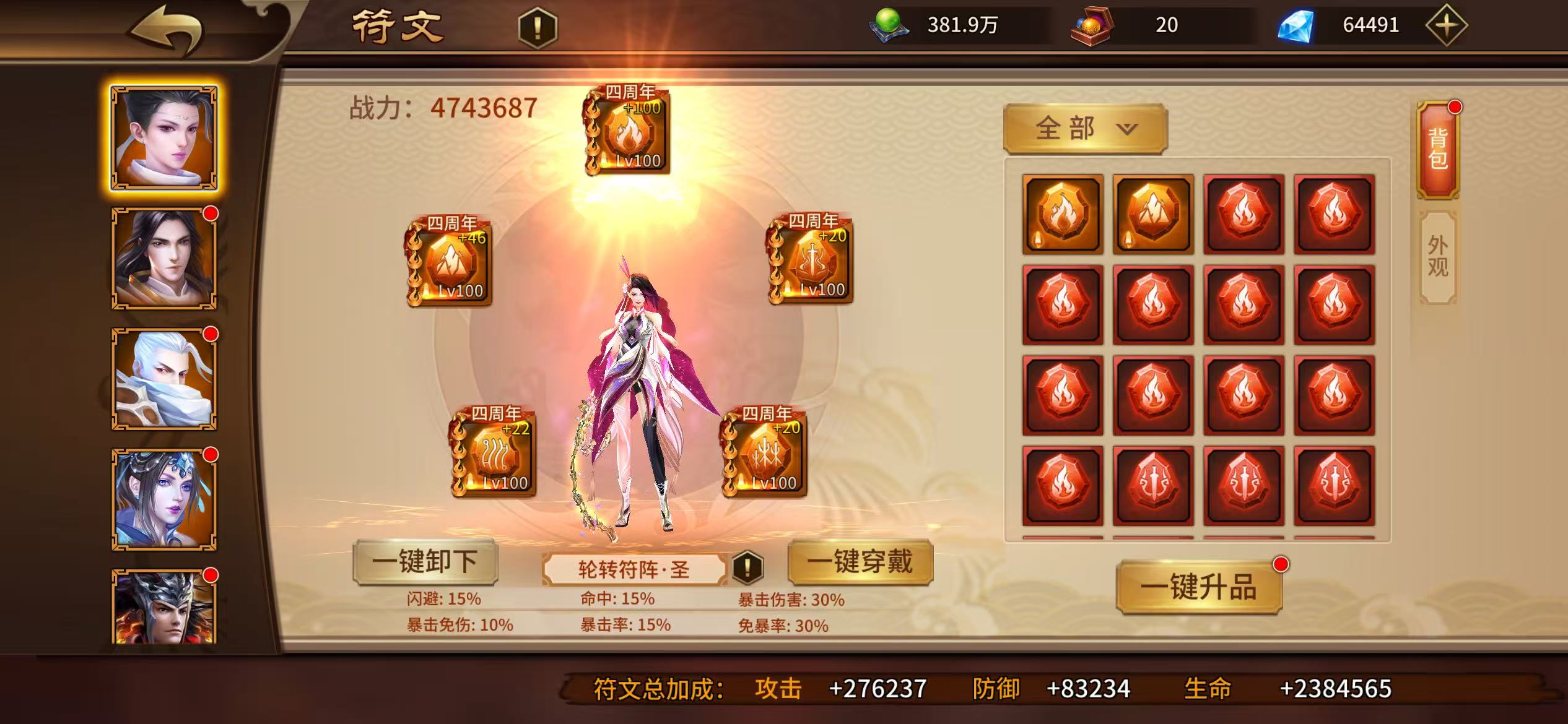 高命中!克闪避!三橙兽!四周年符文!满级神兵!星魂!兑完大概有1500花灯。