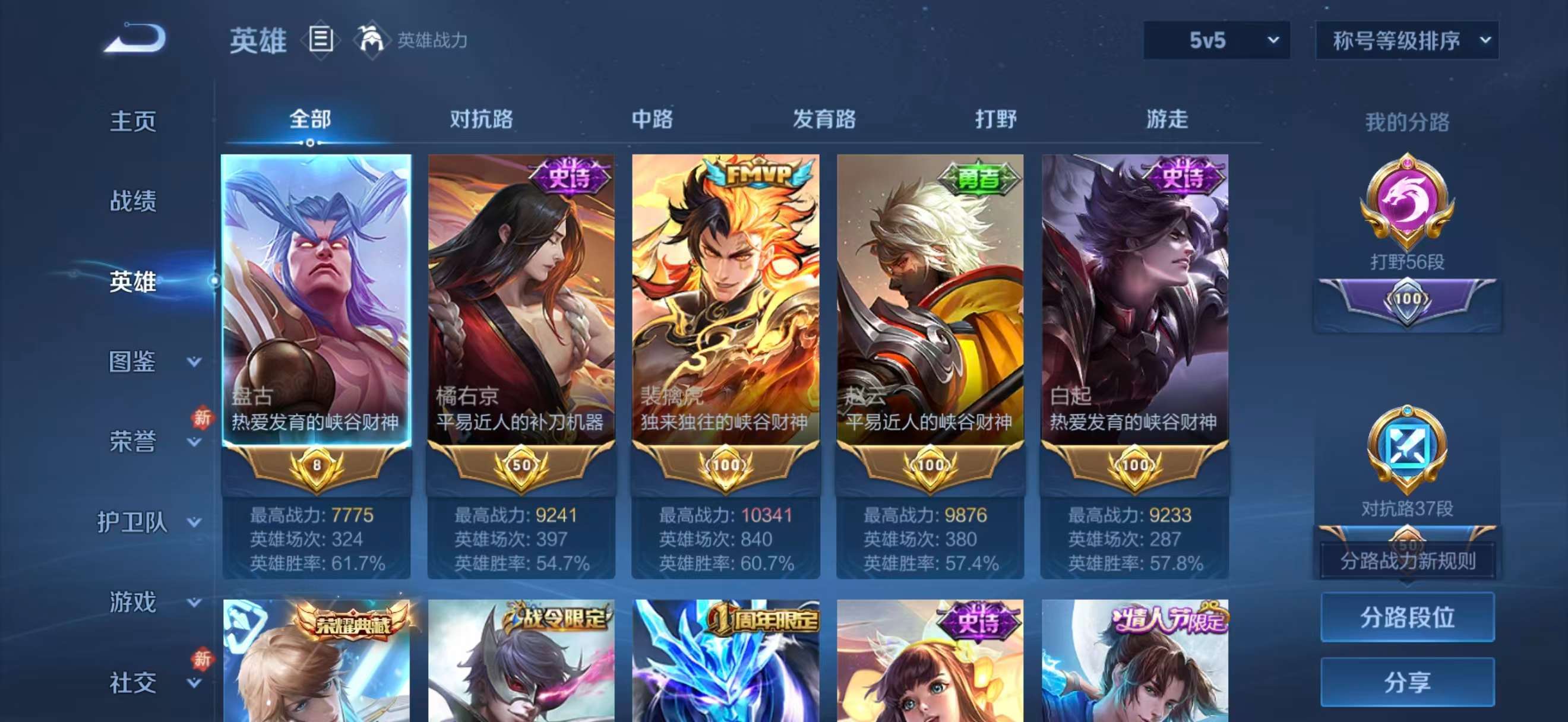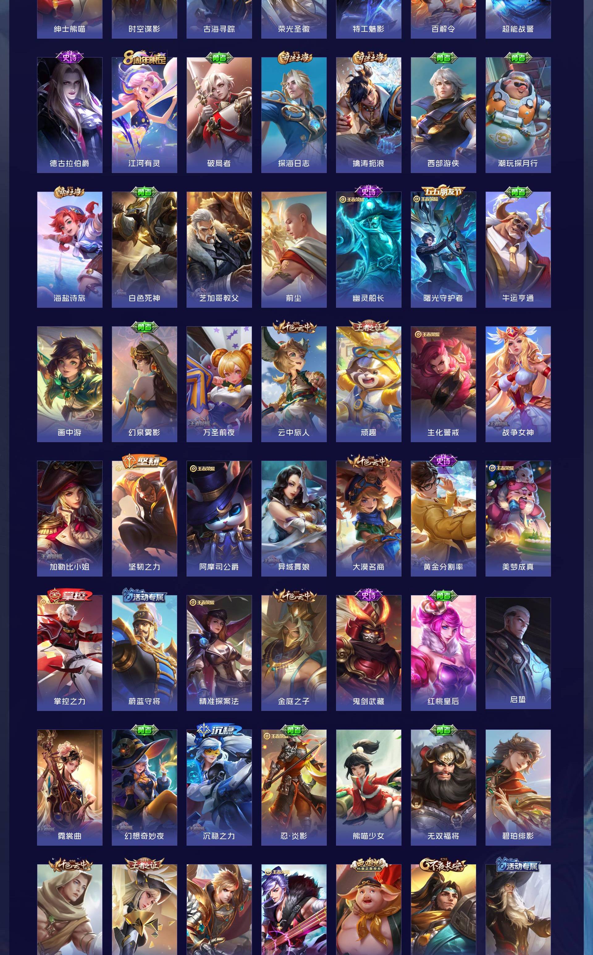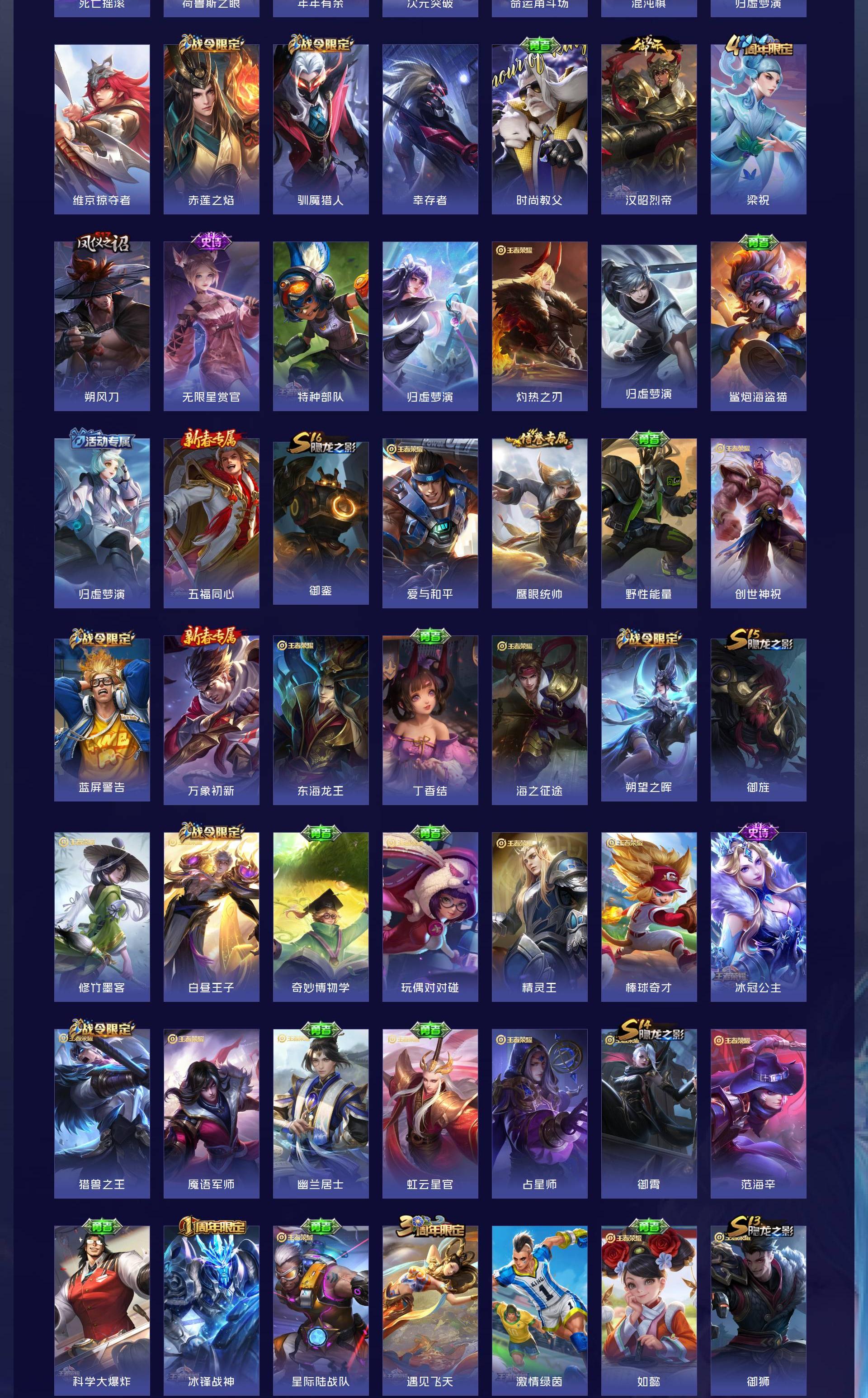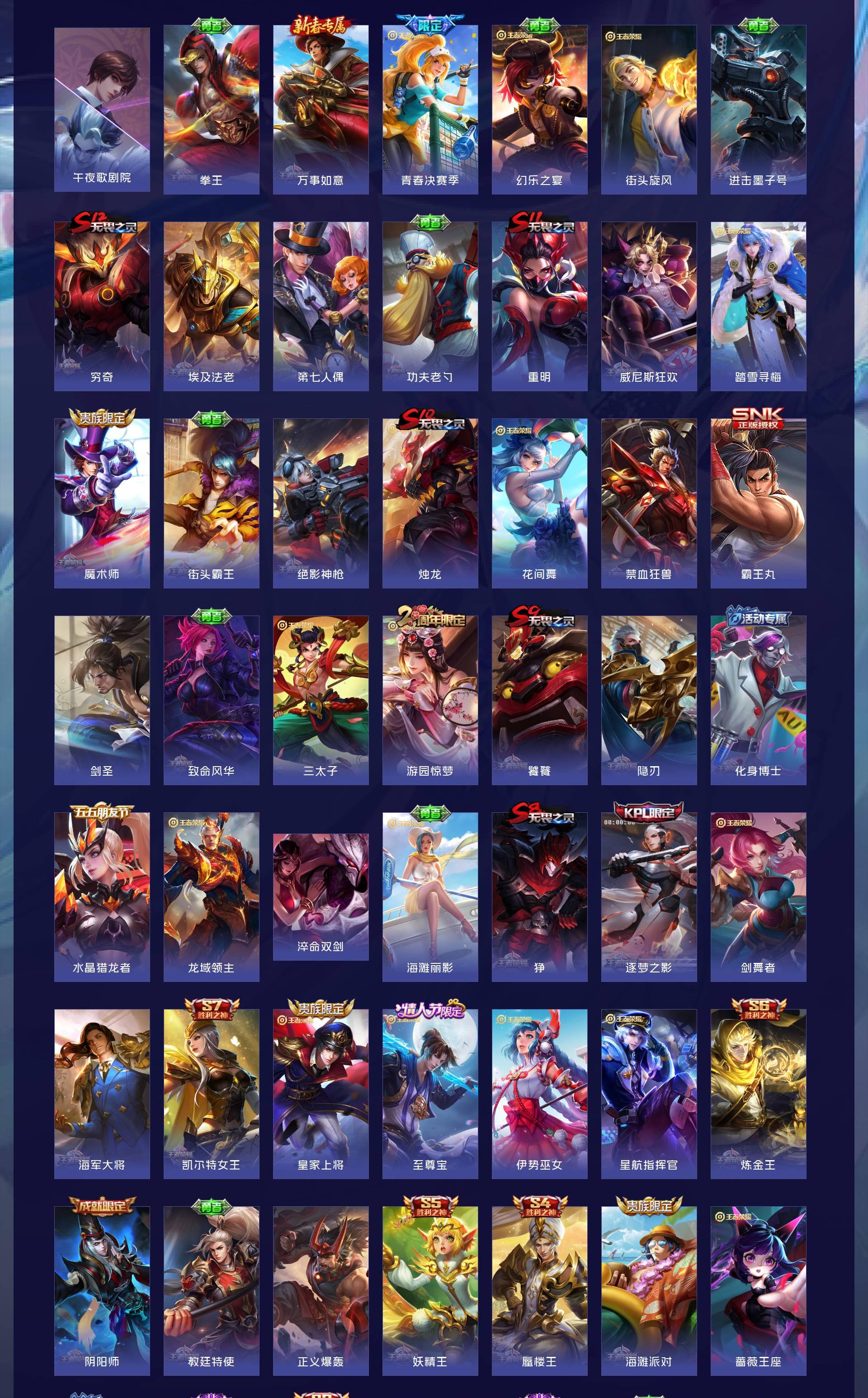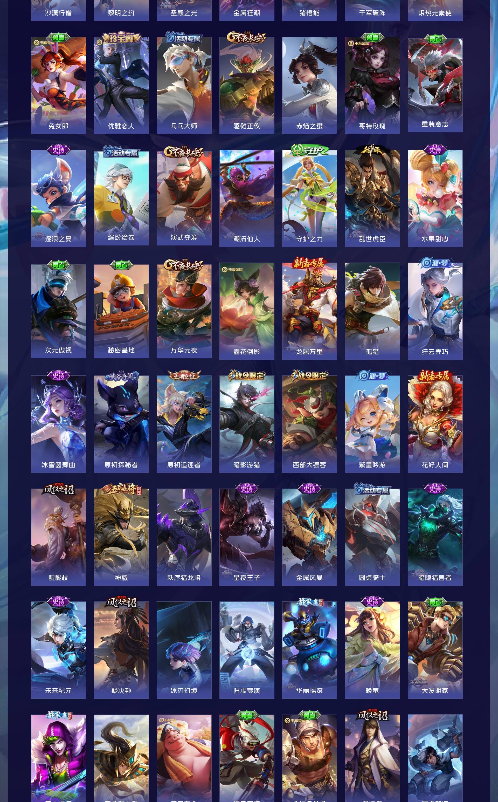 V7 皮肤300 英雄127 无双王者 荣耀典藏2 传说15 其他皮肤288