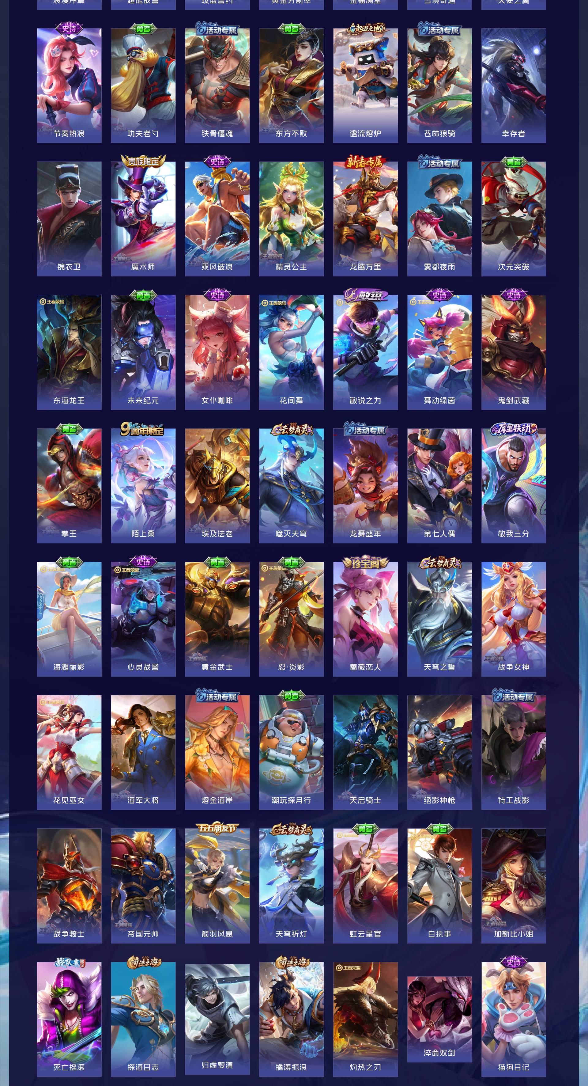 V6 皮肤165 英雄128 永恒钻石 荣耀典藏1 无双皮肤1 珍品传说2 传说8 其他皮肤158