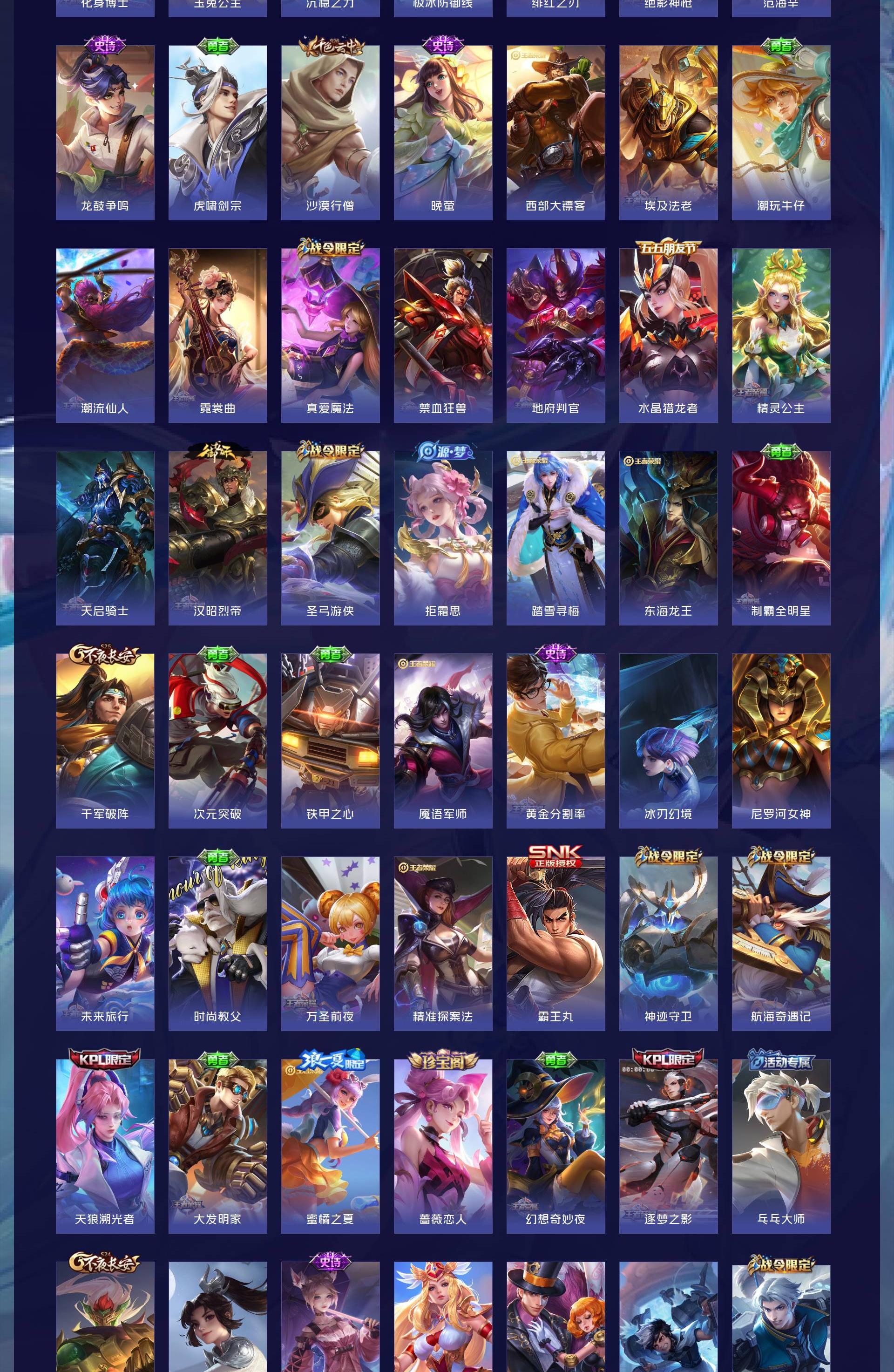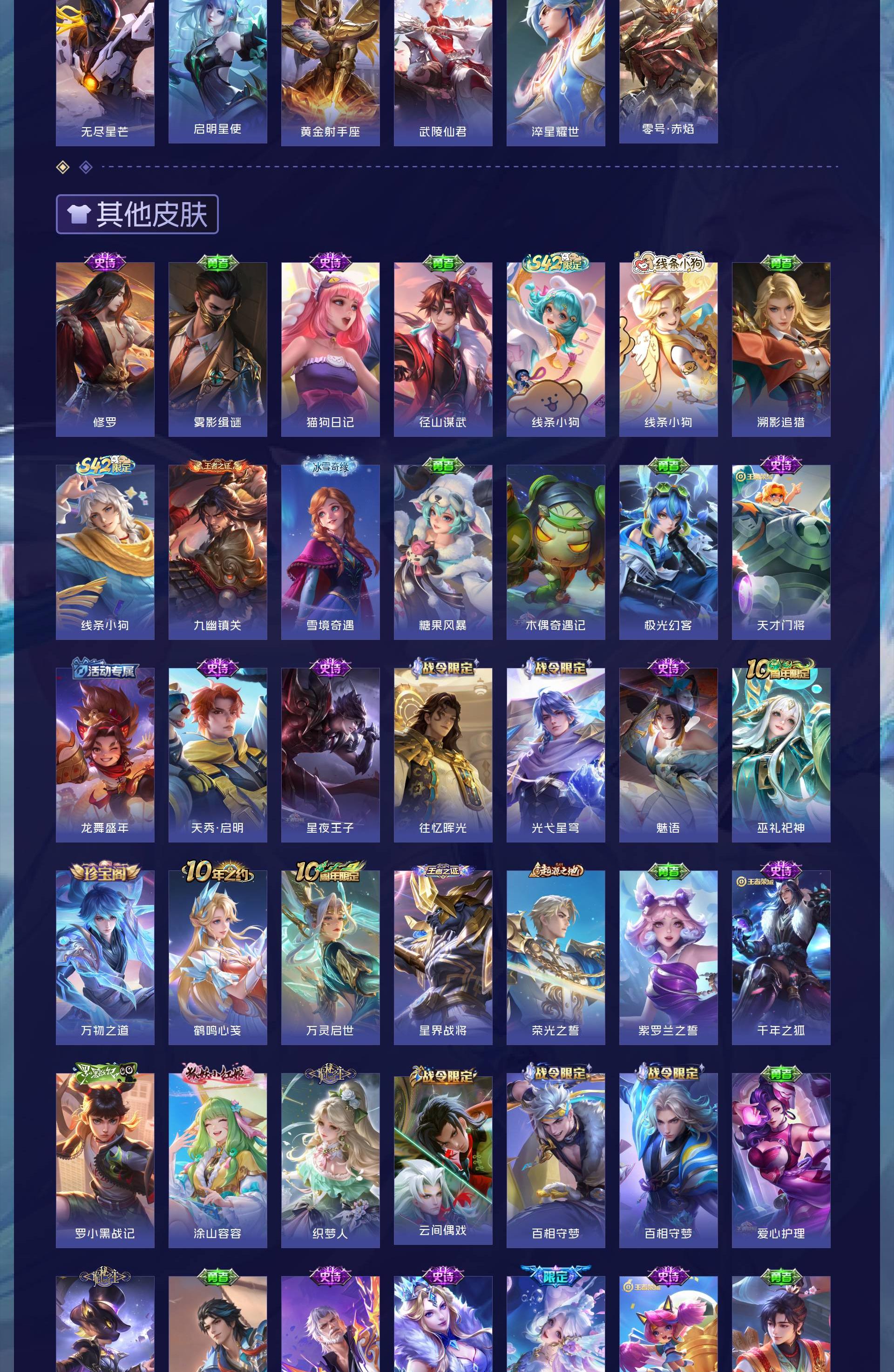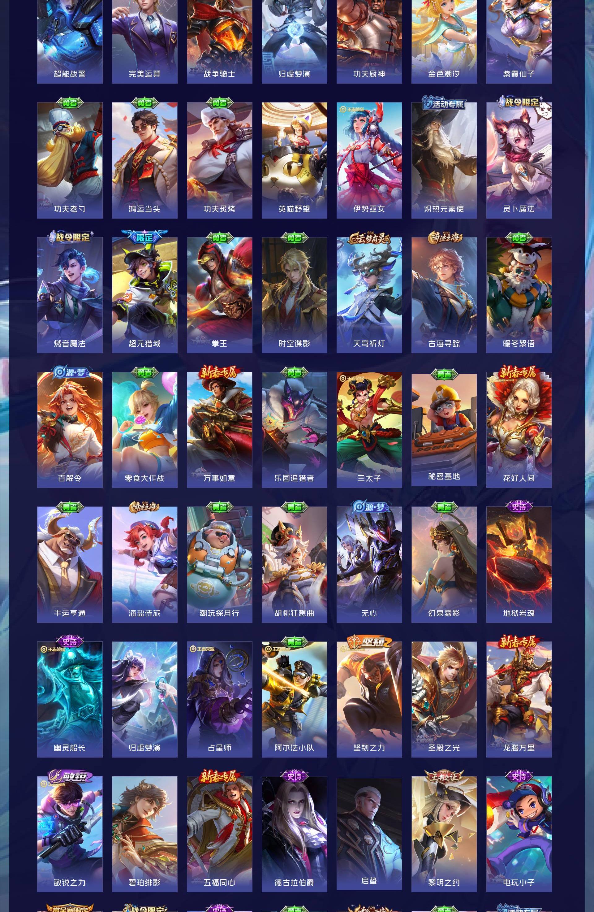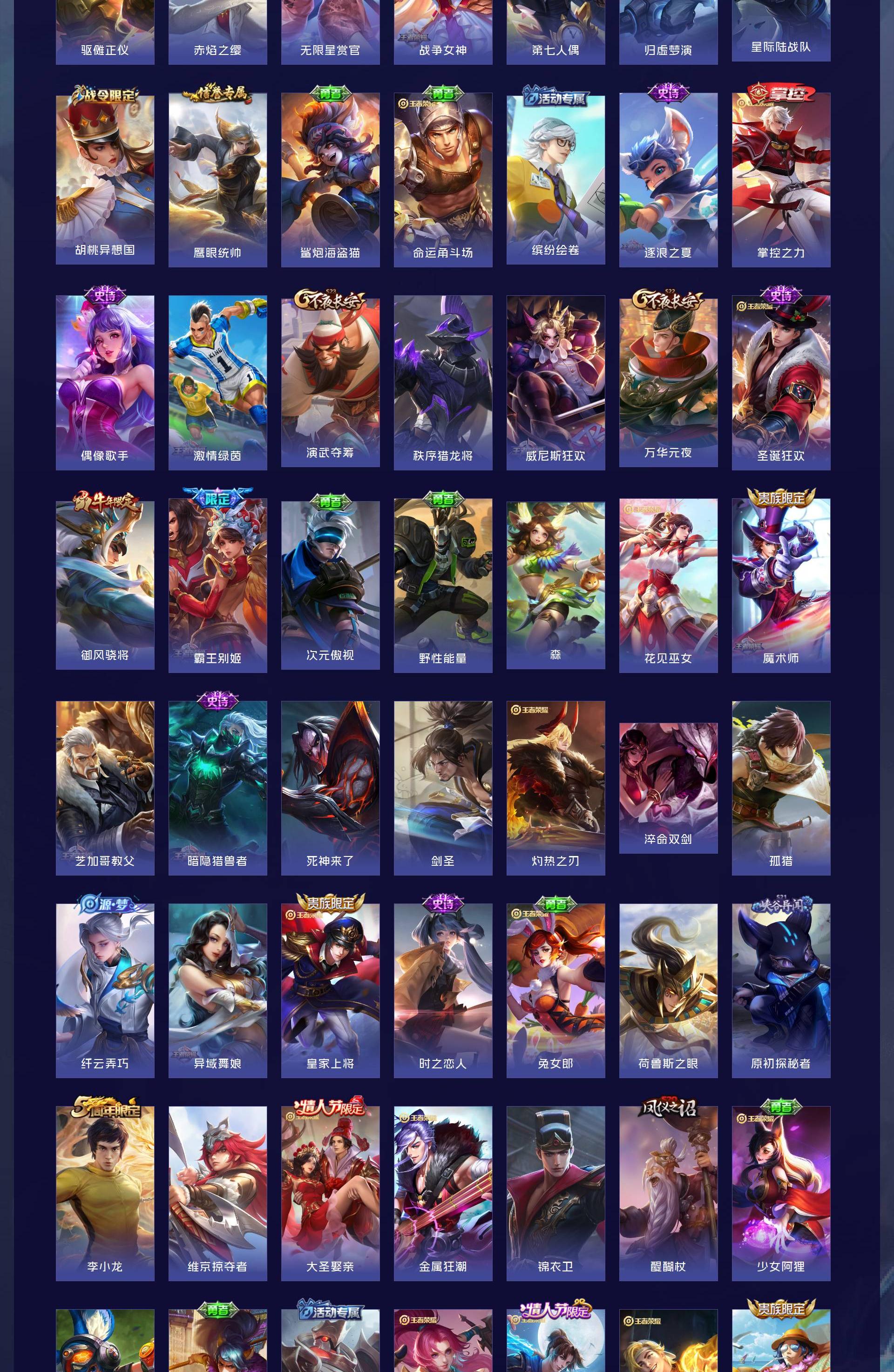 V8 皮肤336 英雄128 非凡王者 荣耀典藏3 无双皮肤1 传说20 其他皮肤314