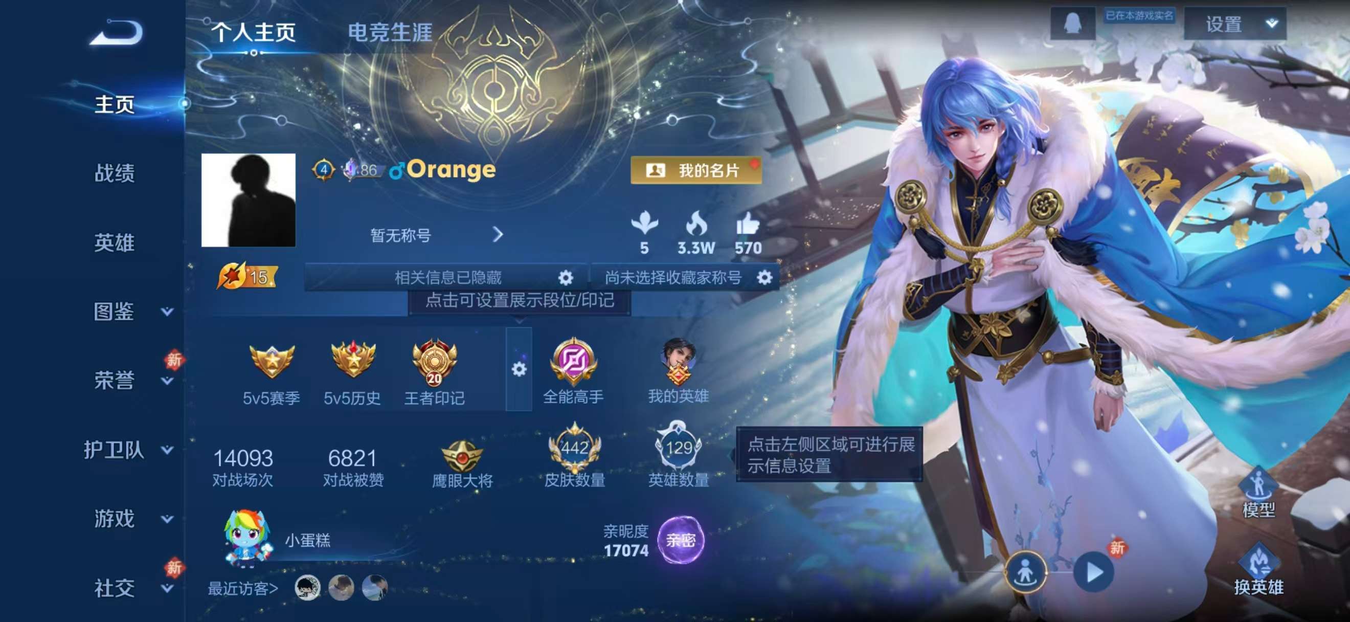 安卓QQ/最强王者/442皮肤/129英雄/3典藏/0珍品无双/2无双/5珍品传说/35传说/129