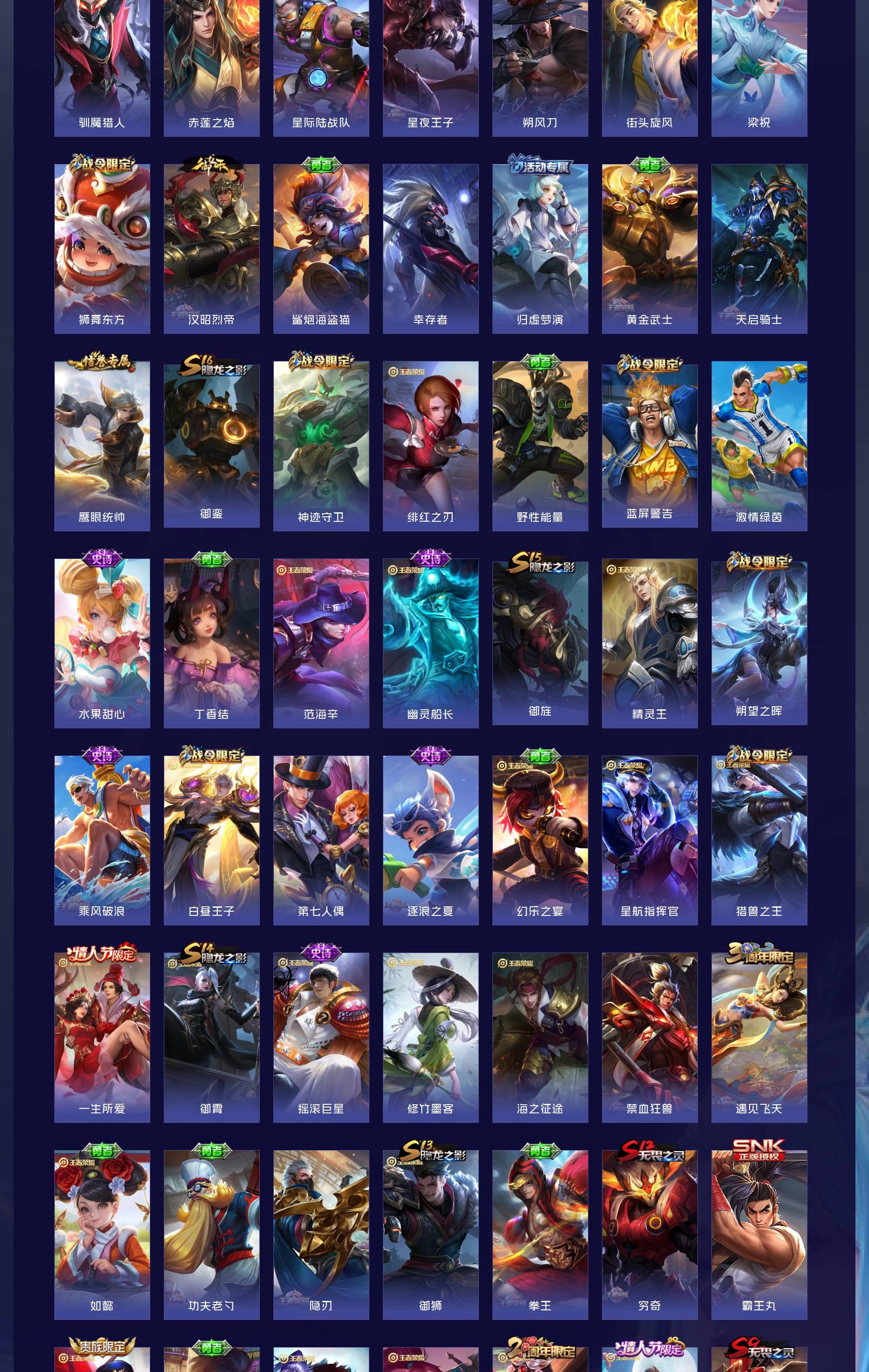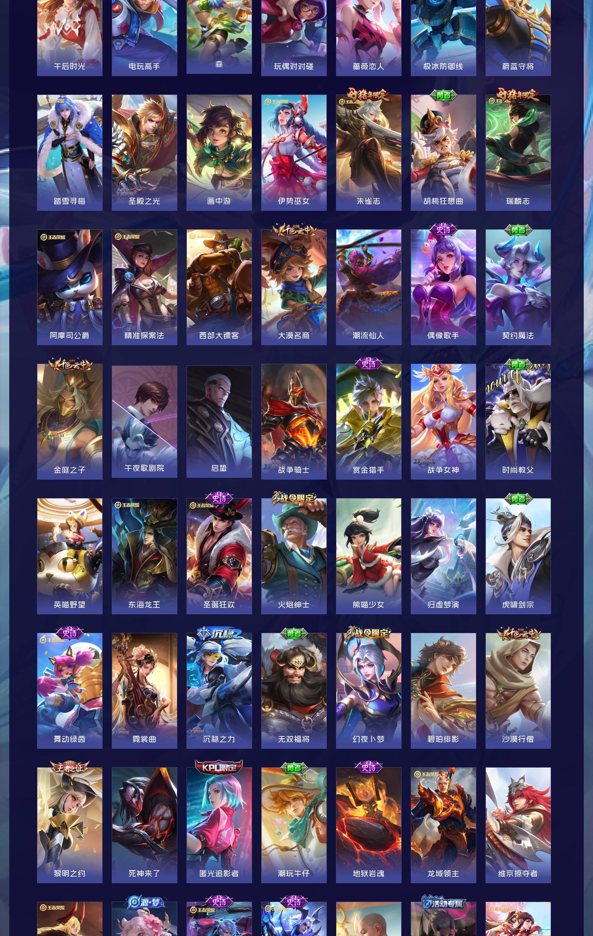 V9 皮肤442 英雄129 最强王者 荣耀典藏4 无双皮肤2 珍品传说5 传说33 其他皮肤399