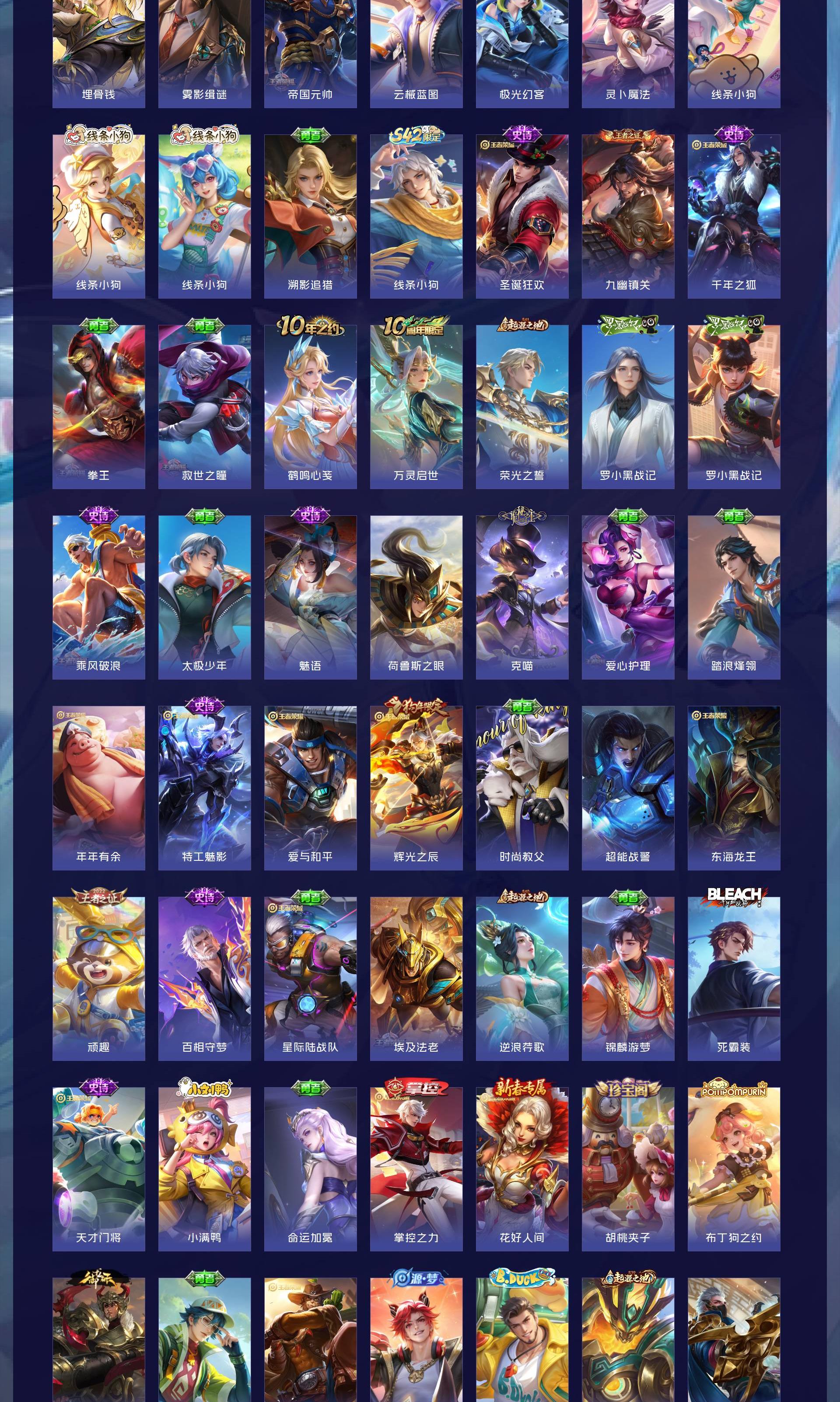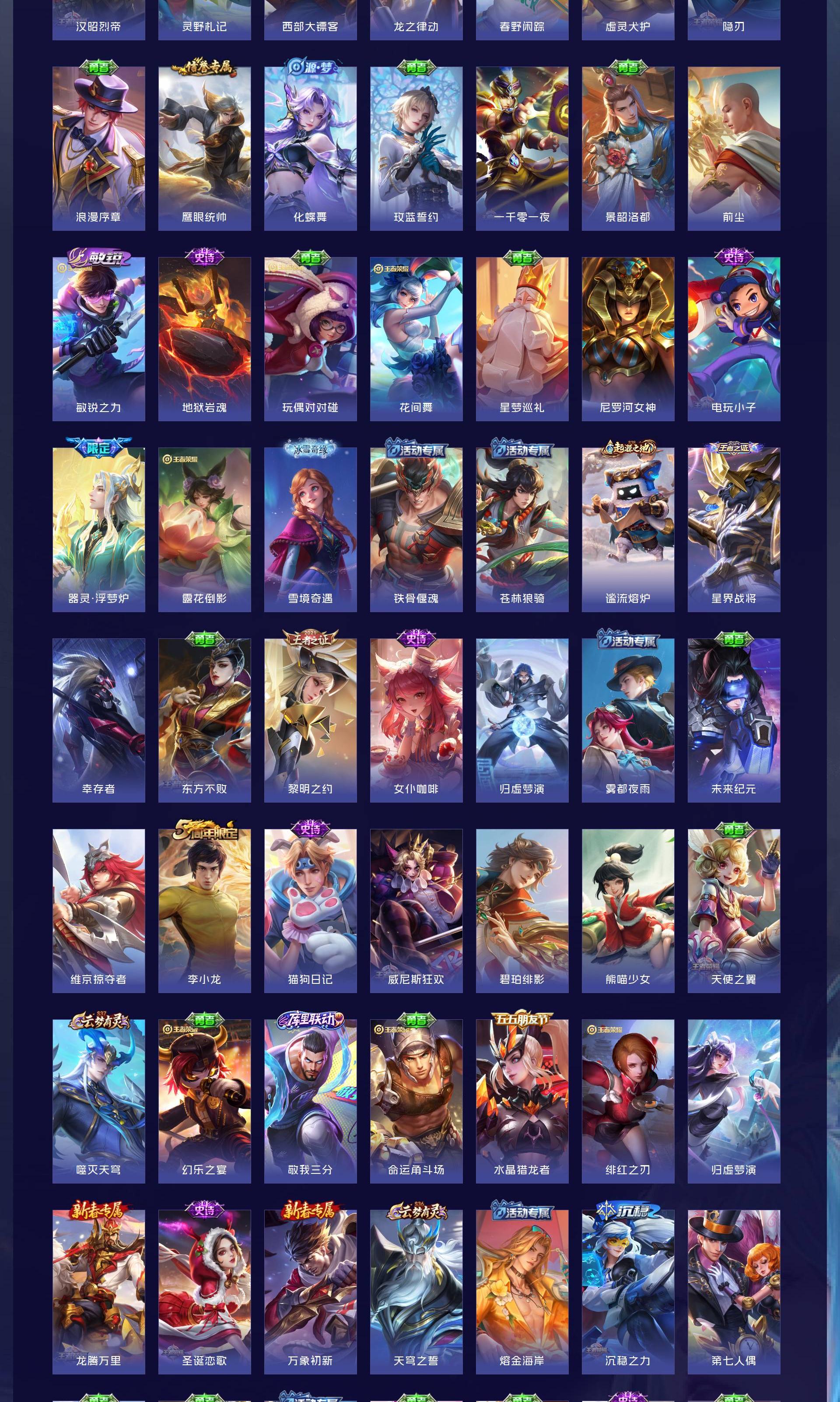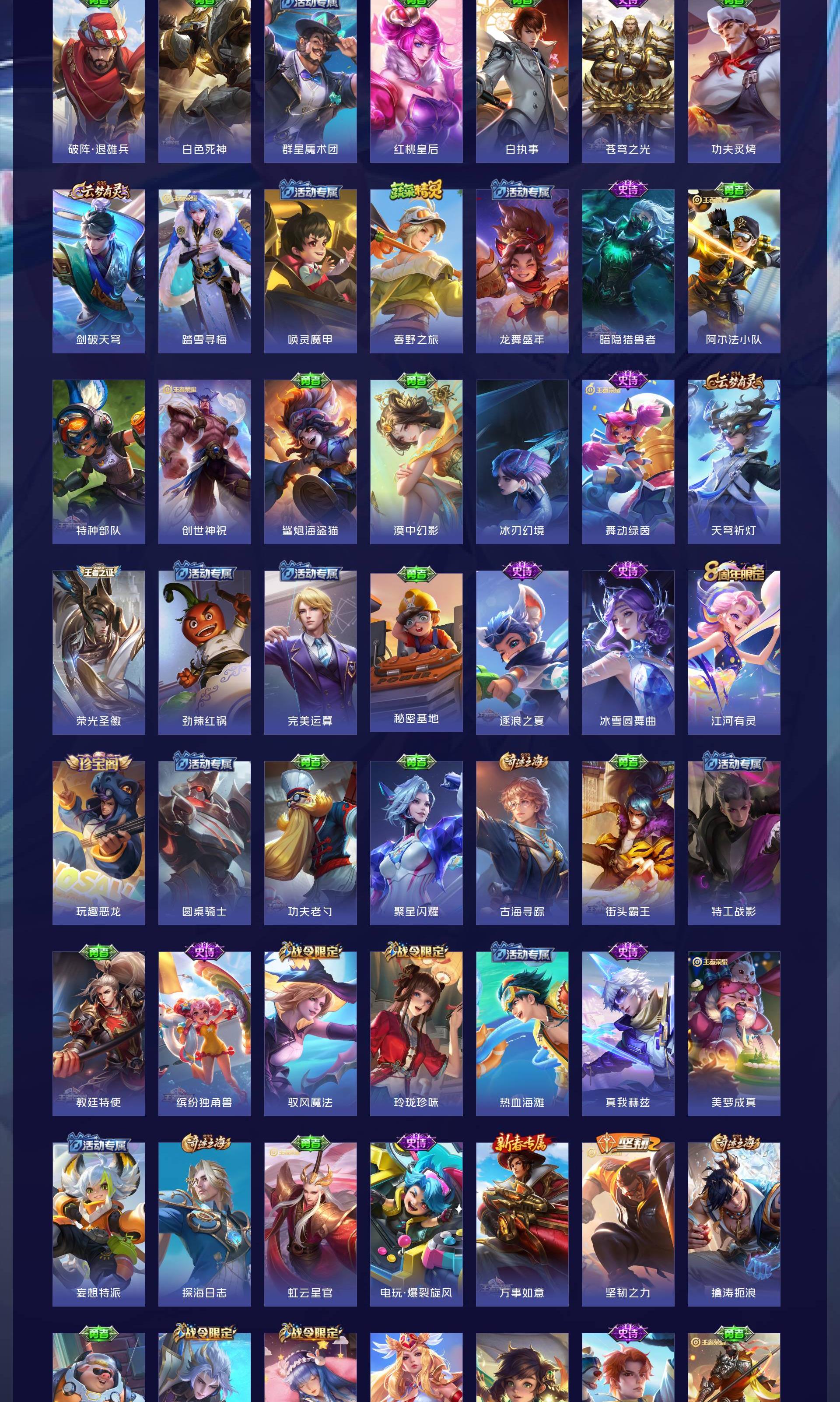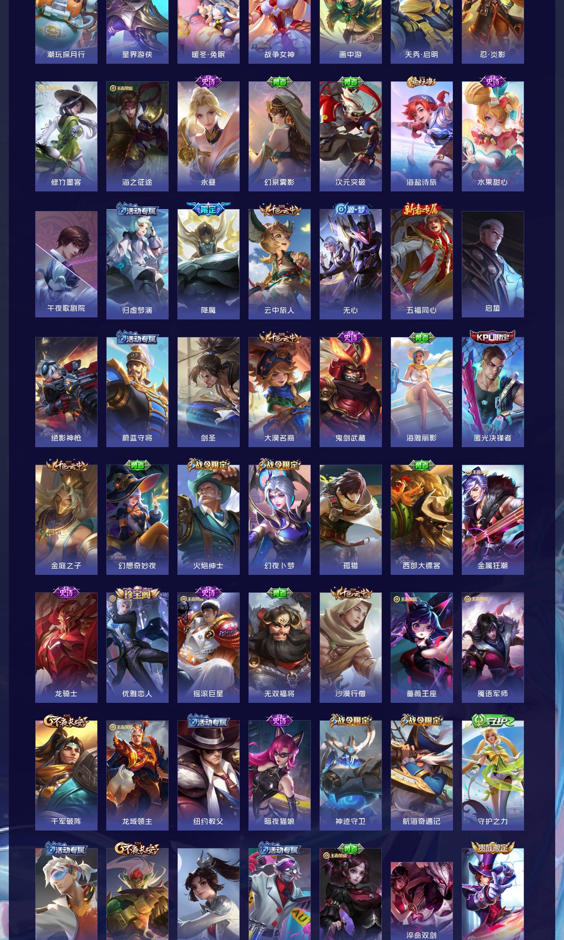 V7 皮肤264 英雄128 最强王者 荣耀典藏1 无双皮肤2 传说13 其他皮肤250