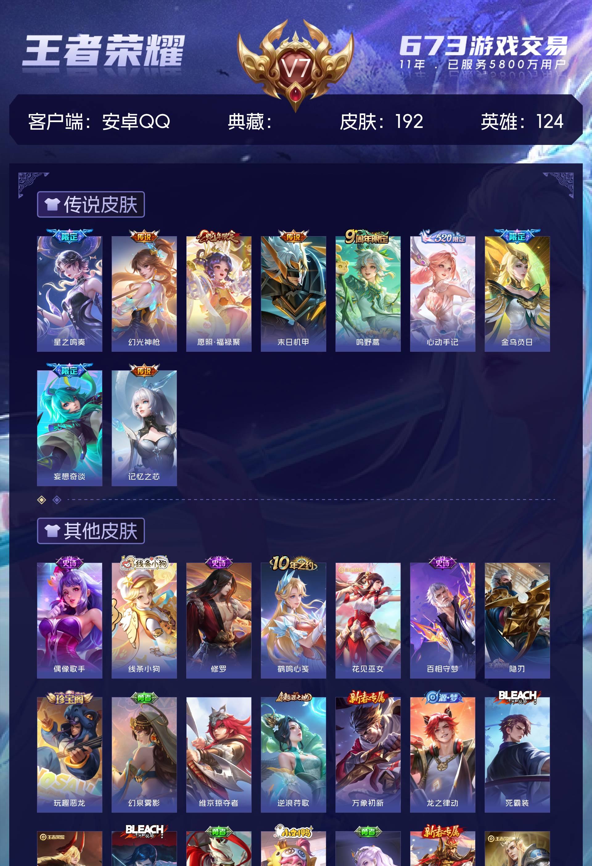 V7 皮肤192 英雄124 永恒钻石 传说9 其他皮肤189