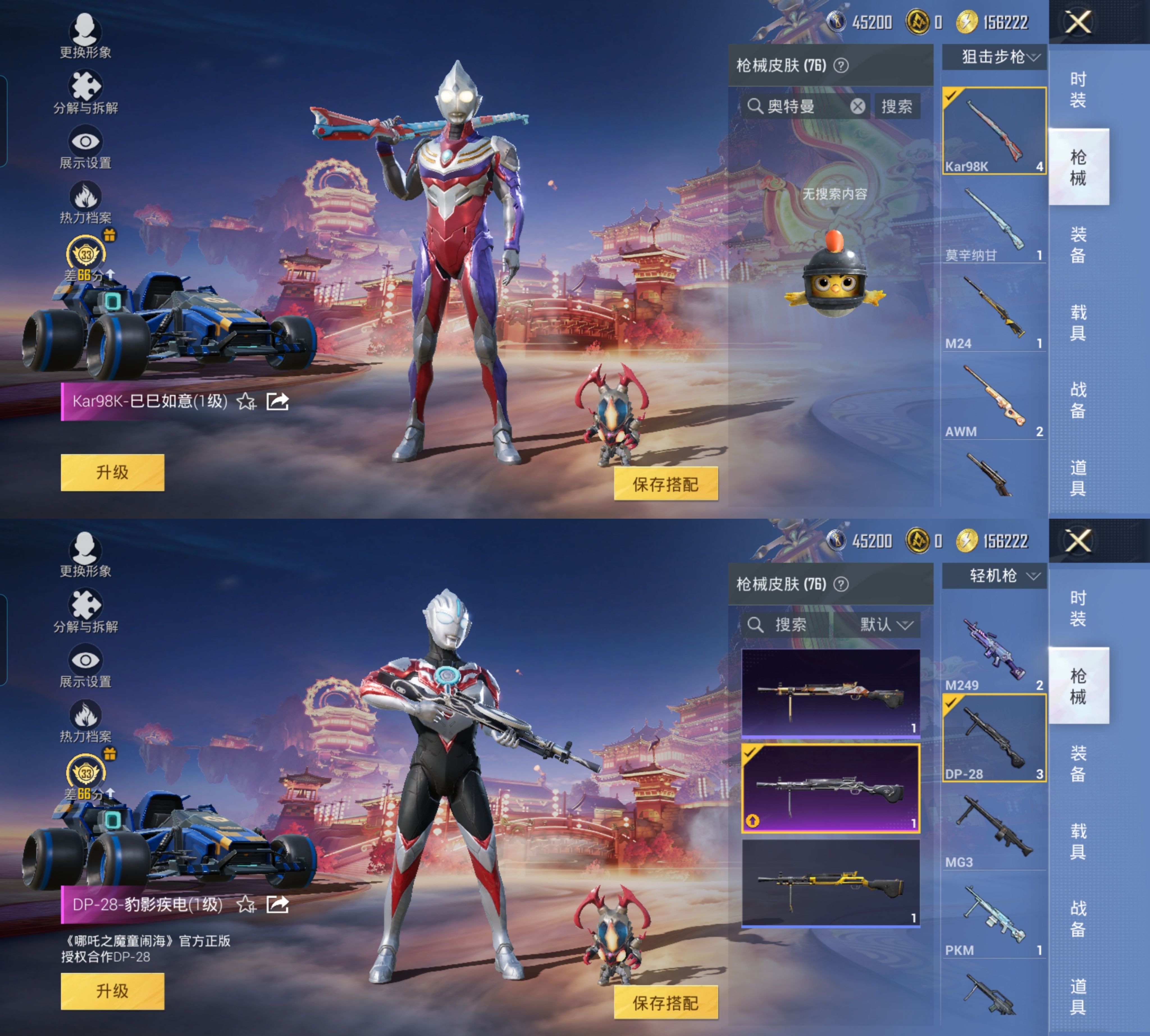 LGH565【5个奥特曼4特1车2飞行器地铁号满级M762甜蜜誓约捷德奥特曼 赛罗奥特曼 迪迦奥特曼 欧布奥特曼 艾克斯奥特曼】(不可二次) 安卓Q-1载具4特效枪12热门63套装76枪皮 26056热力值 4印记 历史超级王牌6星 【1载具】 合金龙骨蓝色 【4特效枪】 M762-甜蜜誓约 (7级) Kar98K-巳巳如意 (1级) AWM-橘柚倾心 (4级) DP-28-豹影疾电 (1级)
