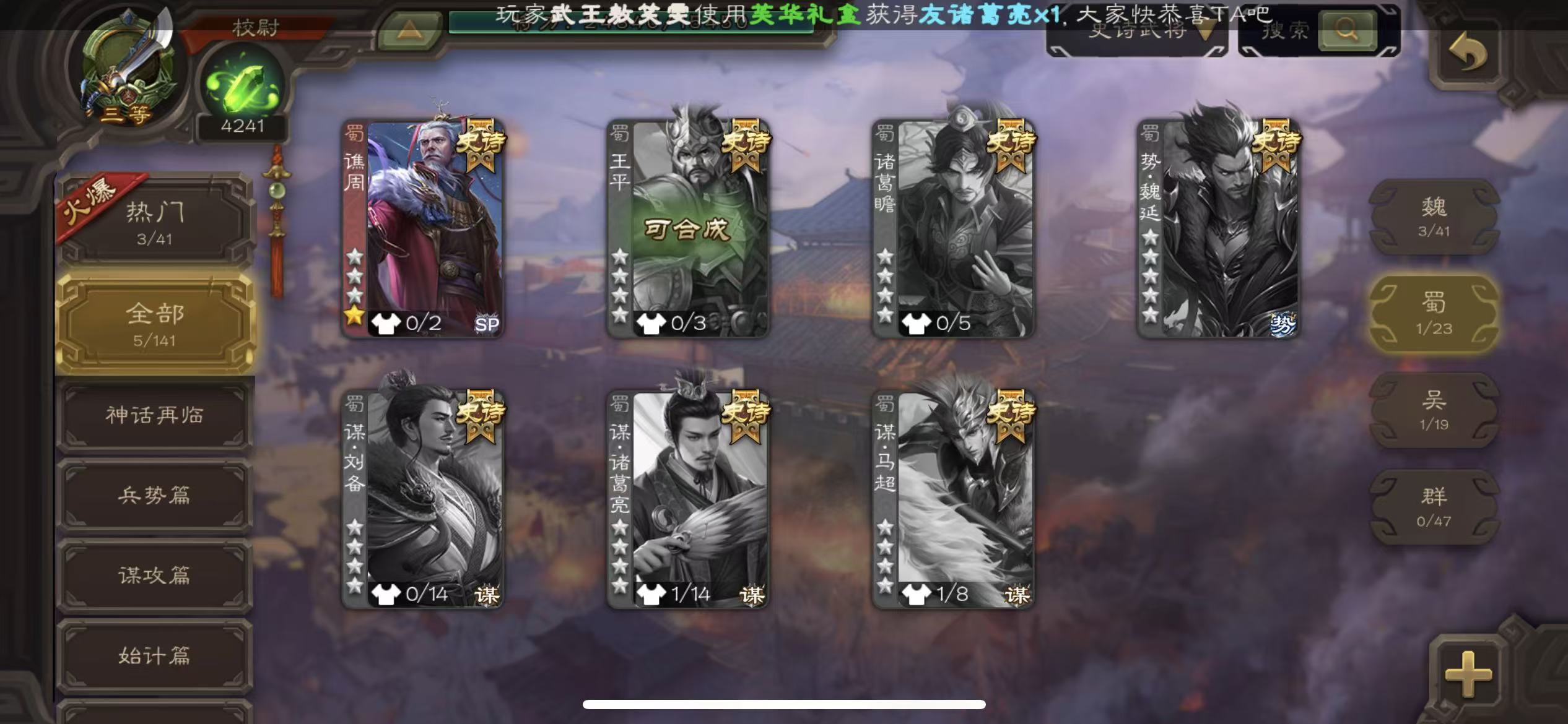 史诗武将数量: