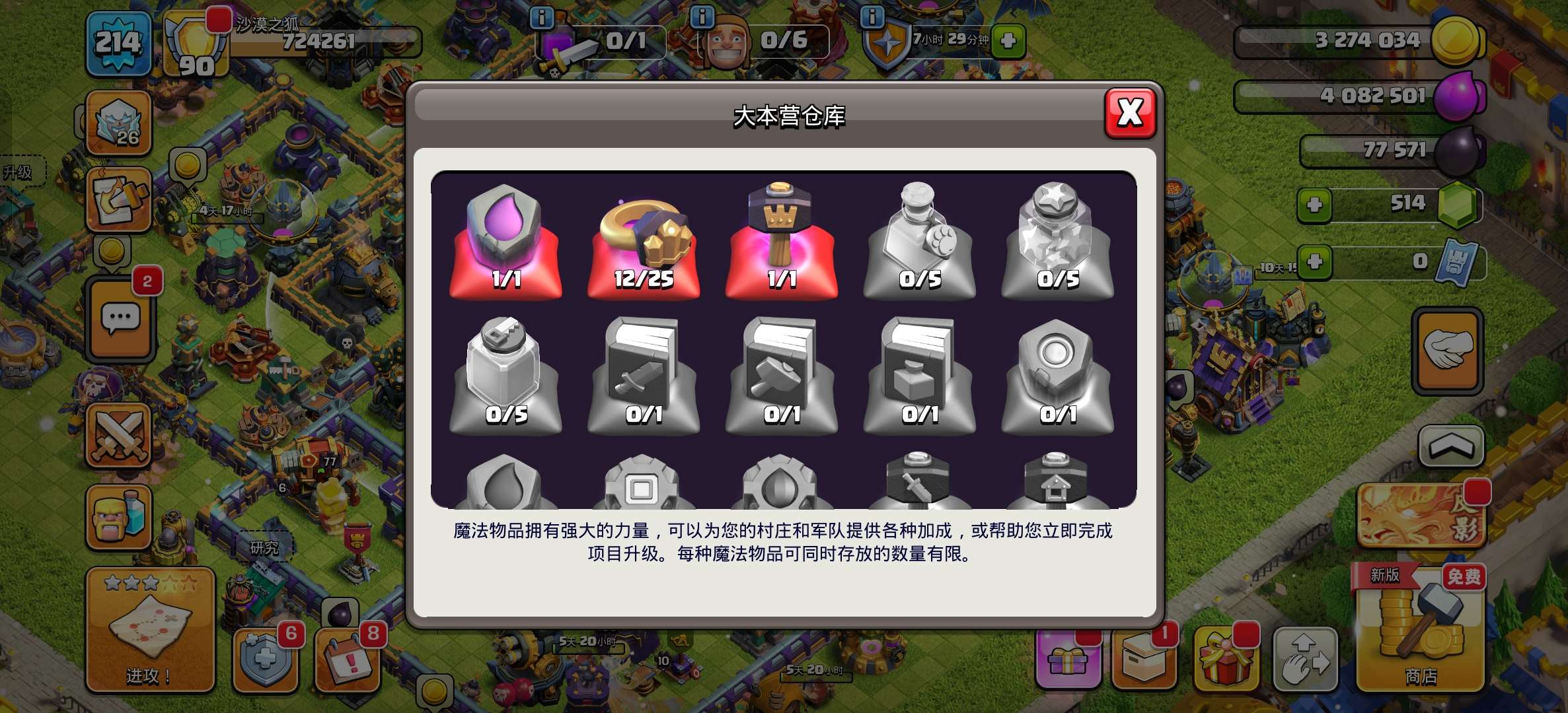 皇室57级,部落冲突90繁荣度,王者还有几个皮肤