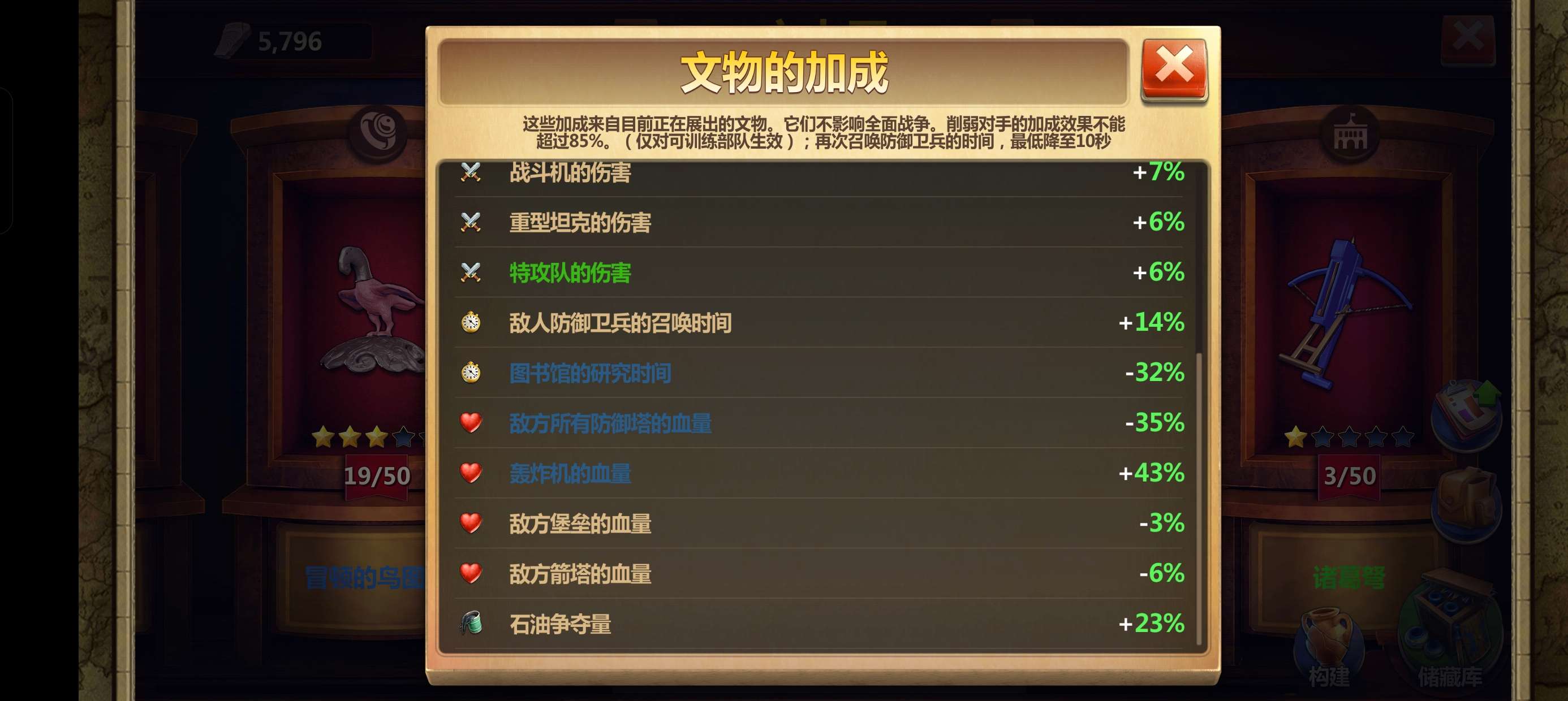 130+轰炸机伤害加成,15级工厂,新兵种已升到对应时代,英雄等级高,防御建筑高,看图