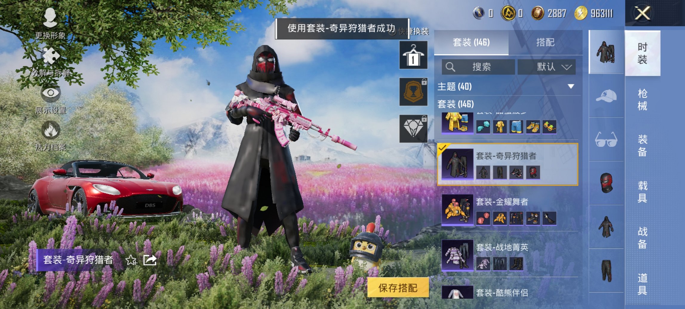 【浪客战士猫包5载具8粉装6特效枪 秒换绑不用等】 安卓Q区-64309热力值-7印记-146套装-162枪皮 【5载具】 阿斯顿马丁S红色 阿斯顿马丁X橙色 合金龙骨蓝色 特斯拉3银色 双人摩托梦幻火箭【5稀有】 浪客战士 萌熊伴侣背包(小熊背包) 百万伏待背包(猫包) 奇异狩猎者【8粉装】 数码大师 极致幻想 扶摇飞仙 蝶舞迷情 新星烈龙 古堡领主 彗云及圣 狩月元帅【6特效枪】 M416-五爪金龙(6级) Kar98K-伏魔团(4级) DP-28-扶摇飞仙(4级) M762-甜蜜誓约(6级