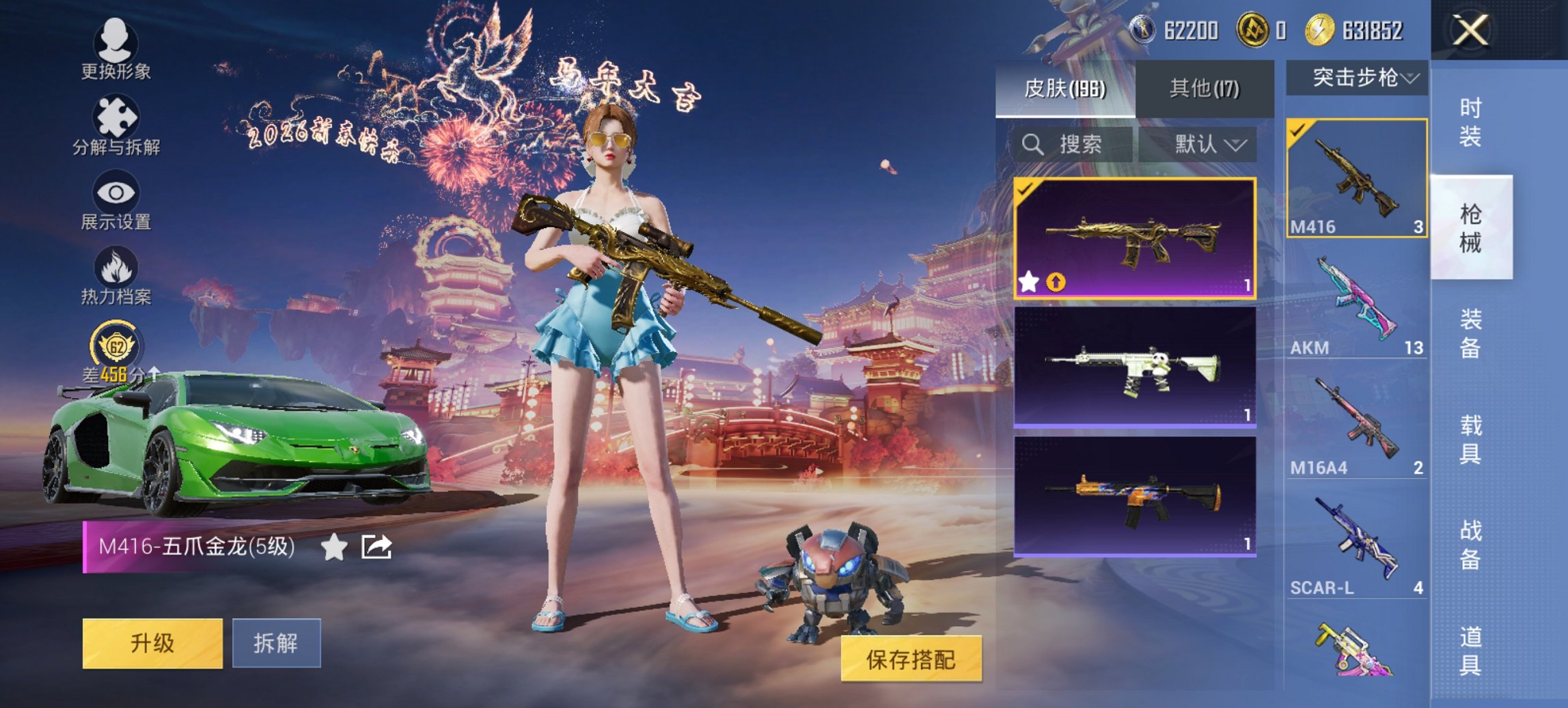 可二次实名【梦幻火箭M4五爪金龙10特效枪8粉装1载具 秒换绑不用等】 安卓Q区-65304热力值-8印记-141套装-196枪皮 【1载具】 兰博SVJ绿色【1稀有】 奇异狩猎者【8粉装】 梦幻火箭 冰霜白皇 寒光使者 复仇流浪者 炙焰红王 炙焰牛王 仲夏莫吉托 幻影战神【10特效枪】 M416-五爪金龙(5级) AKM-梦之光华(5级) Mk14-福马献瑞(5级) ACE32-萌骑漫游(2级) SCAR-L-青春物语(5级) AKM-星际浪客(3级) UZI-筑梦精灵(4级) S12K-海渊