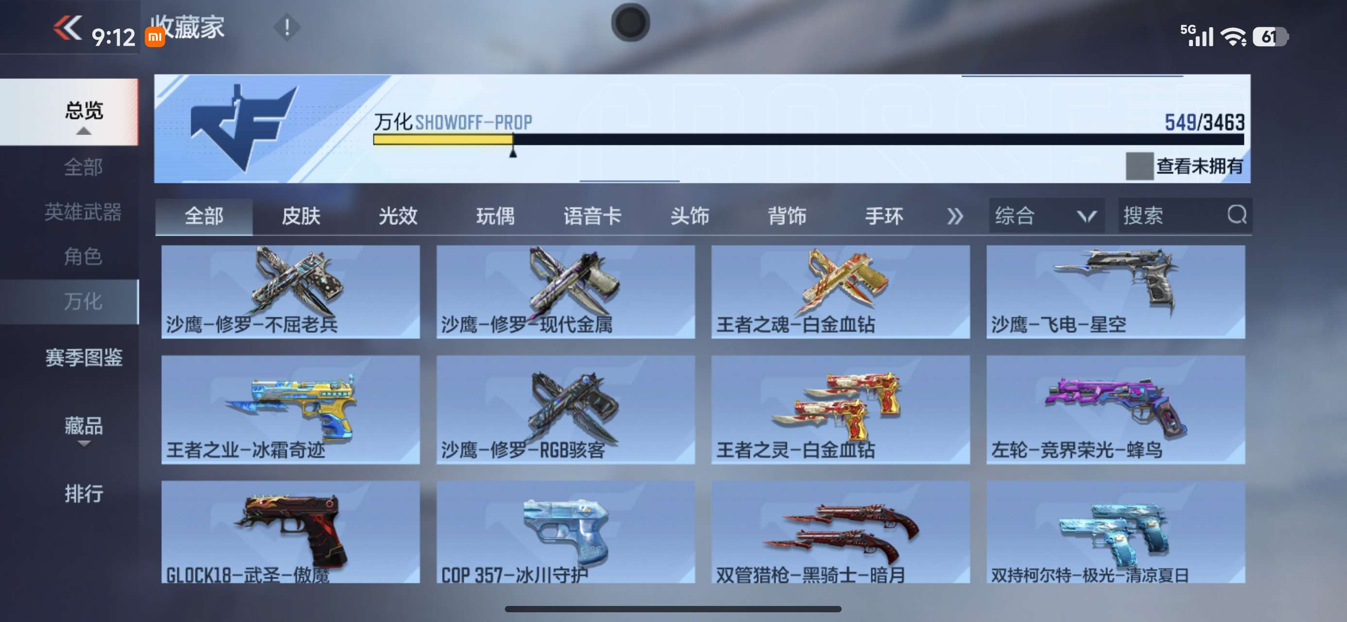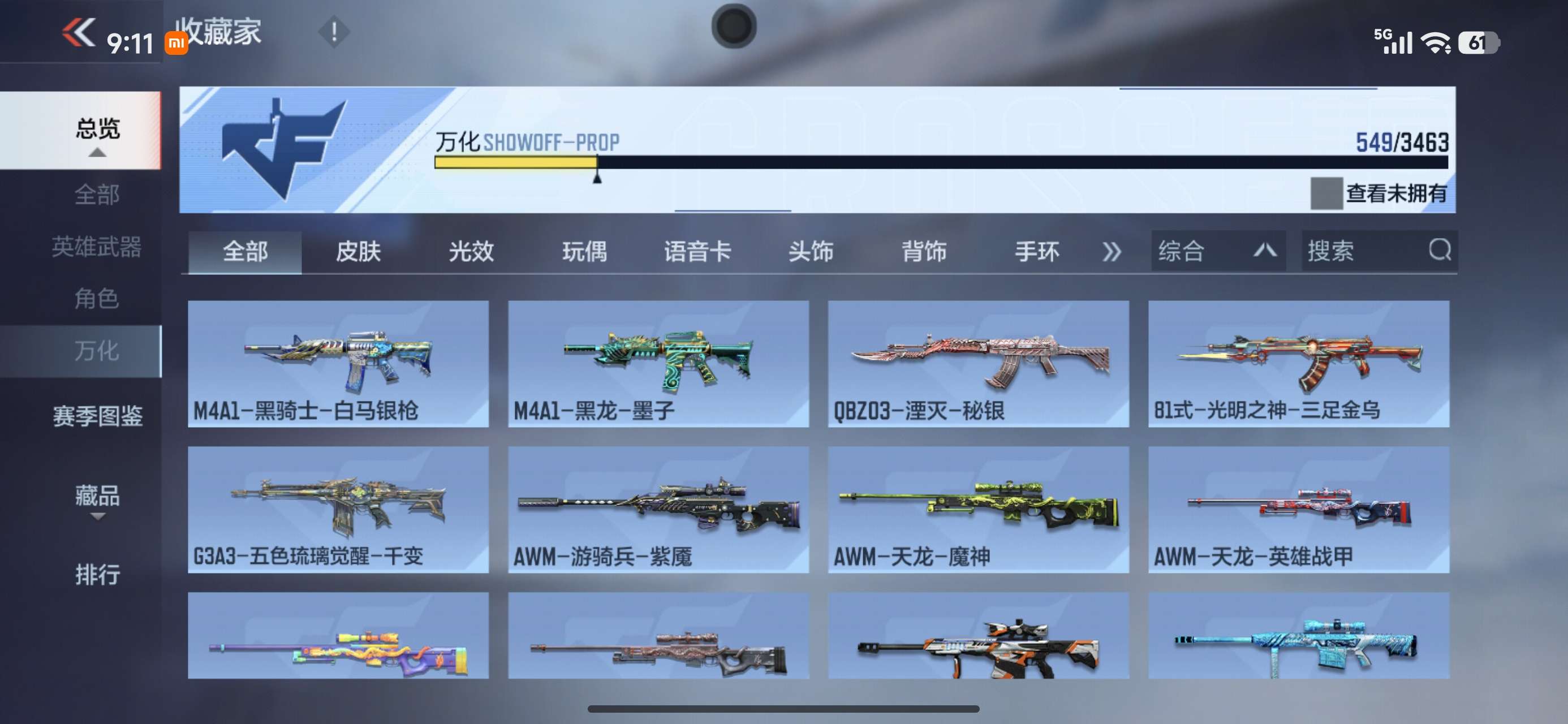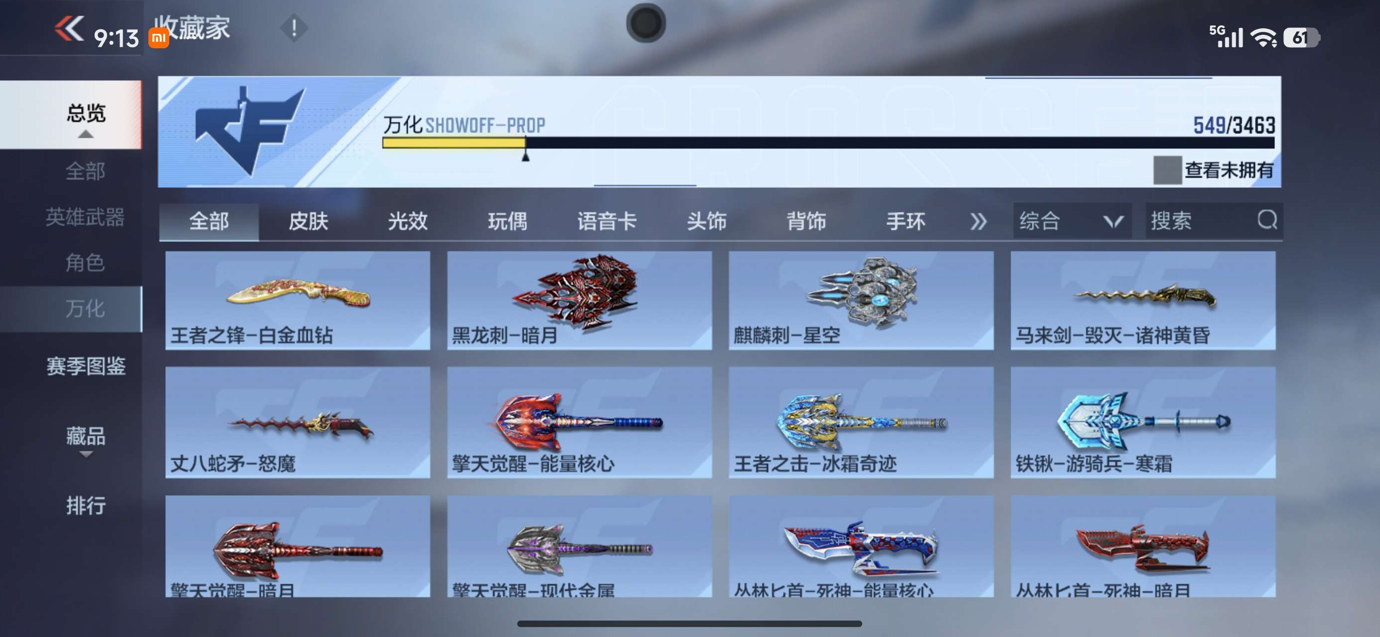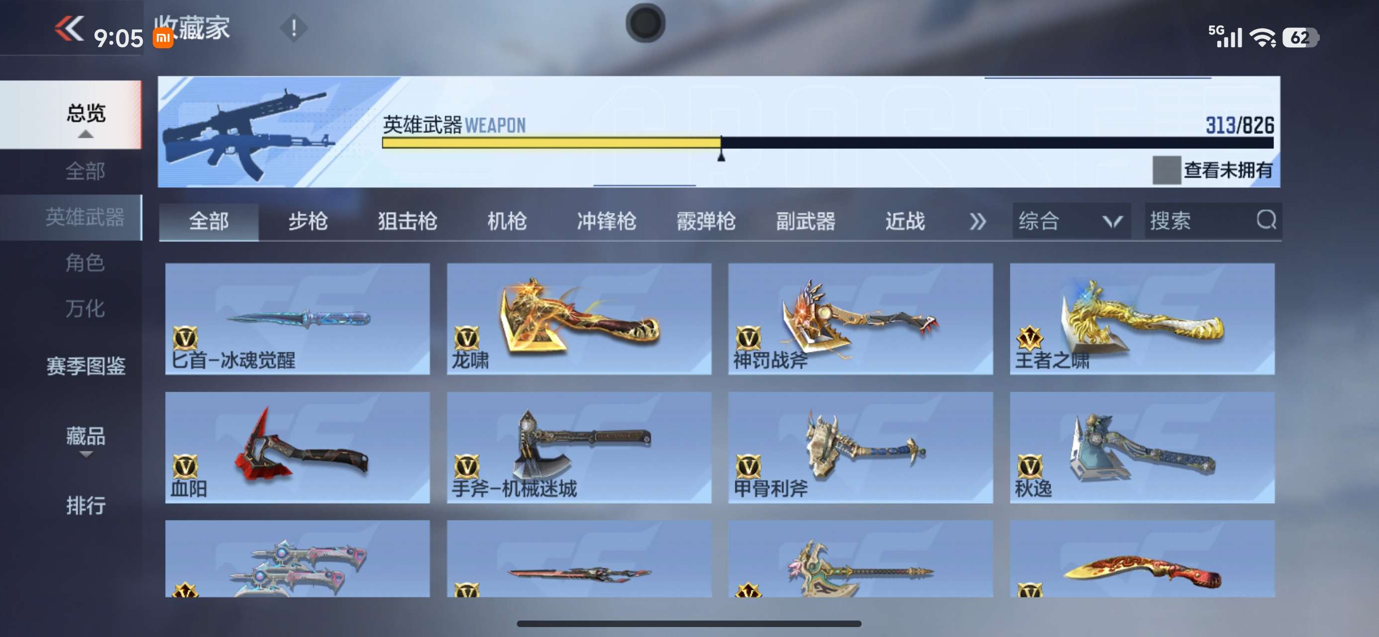 有好多武器没有展示出来,可以上号看,有很多重复的氪金武器。好多王者和三国武器没有展示出来