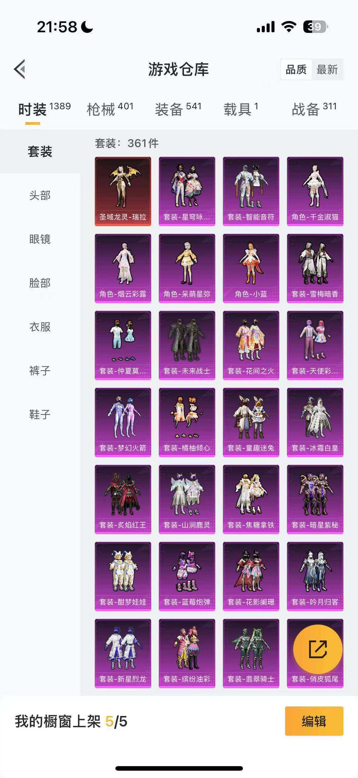 安卓 手Q-1神装-27粉装-9特效枪-1载具-8粉色飞行器-148377热力值-16王牌印记-361套装-401枪皮