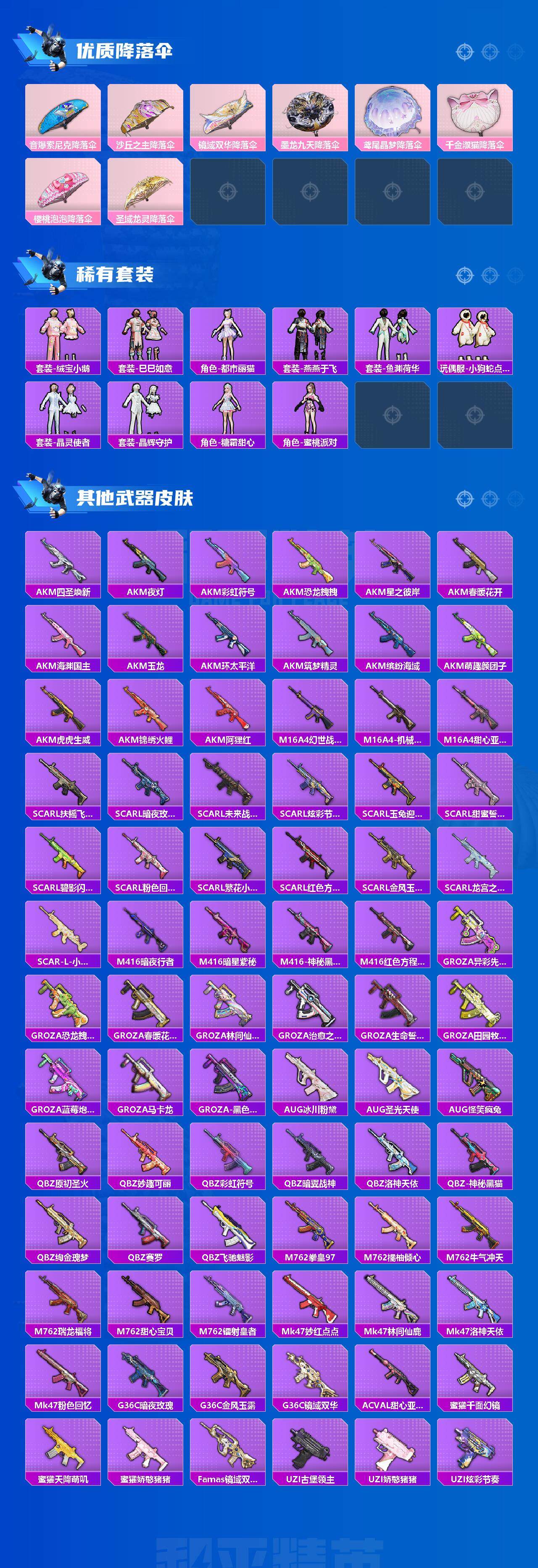 【热门品类】:粉装-梦幻火箭,粉装-童趣迷兔,粉装-缤纷油彩,套装-深海小丑鱼,套装-小丑鱼,套装-奇异狩猎者,角色-军刀雅典娜,套装-胖达圆圆,套装-潮萌