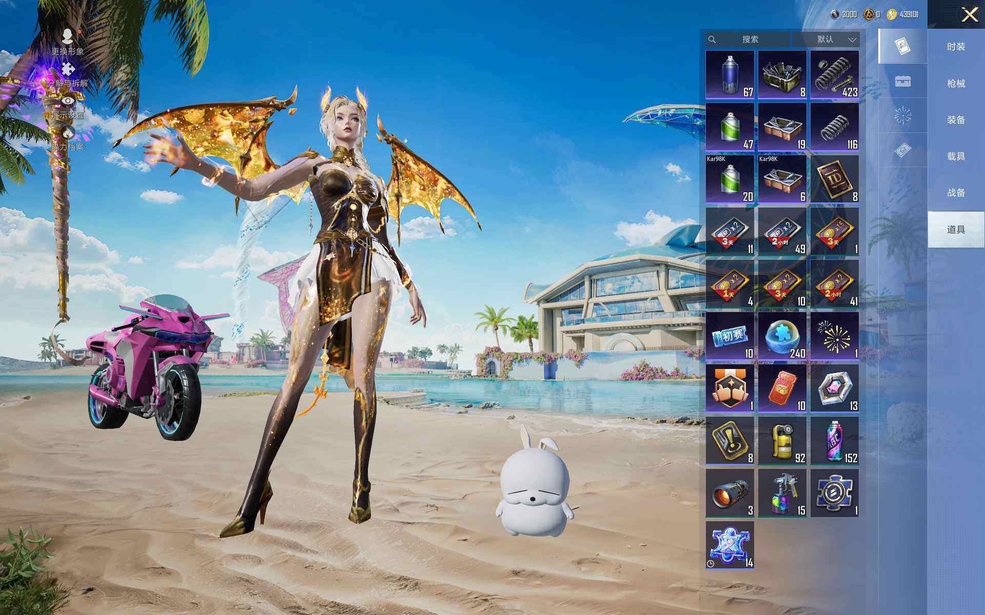 苹果 手Q-2神装-55粉装-20特效枪-6载具-17粉色飞行器-147828