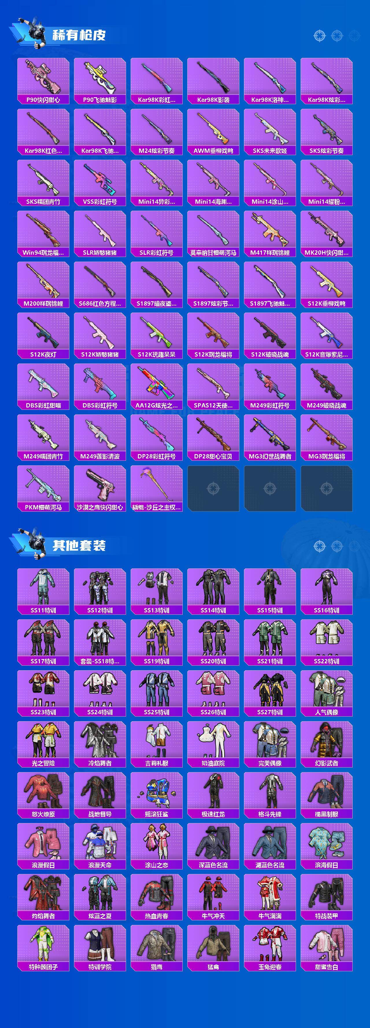【粉色枪皮等级】:SCAR-L-锦绣绵绵(五级),Kar98K-巳巳如意(五级),DP-28-豹影疾电(一级)