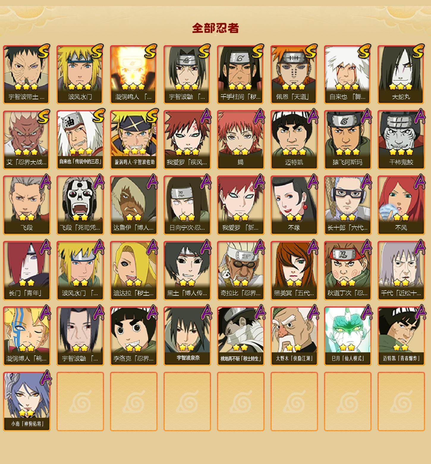 【HYX3604】V6/S忍11/A忍30/忍界大战-日向宁次/2星大野木「侠隐江湖」/五代目雷影-达鲁伊/死司凭血-飞段/青年-长门/2星小南「神驹佑将」/忍界大战-宇智波带土/新春限定-我爱罗/蝎/天道-佩恩/3星漩涡鸣人·宇智波佐助/五代目水影-照美冥/波风水门/九喇嘛连结-漩涡鸣人/忍界大战-秋道丁次/桃式显现-漩涡博人/忍界大战-奇拉比/3星干柿鬼鲛/秽土转生-千手柱间/3星我爱罗「疾风传」/忍界大战-李洛克/六代目水影-长十郎/青年-波风水门/舞之豪杰-自来也/2星桃地再不斩「秽土转