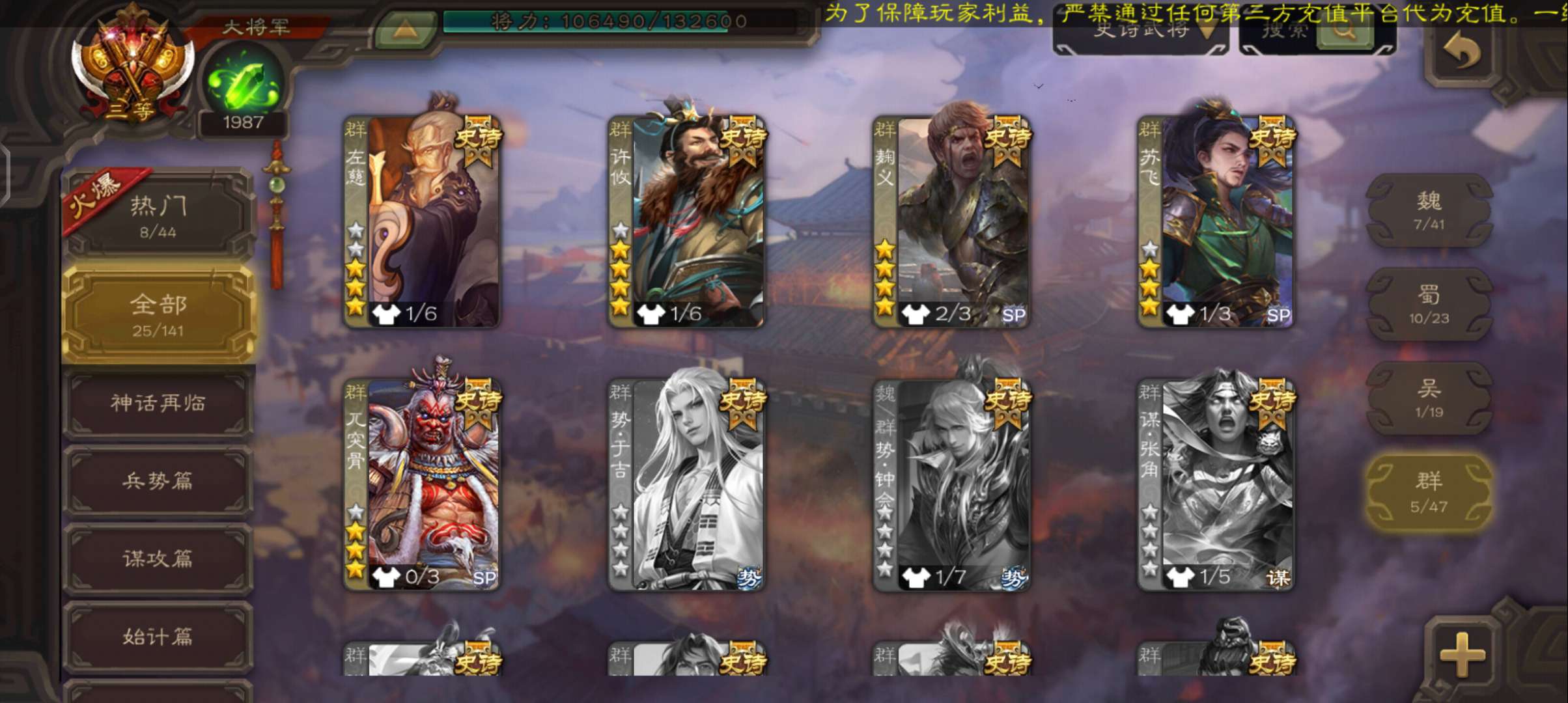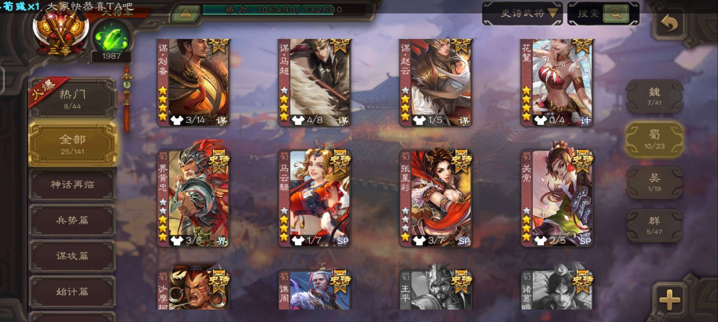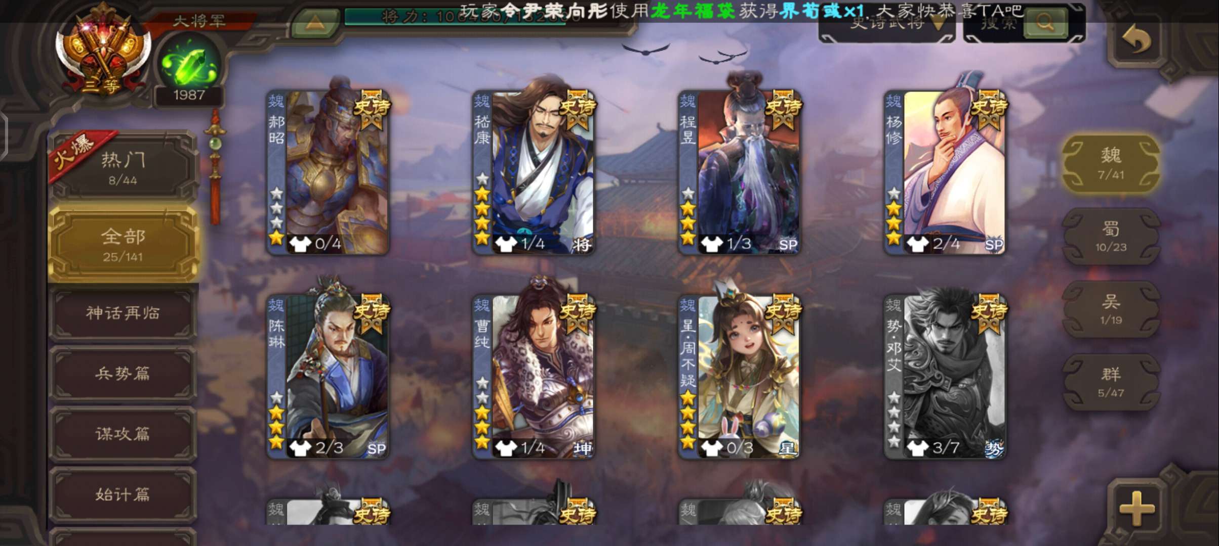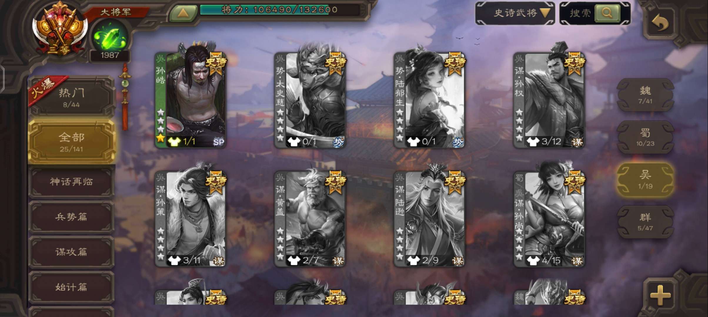 史诗武将数量: