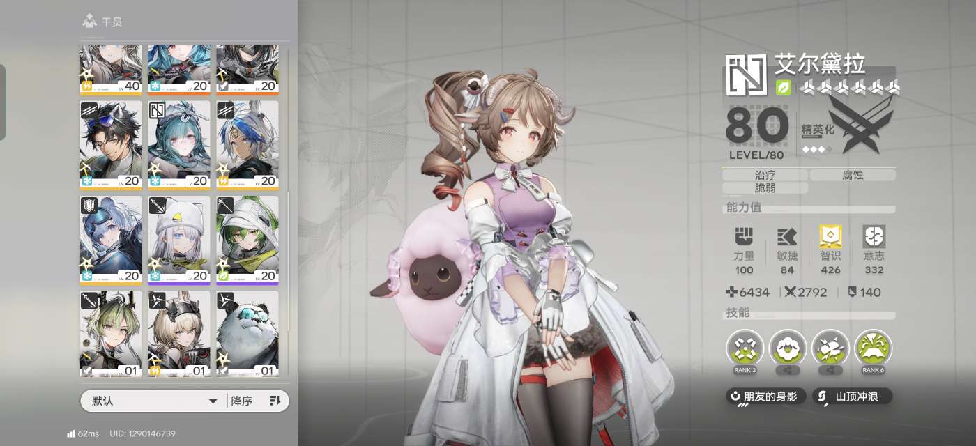 官服活绑0+1莱万汀满练,1潜洁哥3潜小爷子,角色只缺伊冯,谷地探索毕业