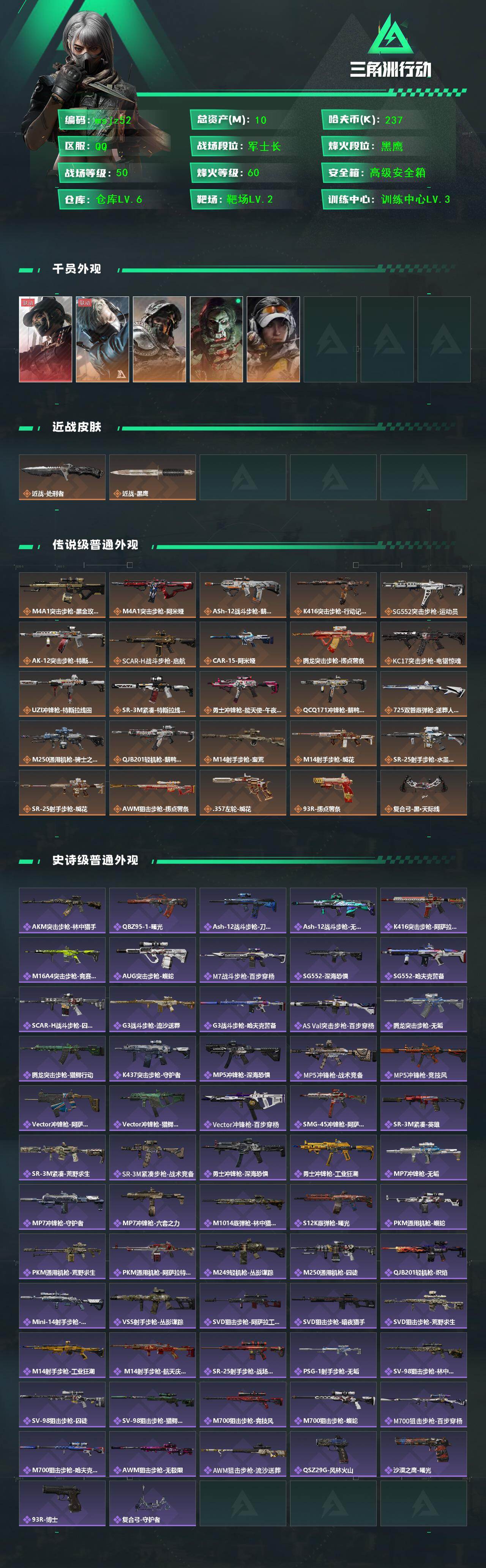 【msjz52】10m总资产-237k哈伏币-60烽火等级-黑鹰-50战场等级