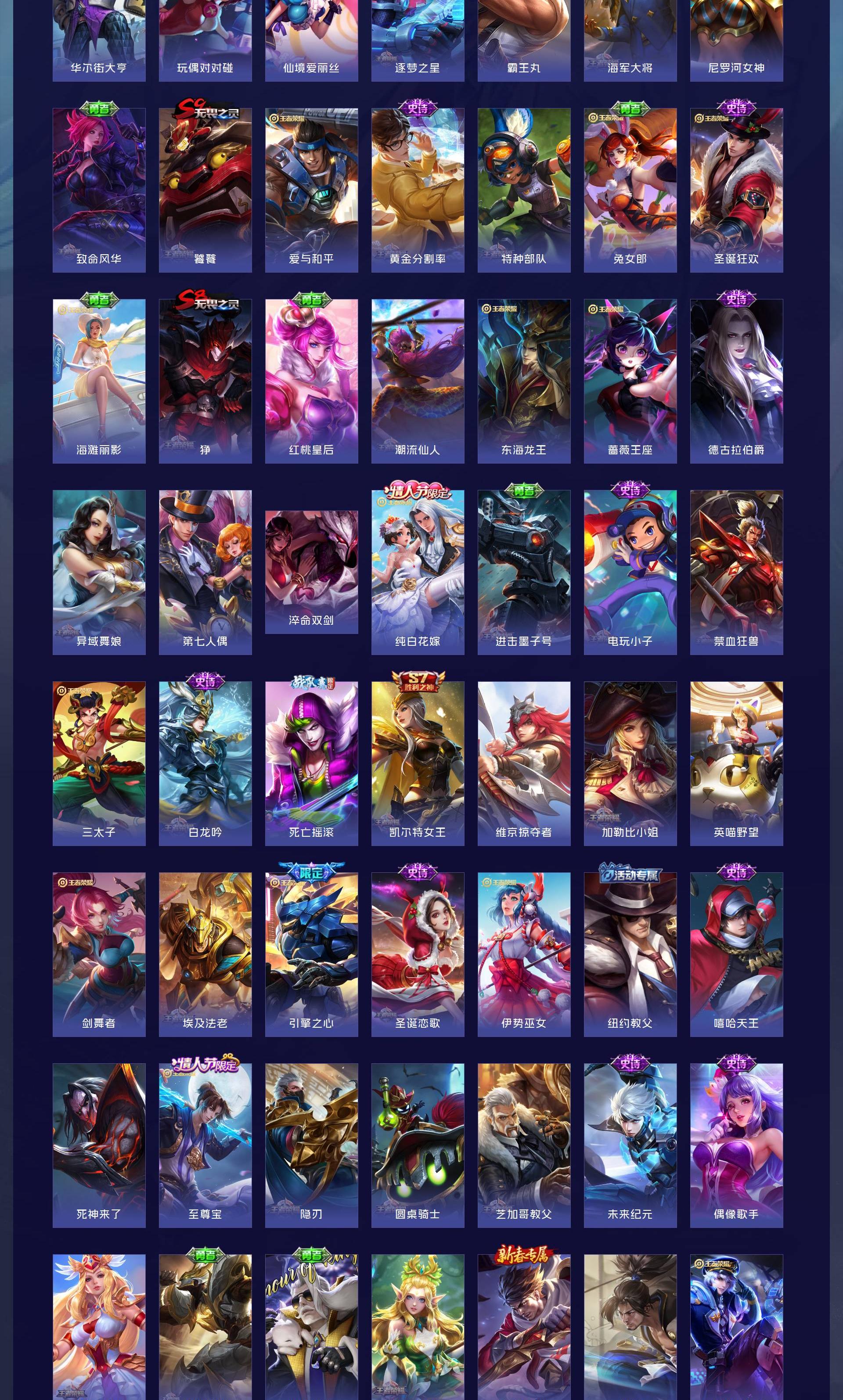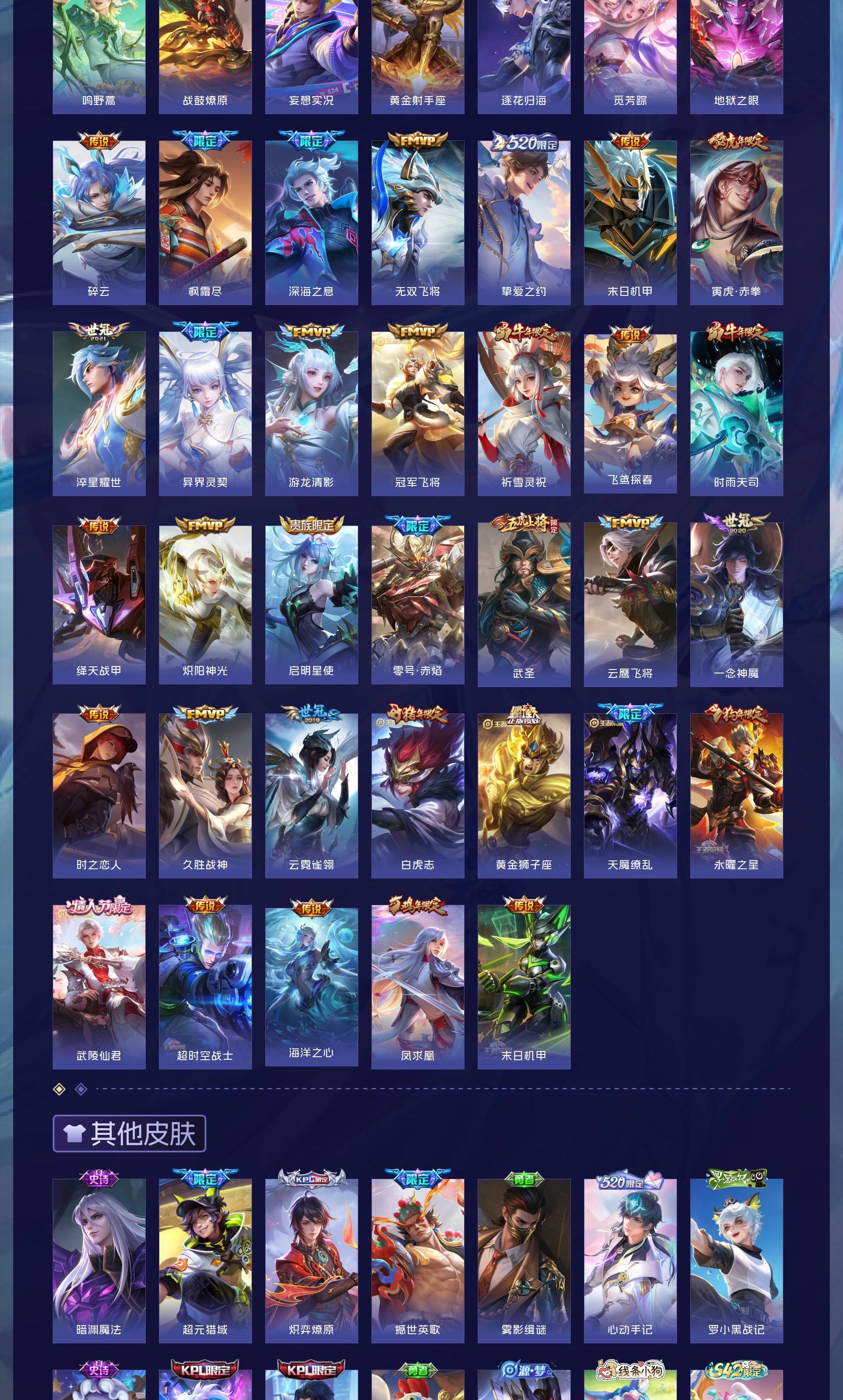 V10 皮肤518 英雄129 至圣王者 荣耀典藏6 无双皮肤4 珍品传说2 传说47 其他皮肤460