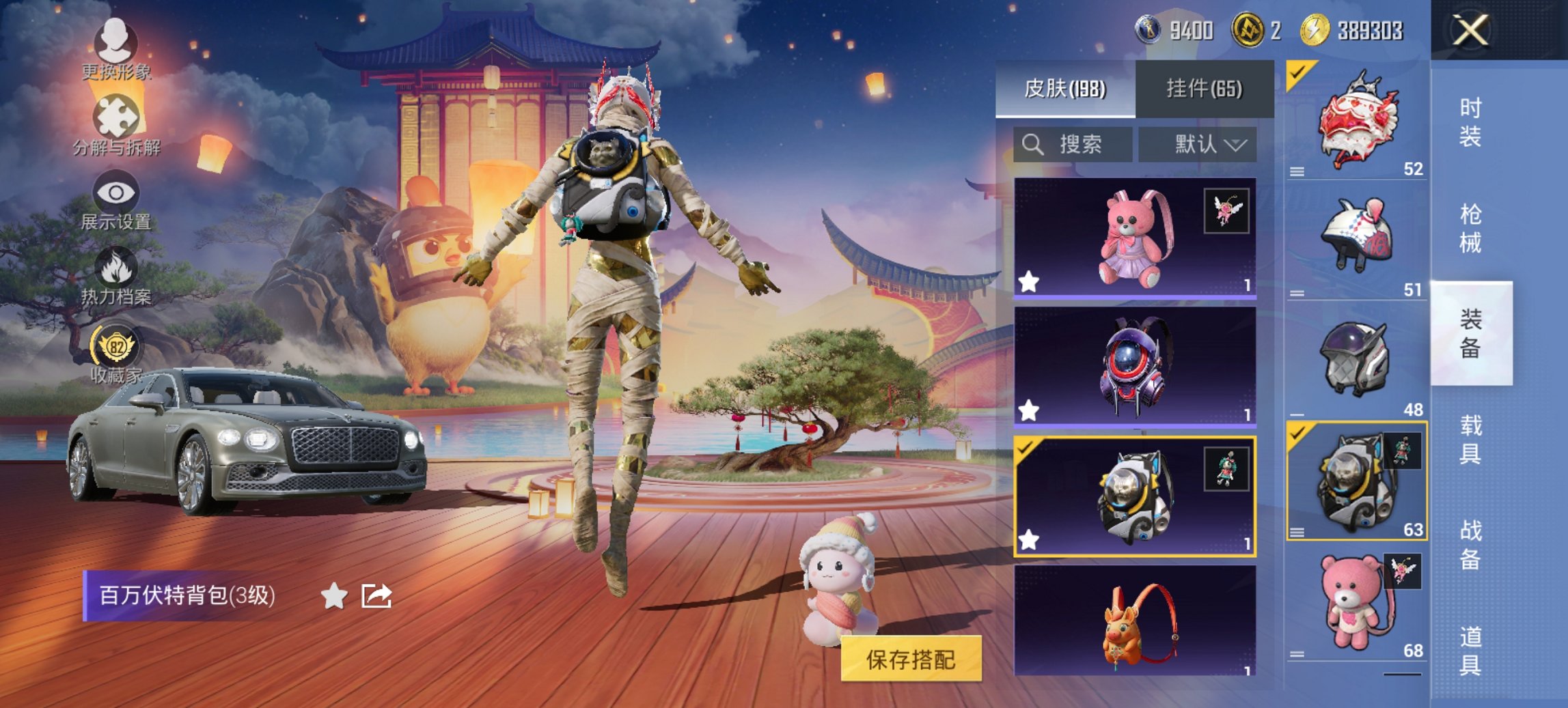 可二次 2红装4级图卡盟螳螂浪客战士小熊背包猫包20粉装10特效枪1载具