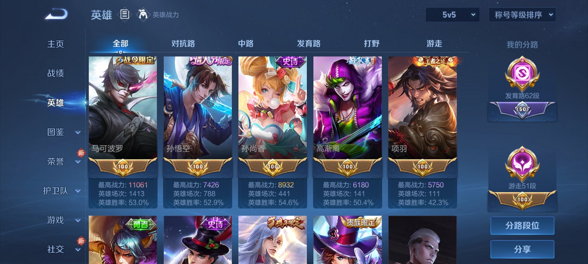 国服典韦34金标7万战英雄发育路62段游走51段中路48段对抗路44段打野43段 217皮肤1水晶3传说2星元