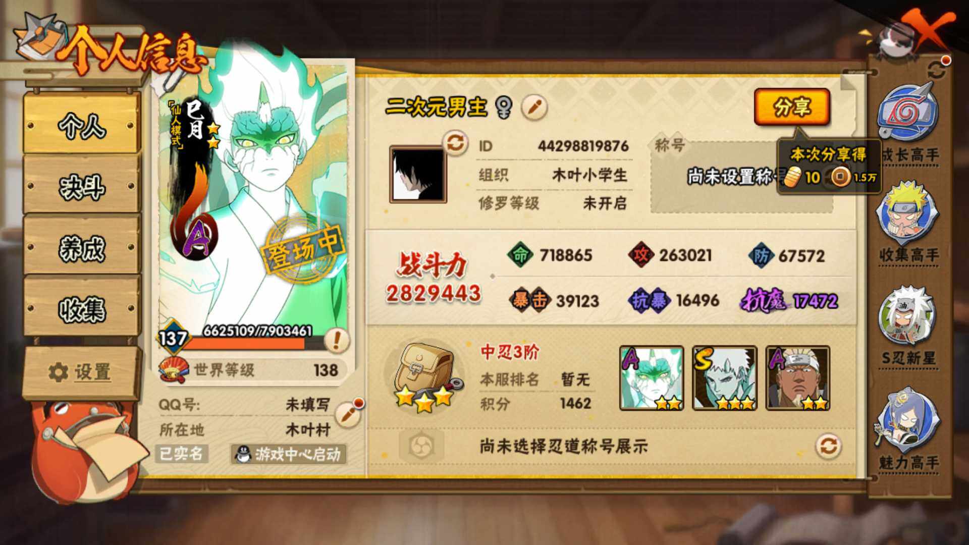 (可免费转苹果)v2,282w战力,8S级忍者数-16A级忍者数。ME2156