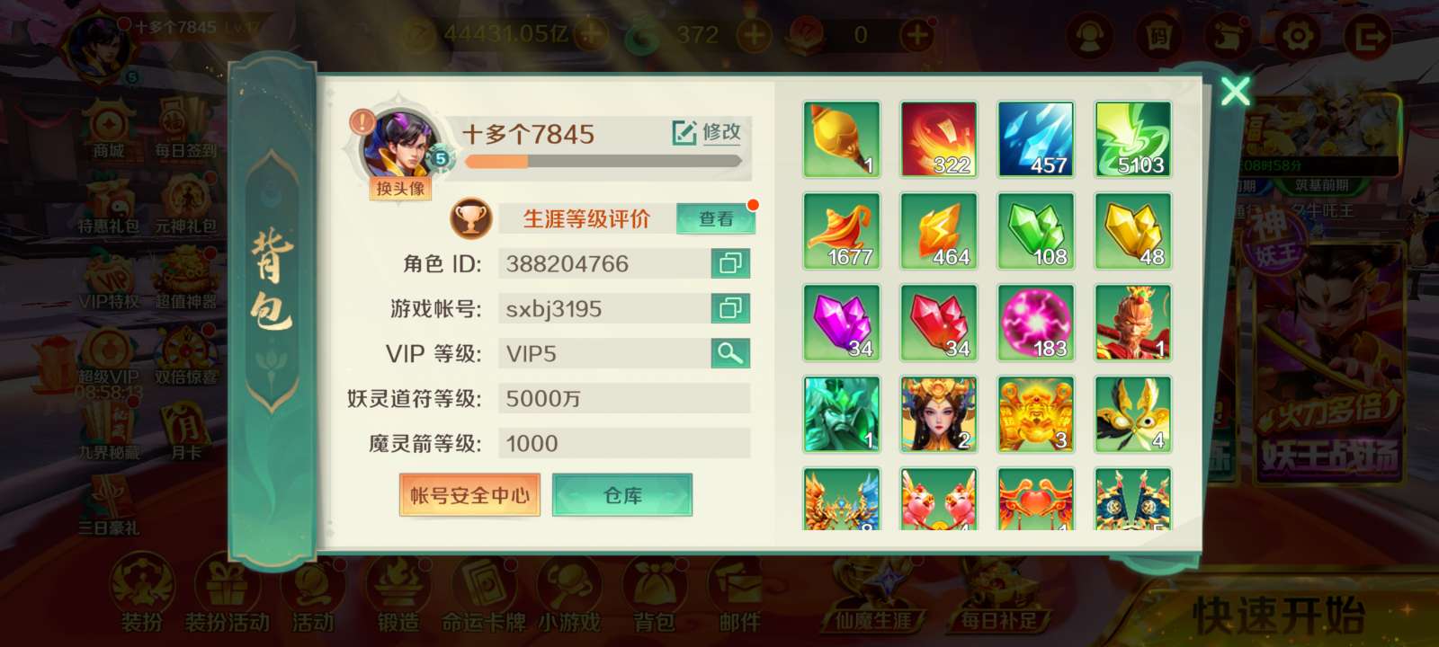 v5高炮,带44400亿金币,5000万炮,道具都有,比例不高