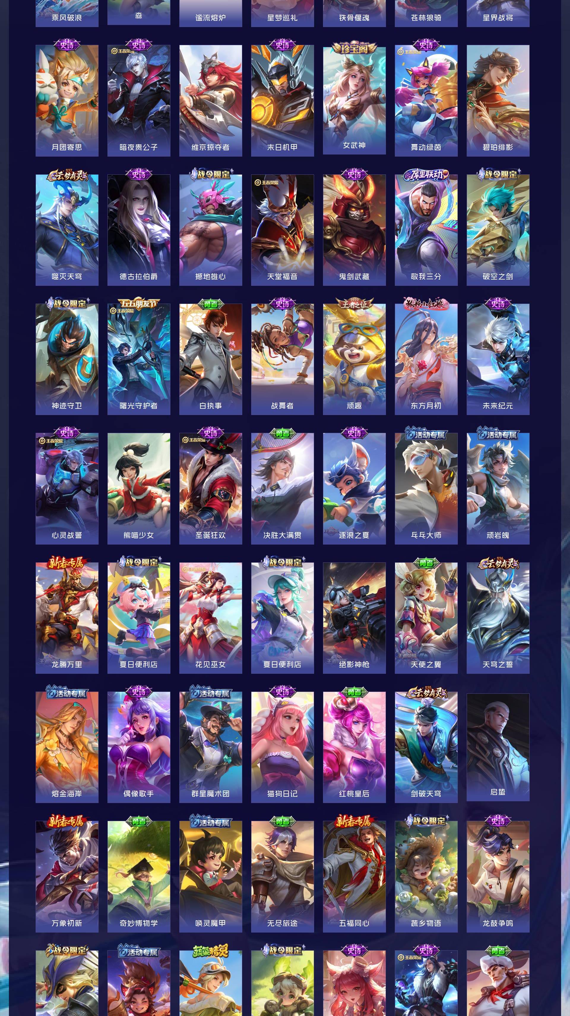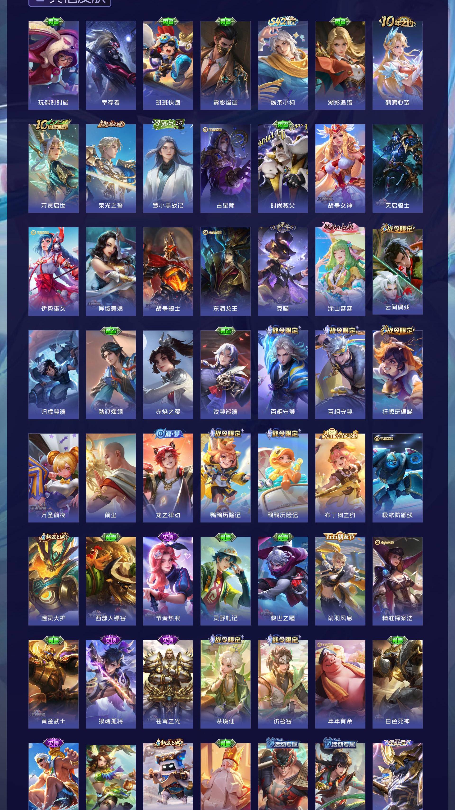 V8 皮肤273 英雄127 最强王者 荣耀典藏1 无双皮肤1 传说15 其他皮肤262