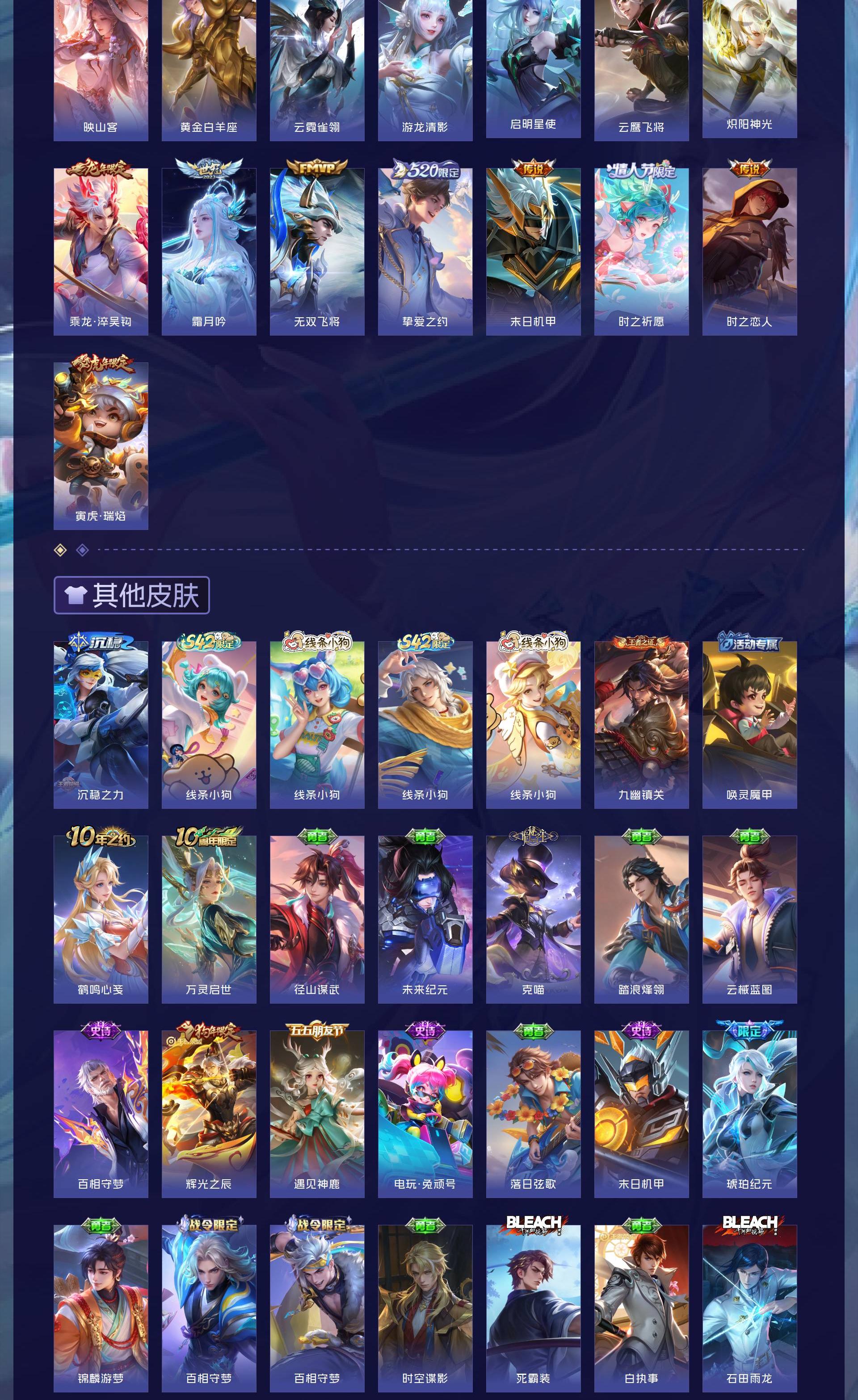V8 皮肤340 英雄129 非凡王者 荣耀典藏2 无双皮肤2 珍品传说2 传说22 其他皮肤319