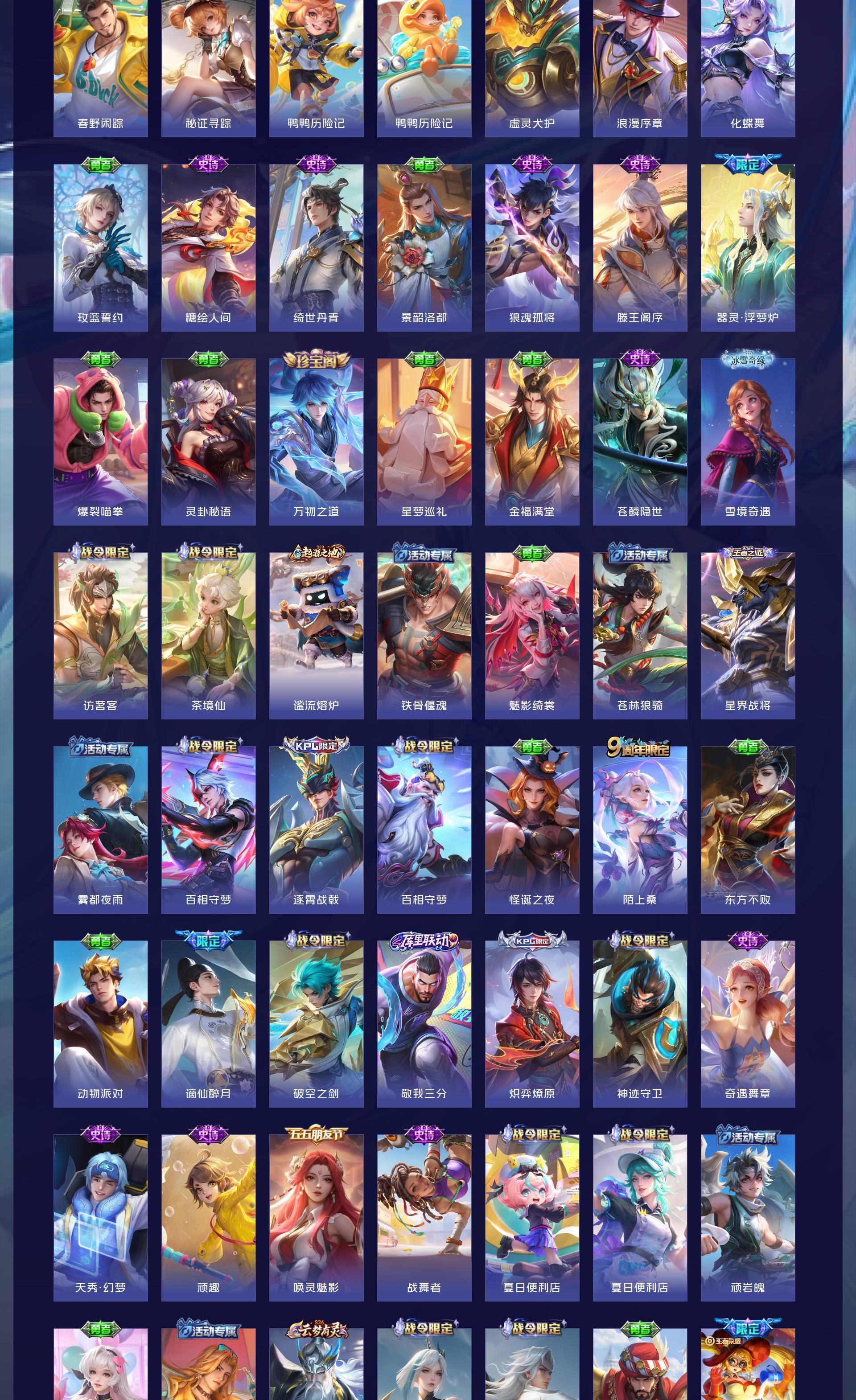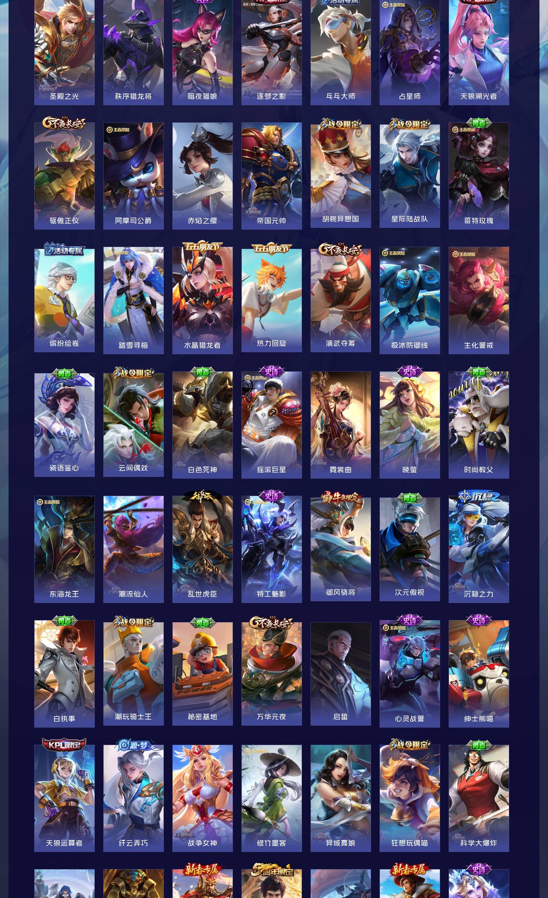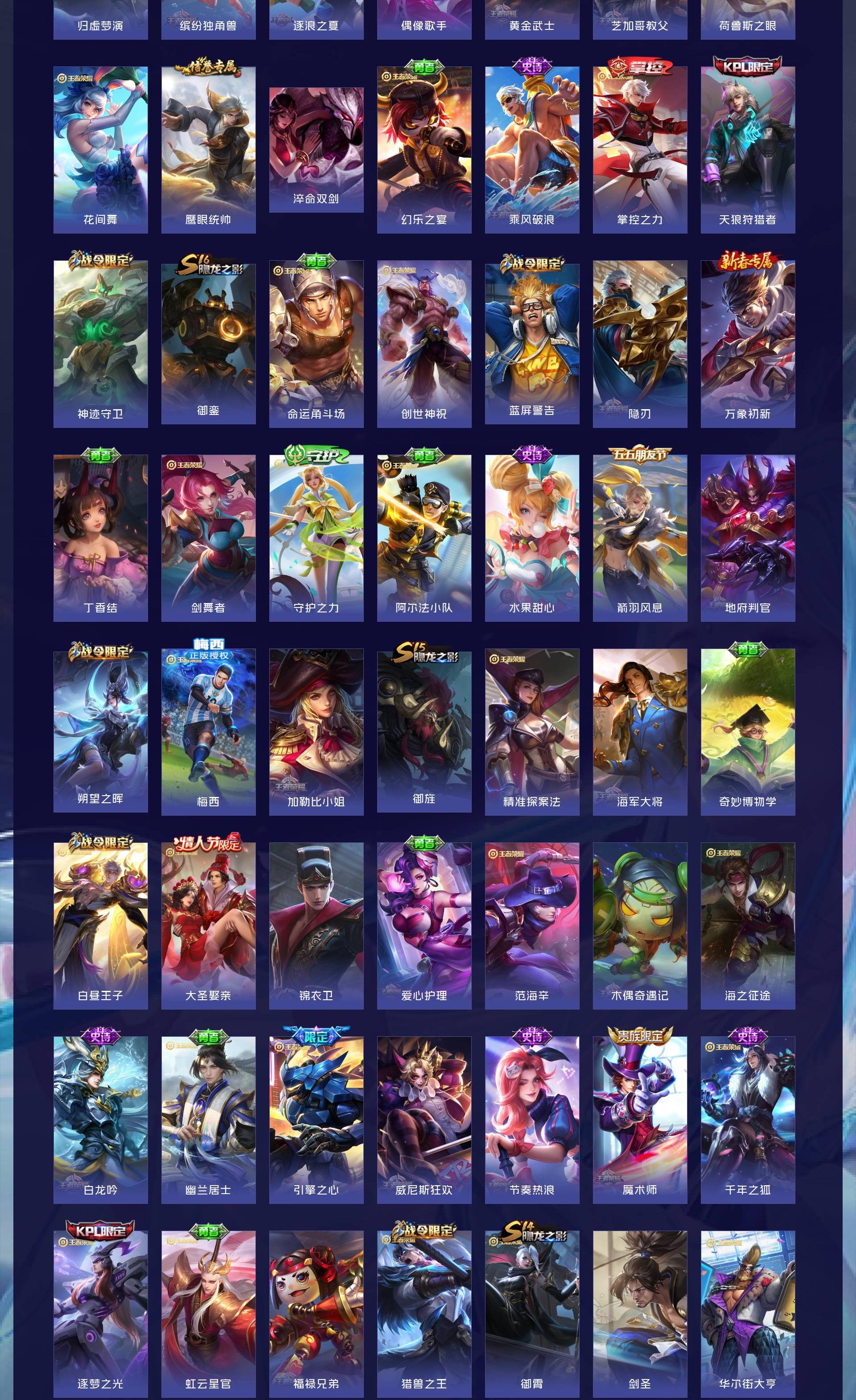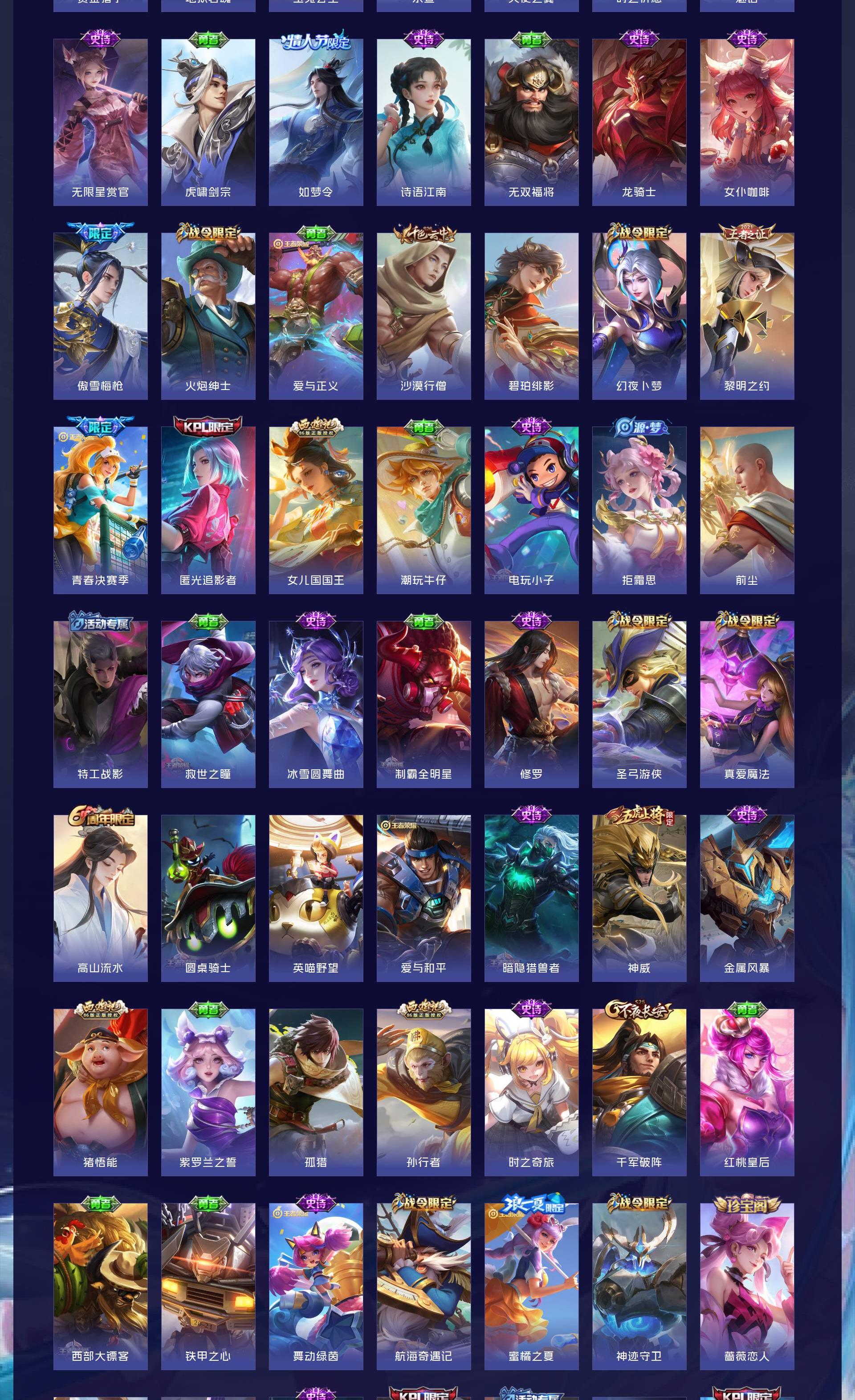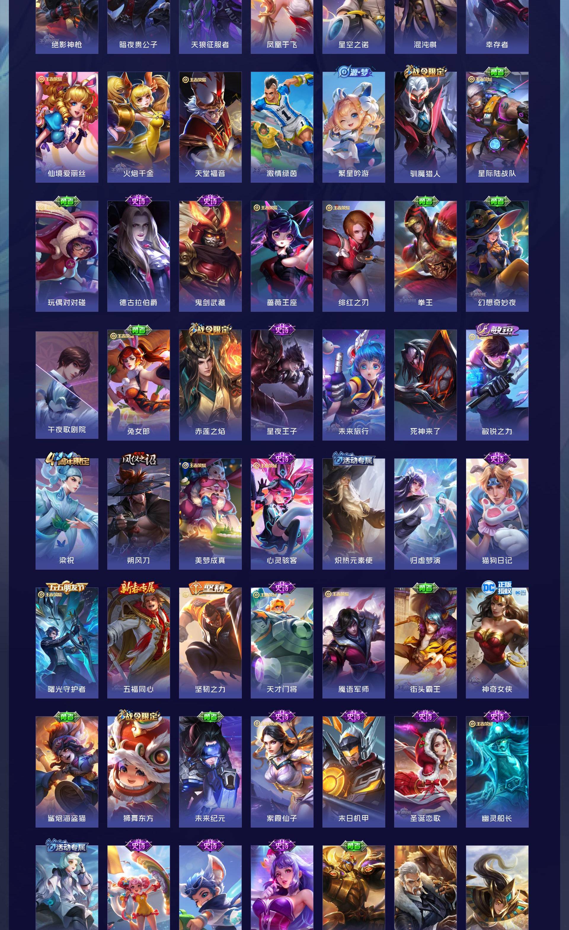 V10 皮肤559 荣耀王者 荣耀典藏6 无双皮肤4 珍品传说3 传说53 其他皮肤492