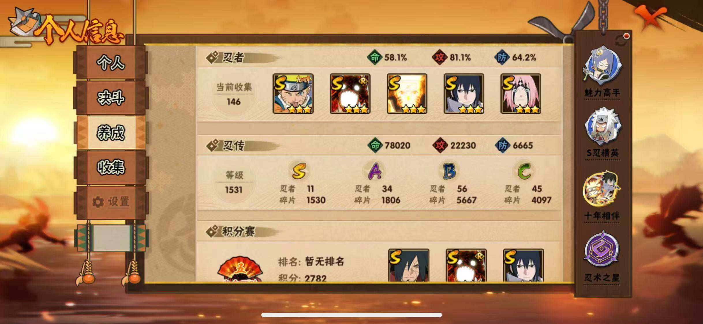 V9/战力635W/S忍11/A忍34/忍界大战-日向宁次/2星大野木「侠隐江湖」/